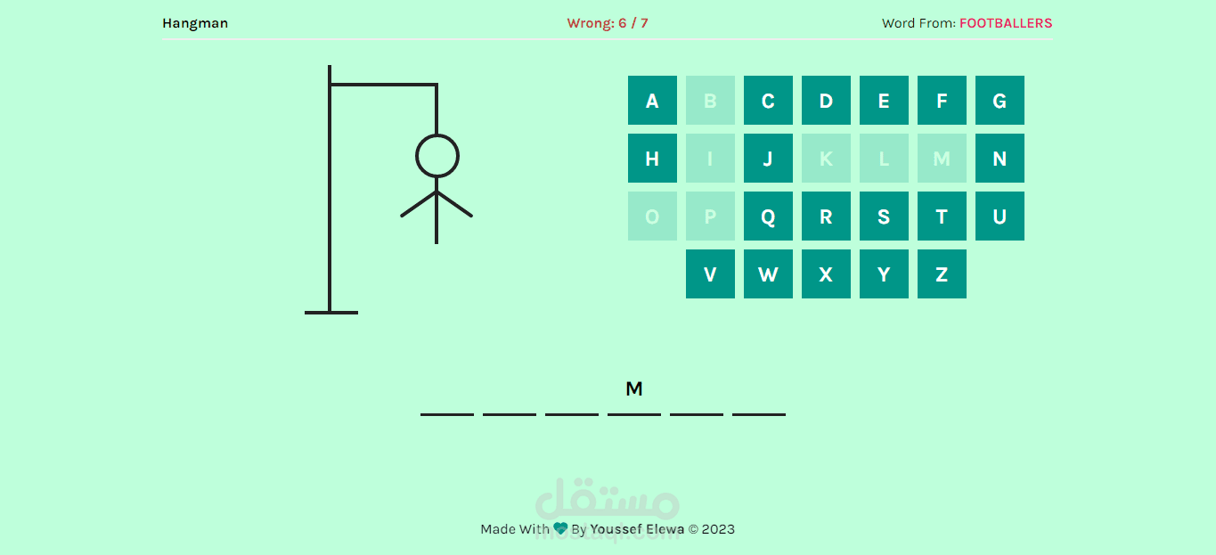 يتم اعطائك القسم التي تنتمي اليه الكلمه وتقوم بتخمين الكلمة مع عدد محاولات 7