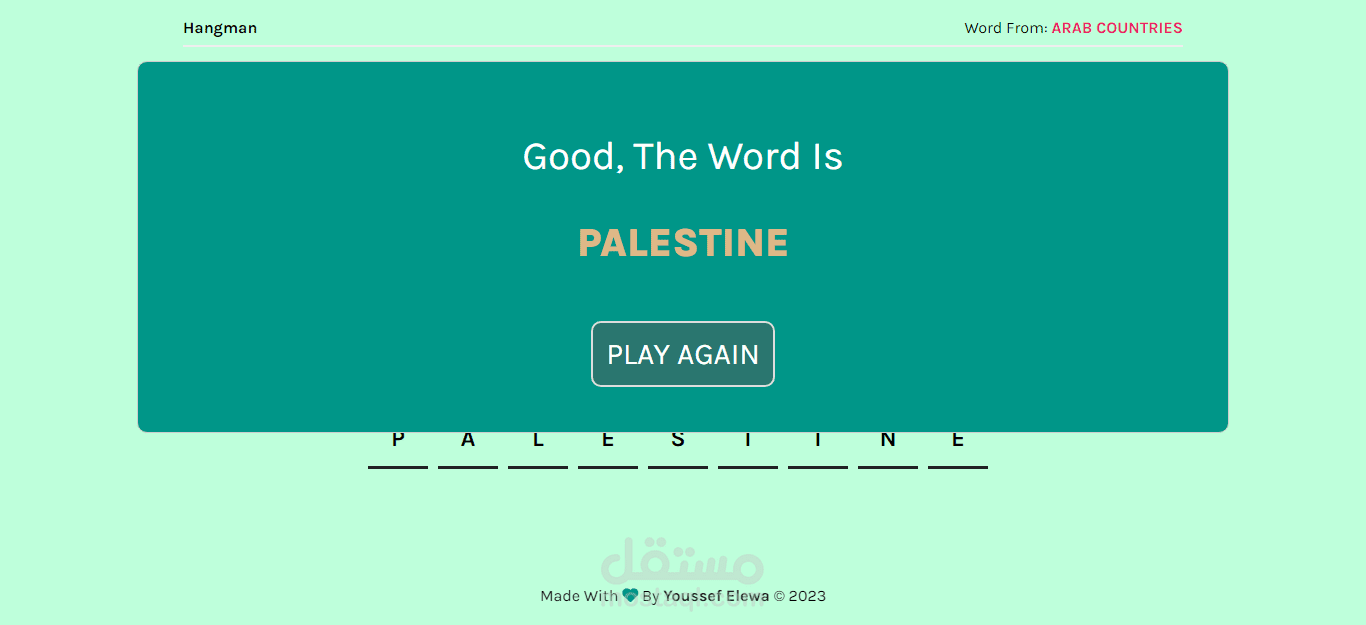 - اذا كانت الكلمة صحيحة تظهر لك رسالة تهنئه