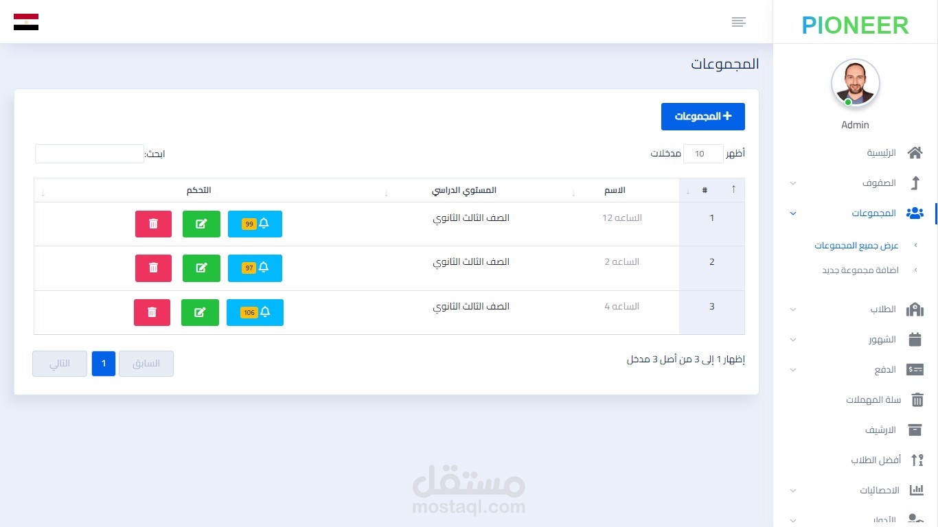 - can create new (Level-Group- assistant with different roles - Student )