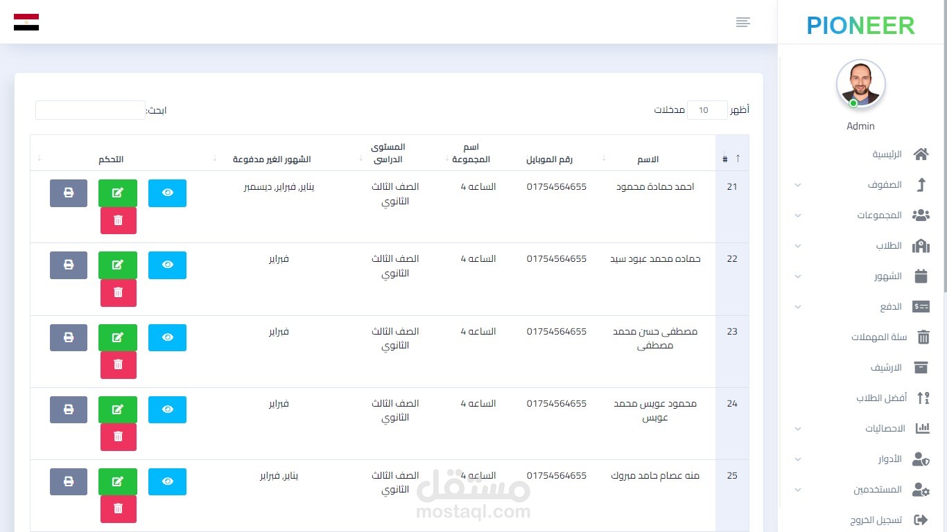 - can print his profile and grades