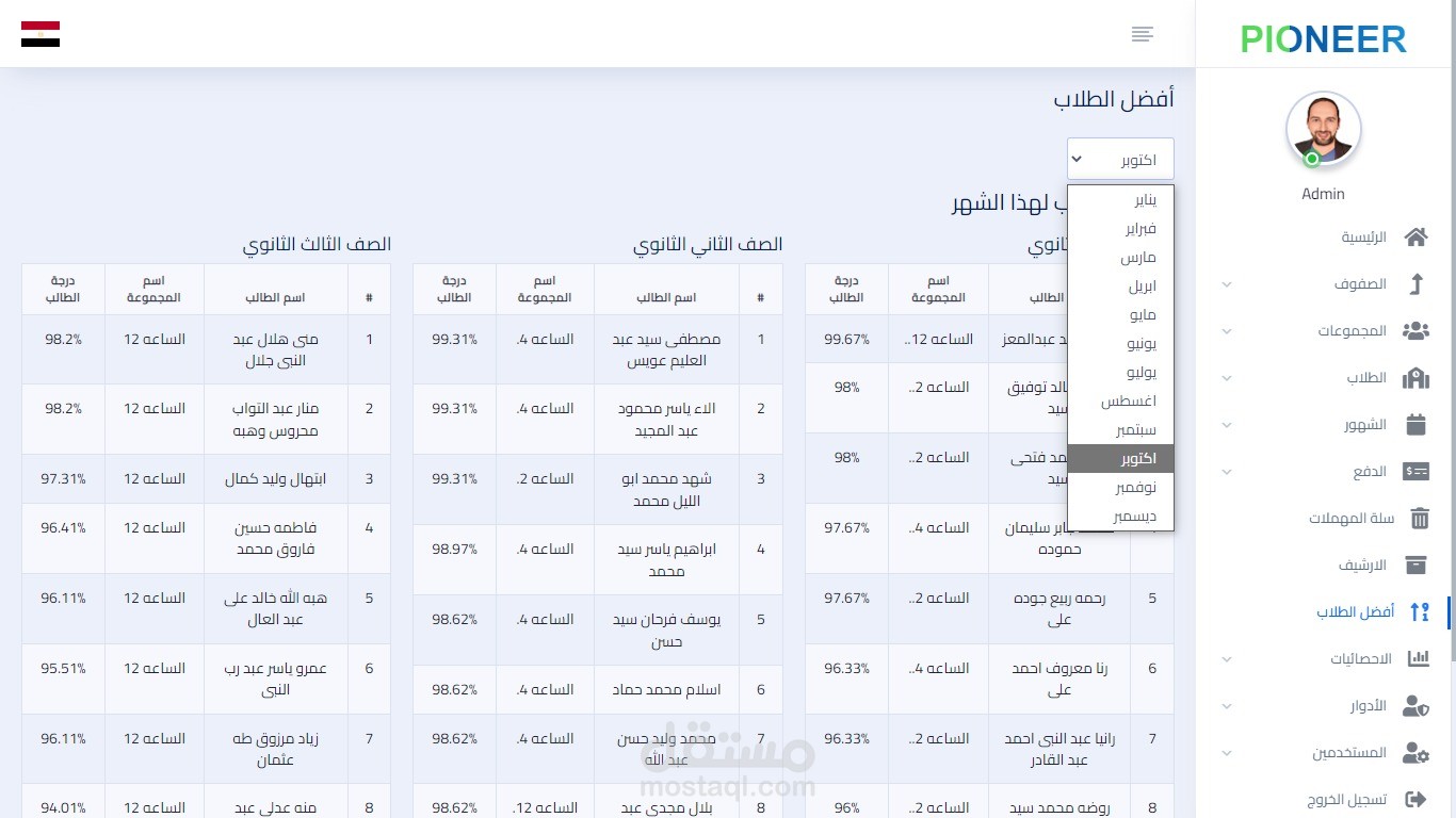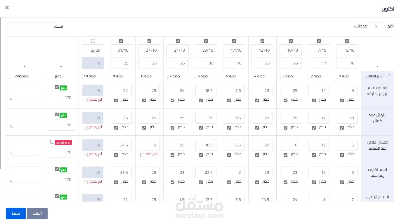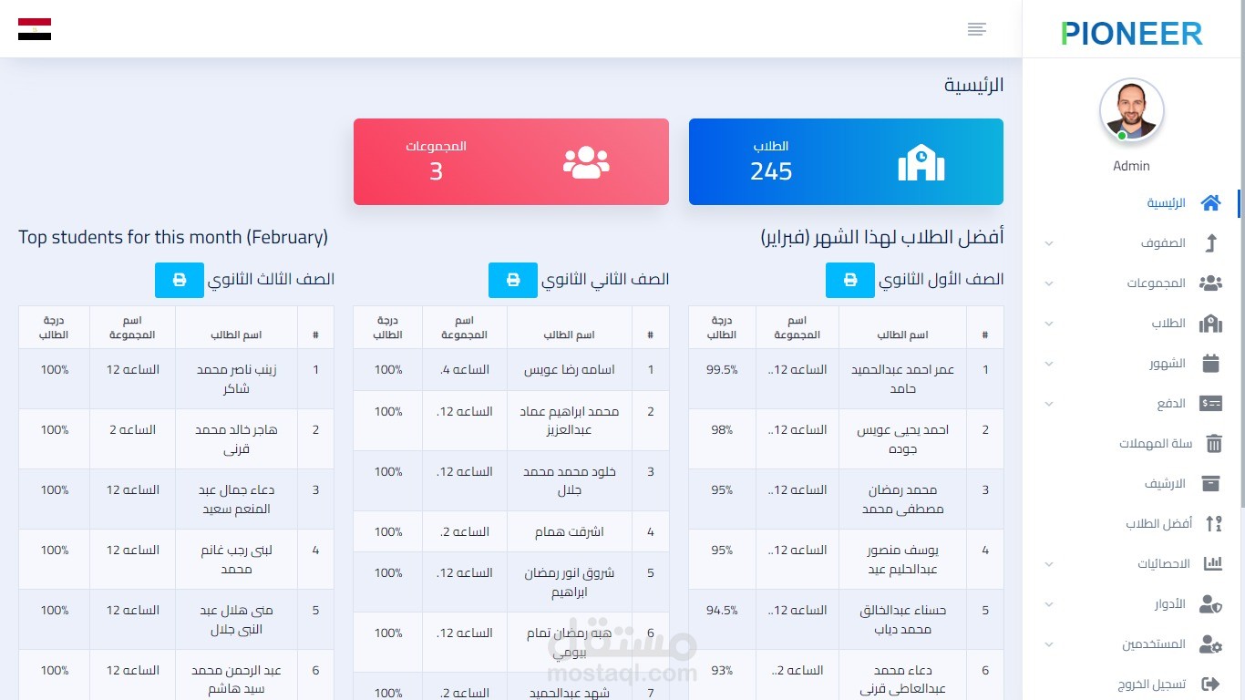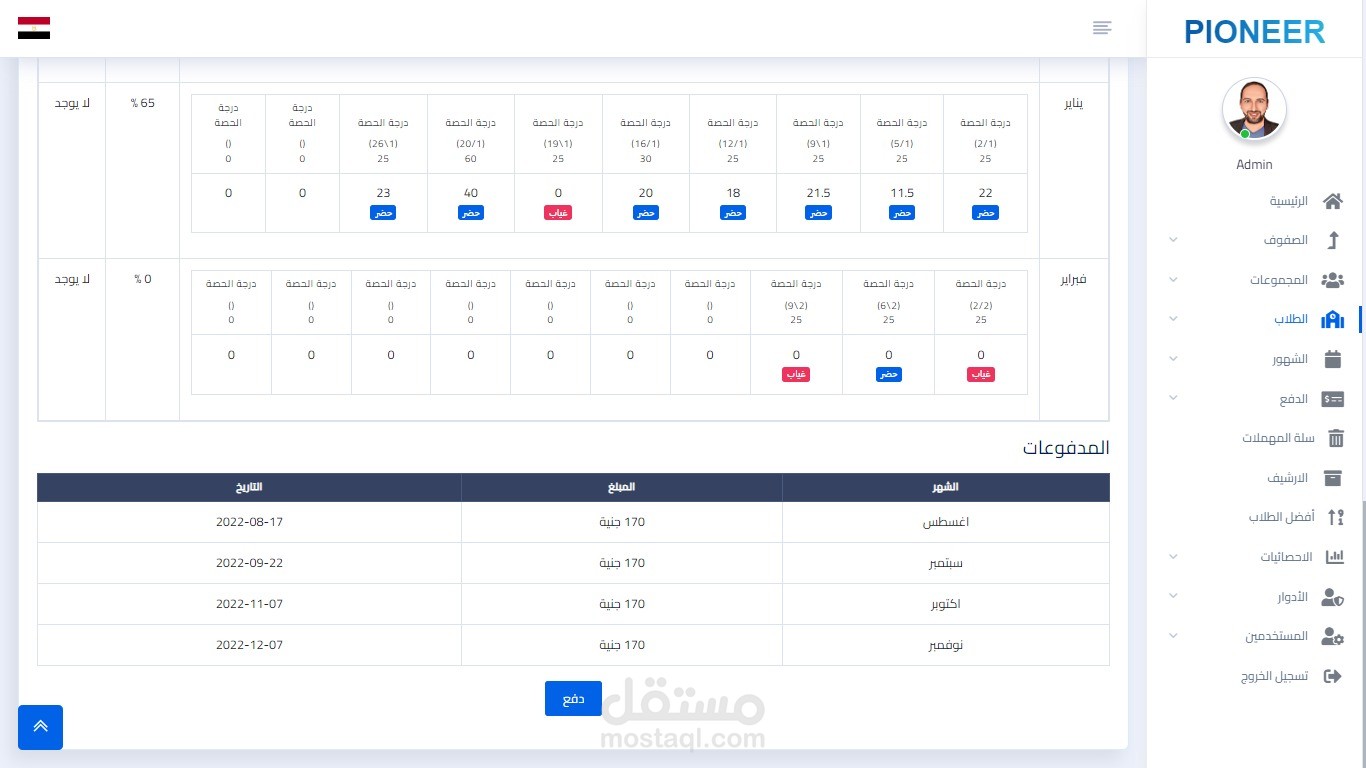 - can view STATISTICS Page and see ATTENDANCE and PAYMENT STATISTICS and TOP STUDENTS FOR THE MONTH