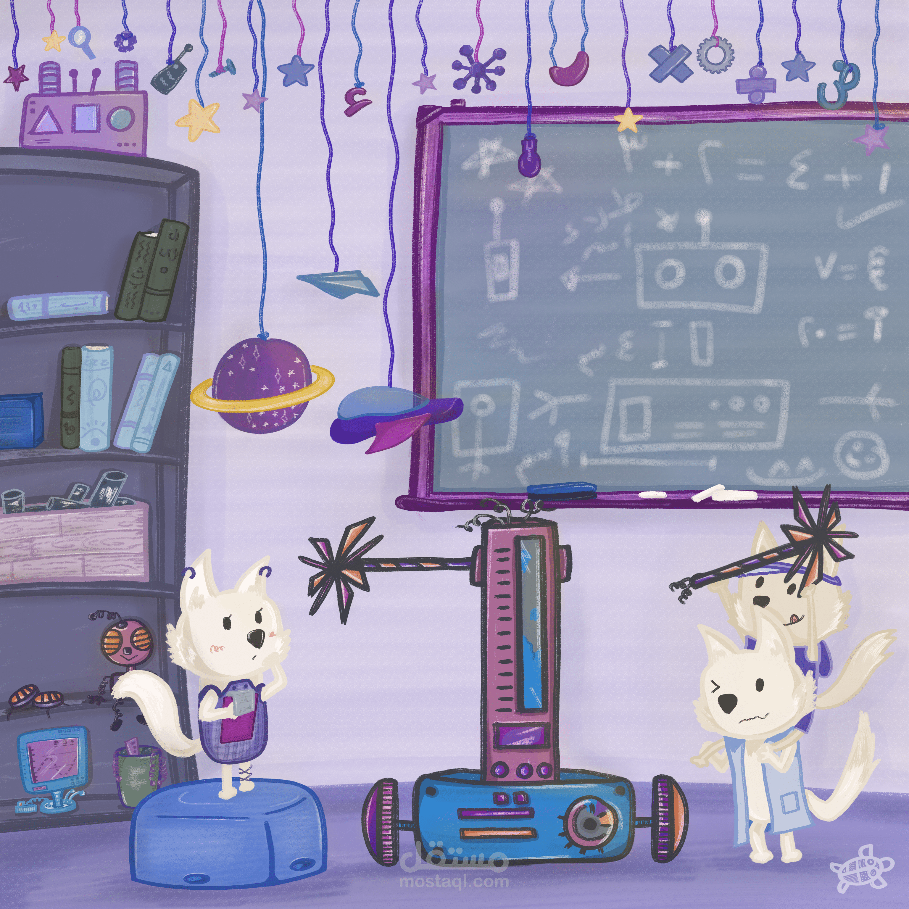 الثعالب الذكية - رسم رقمي لمشهد من قصة أطفال