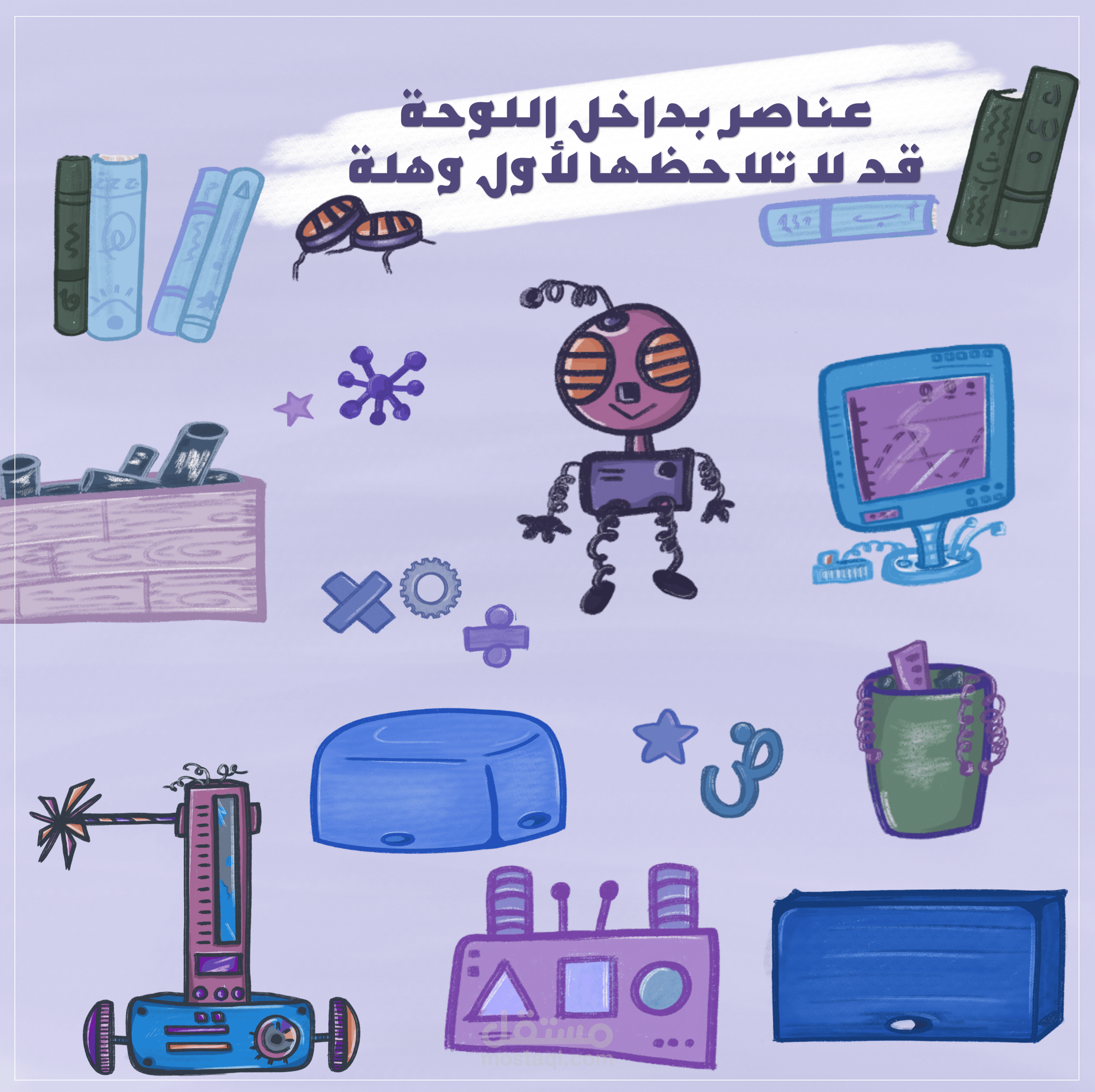 الفكرة: إعادة رسم لأحد لوحات قصة «ثلاث ثعالب ذكية» خلال فعالية لمكتبة «حكاية قمر»