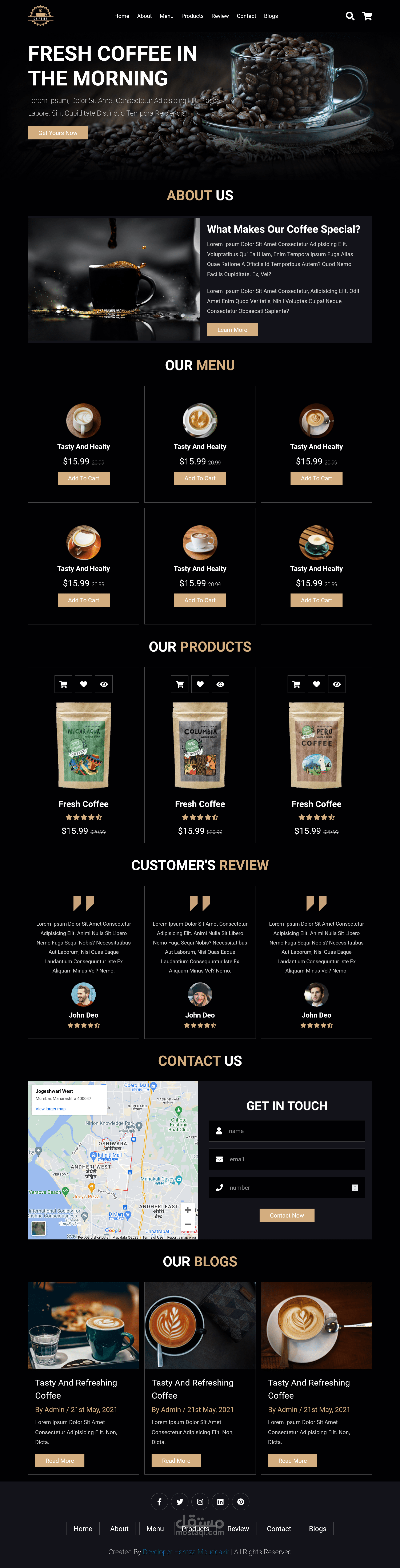 موقع ويب خاص بالقهوة لعرض منتجاتهم وصورهم