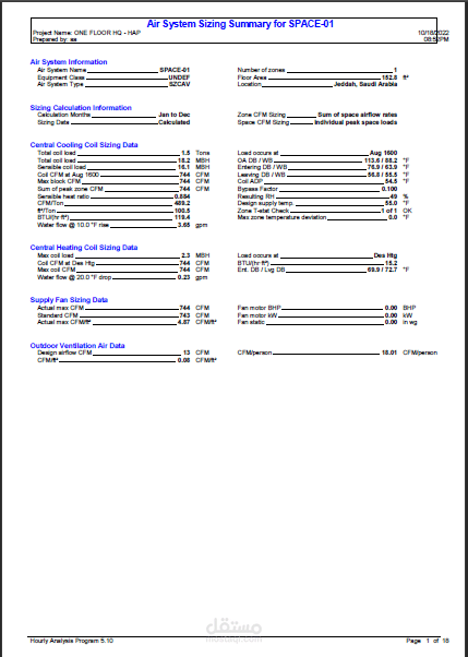 This sample is for HAP Calculation for a Commercial office in Saudi Arabia