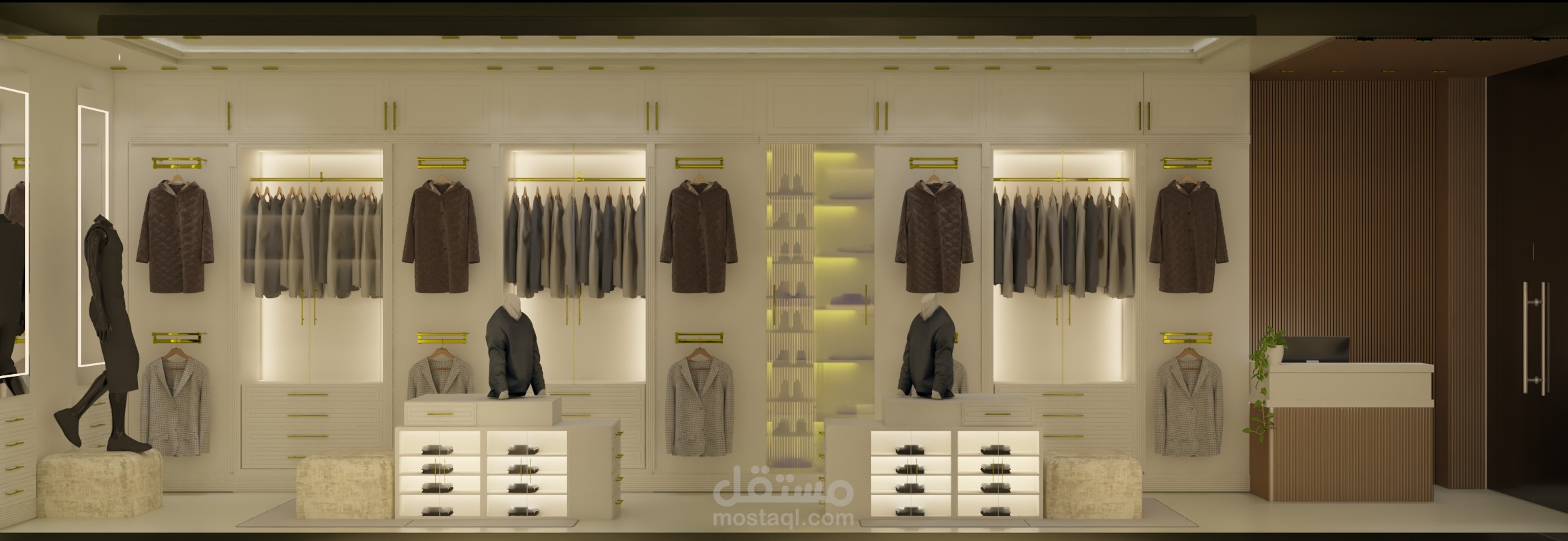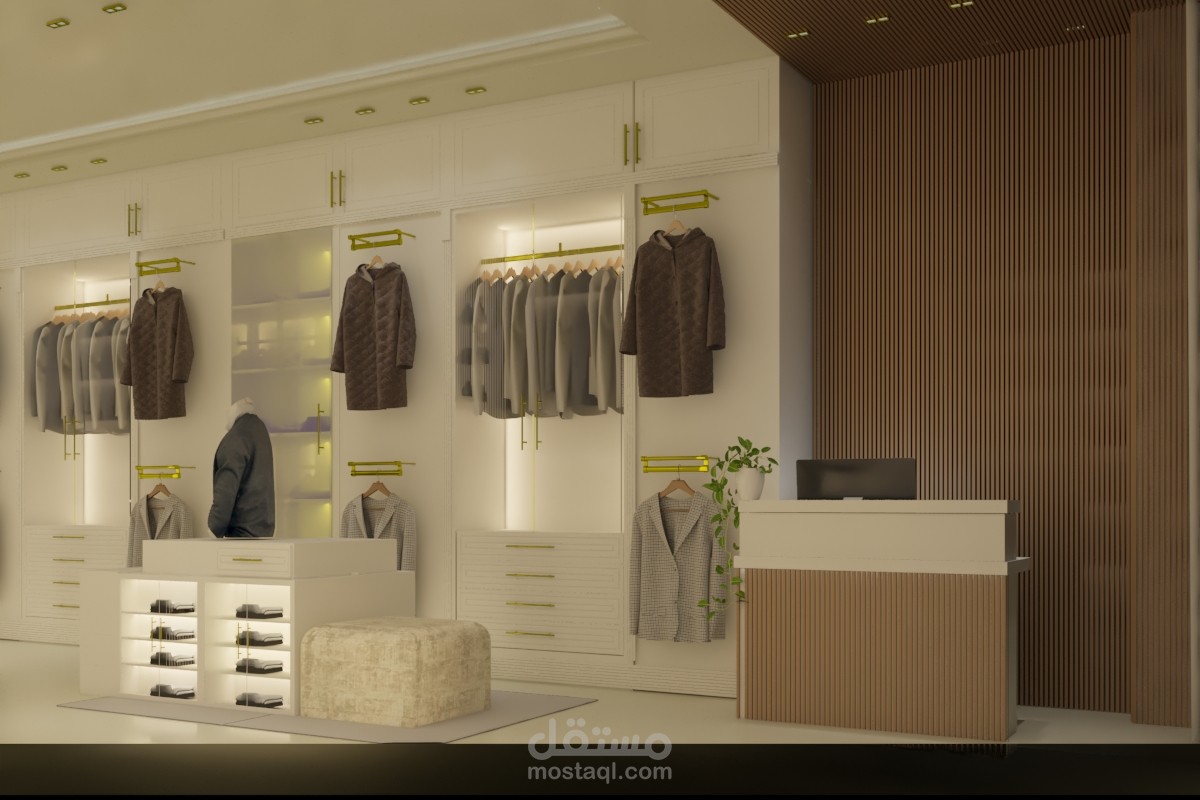 تصميم محل ملابس رجالي على الطراز الكلاسيكي بطلب من الزبون