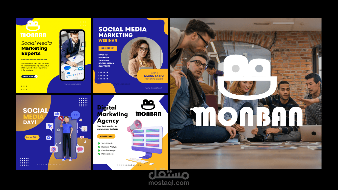 تصميم شعار وهوية بصرية فريدة من نوعها ومتميزة لوكالة موبان حيث تم العمل عليها بكل احترافية وعناية, اتمنى ان تنال من اعجابكم ان شاء الله