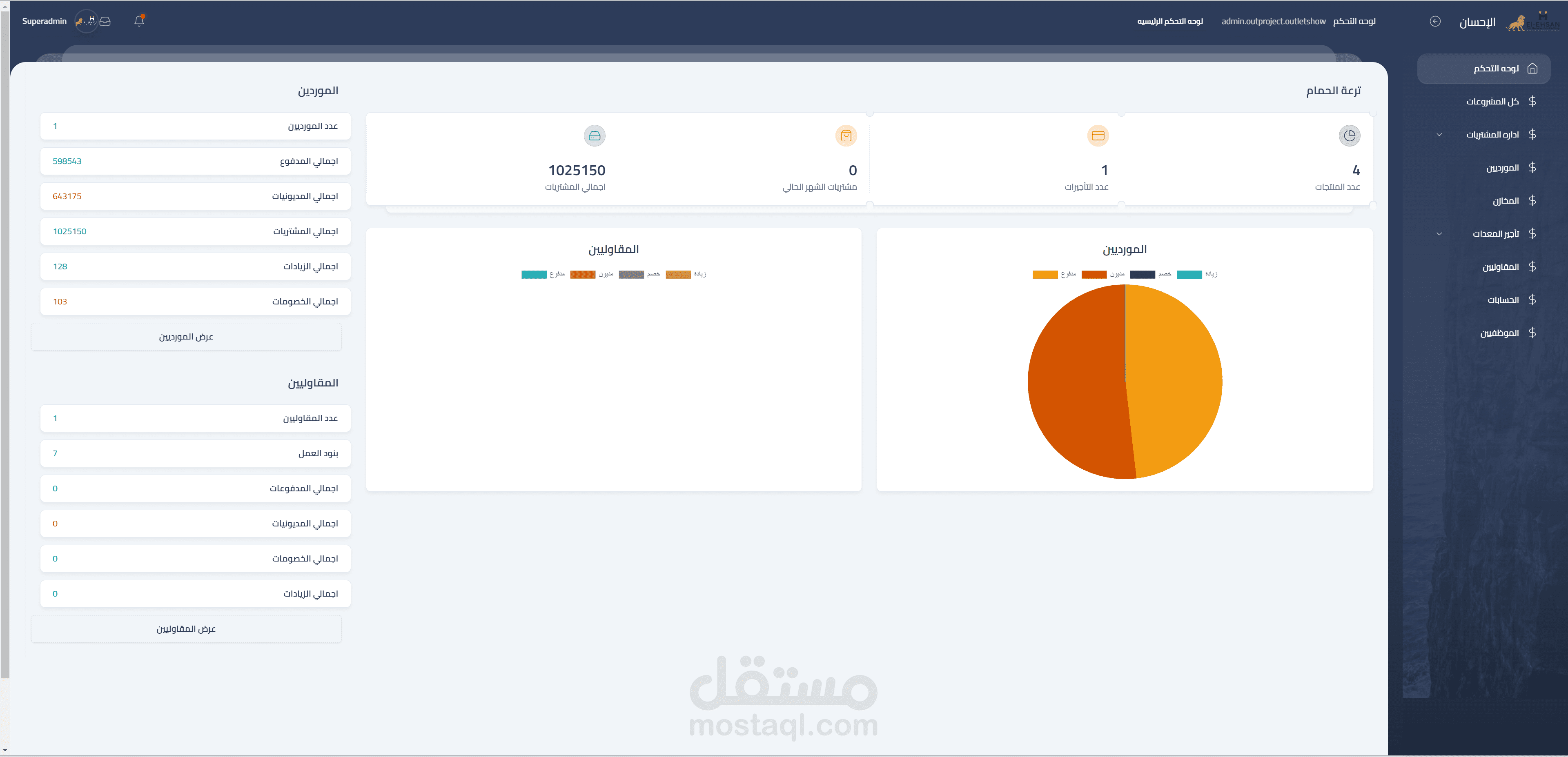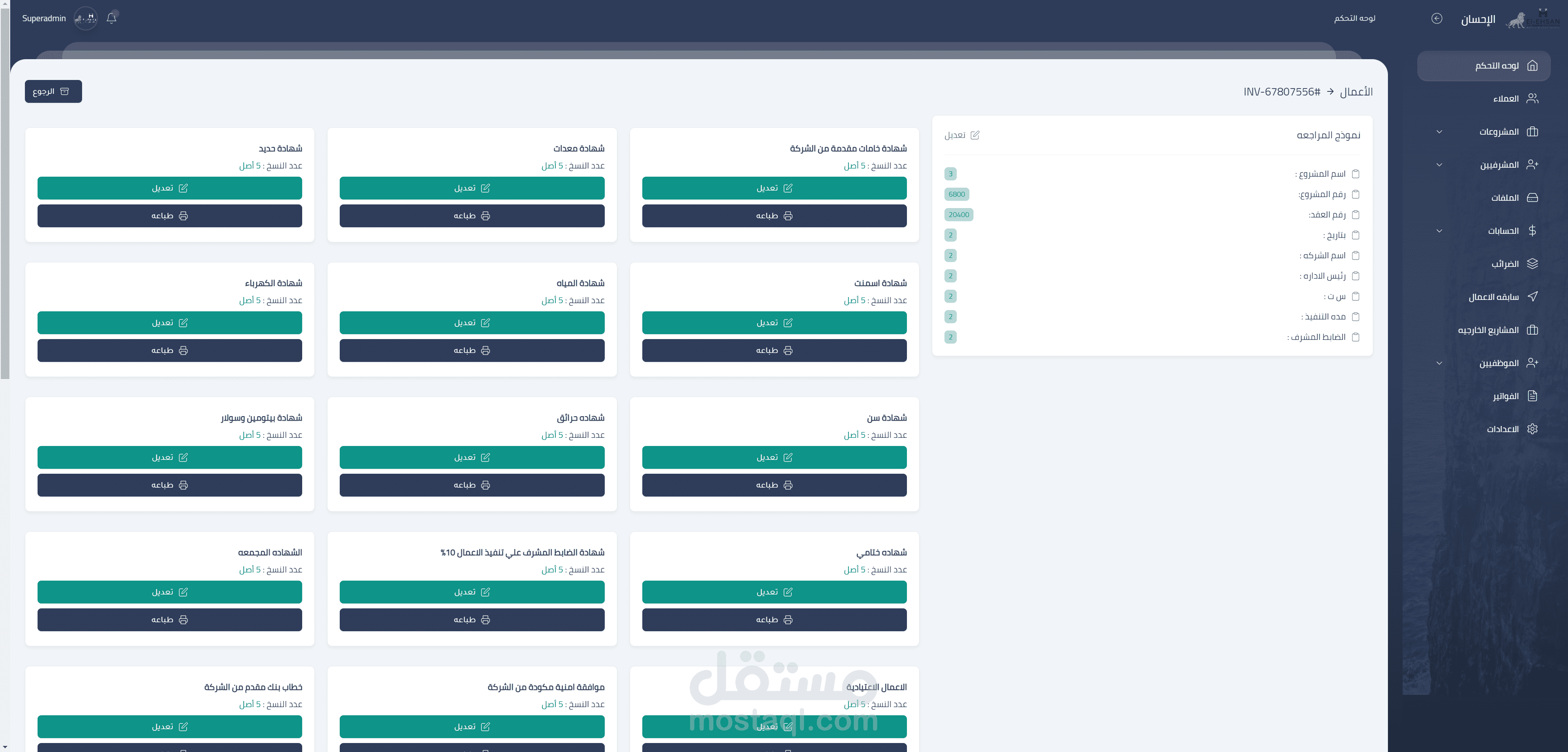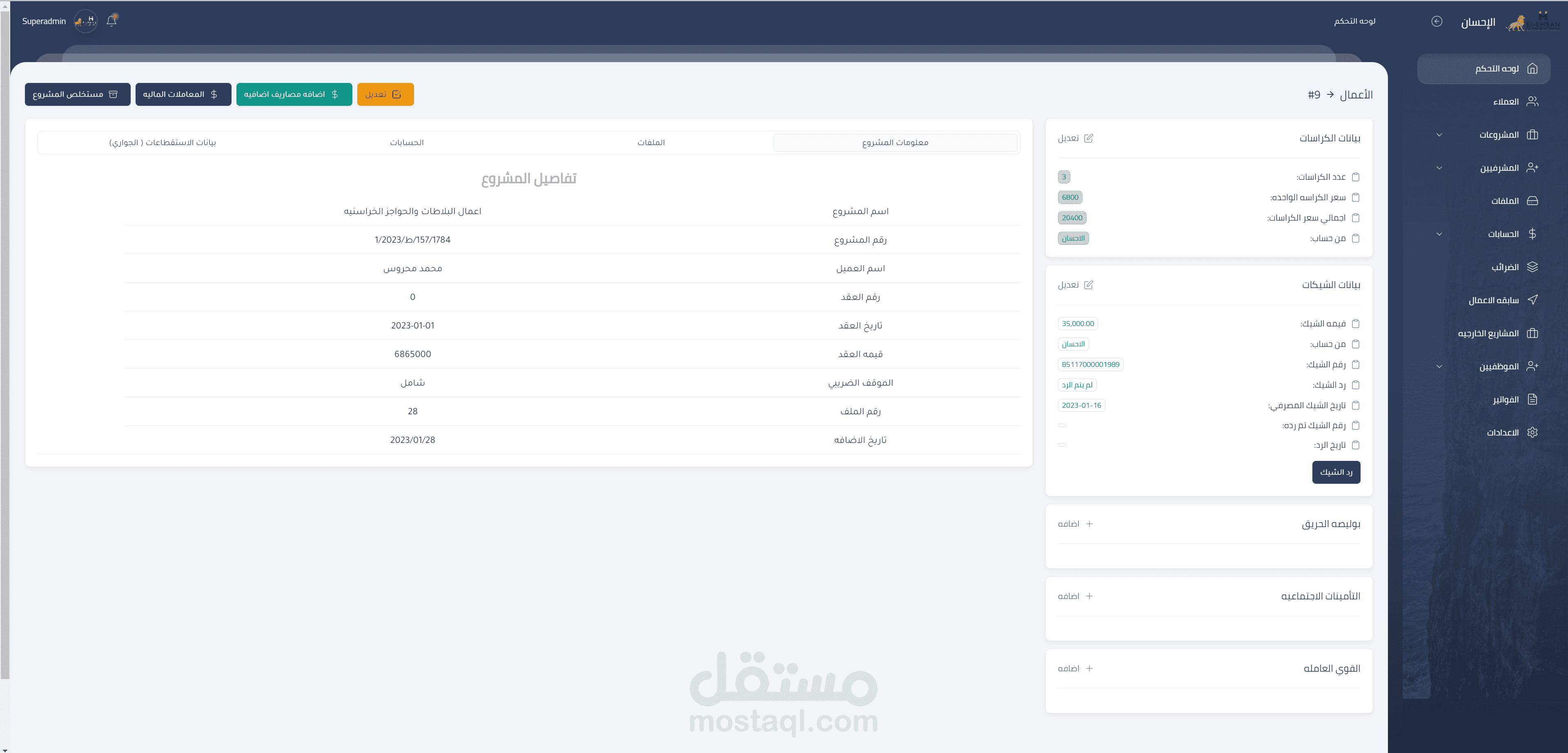 لوحه تحكم شركه عقارات تحتوي على مشاريع وcrm وضرائب وسوابق اعمال ومخازن وعشرات التفاصيل الاخرى
