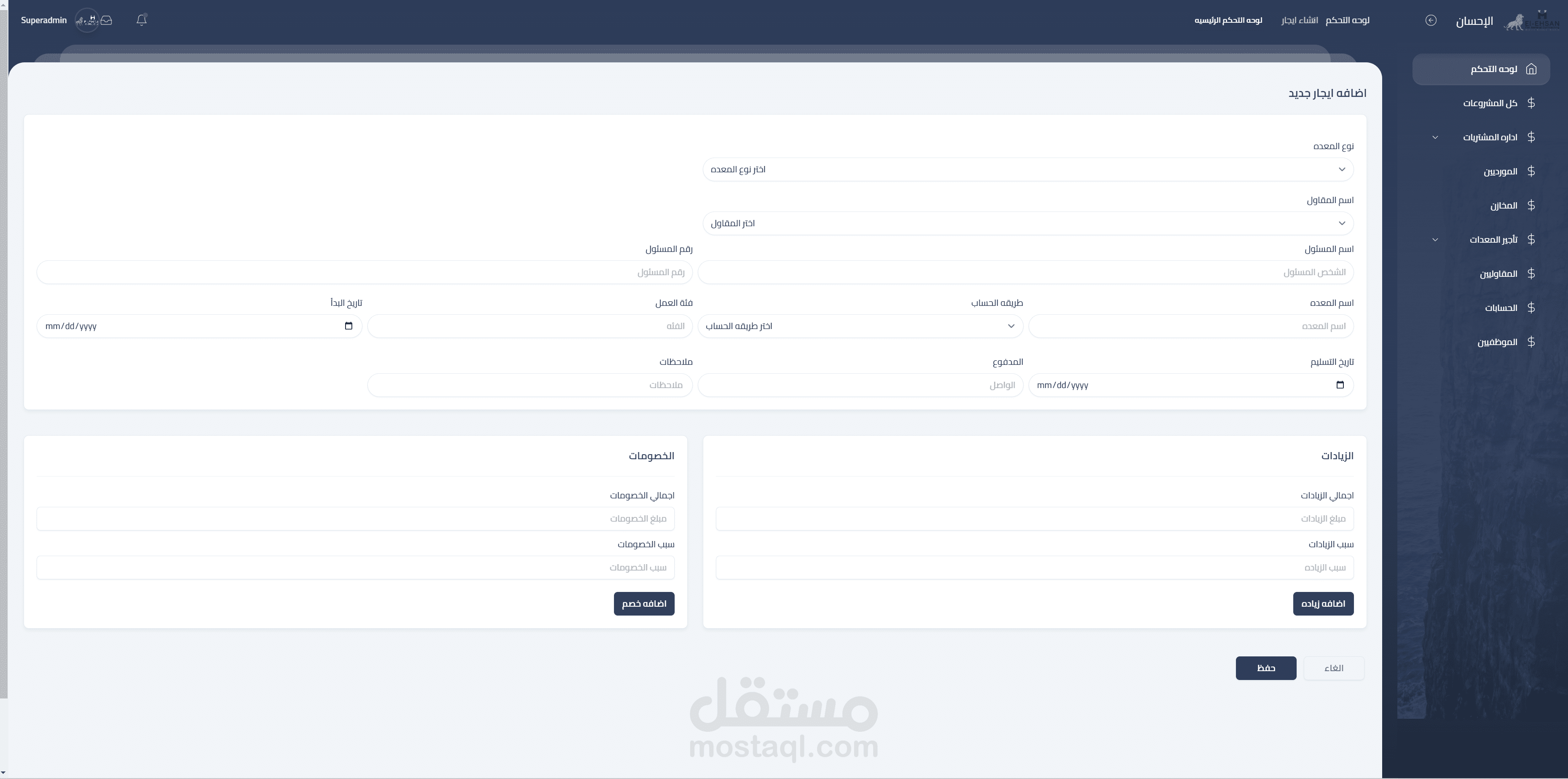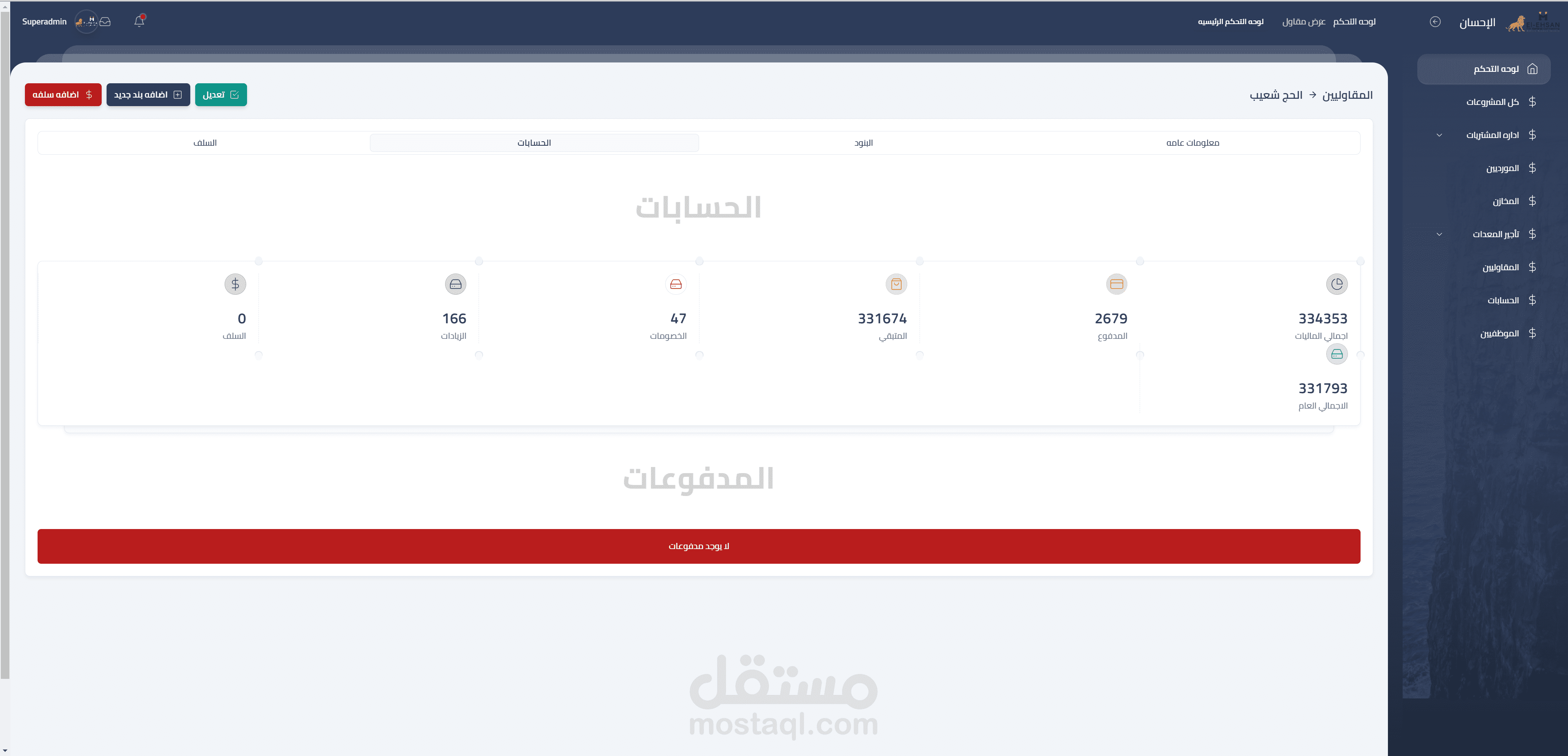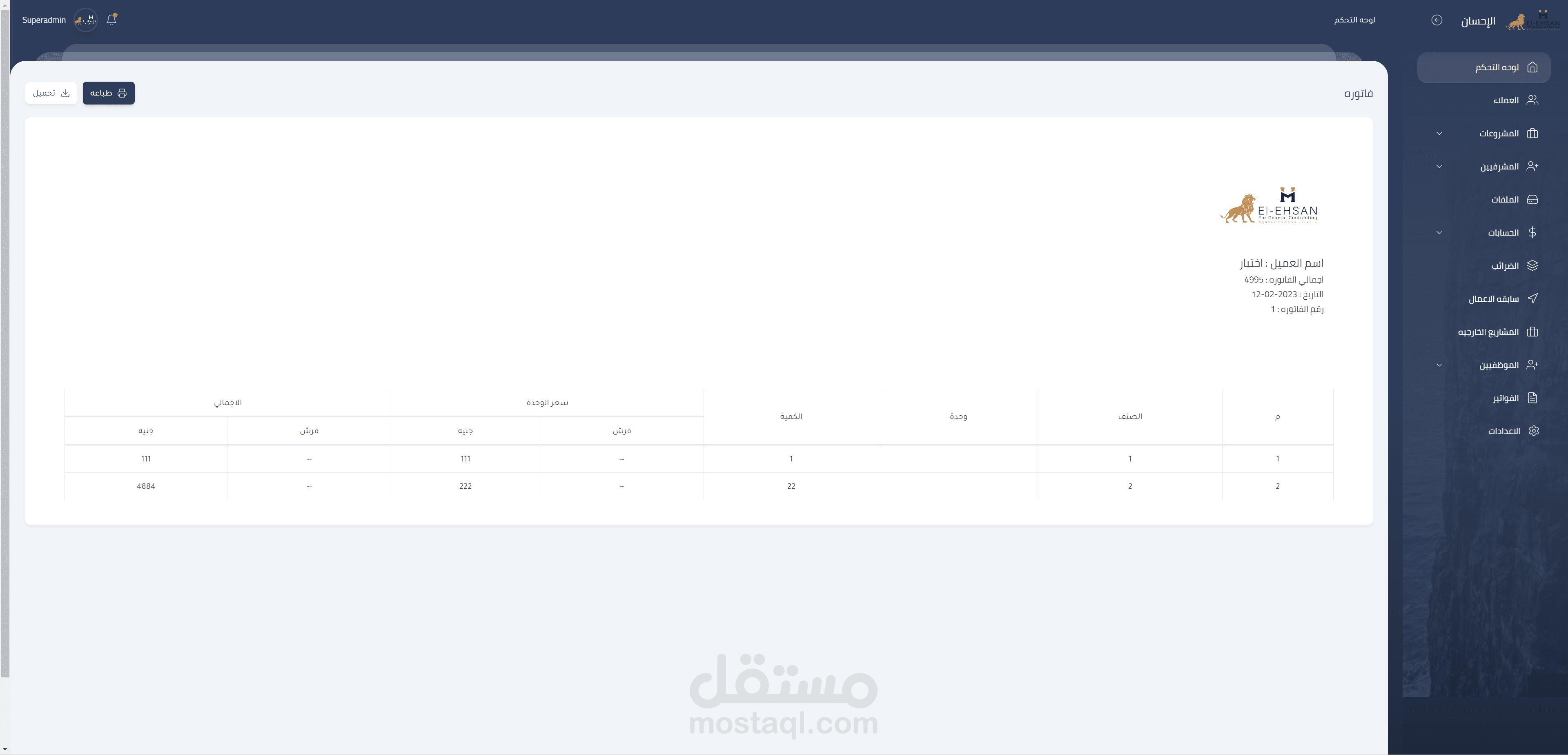 لوحه تحكم شركه عقارات تحتوي على مشاريع وcrm وضرائب وسوابق اعمال ومخازن وعشرات التفاصيل الاخرى