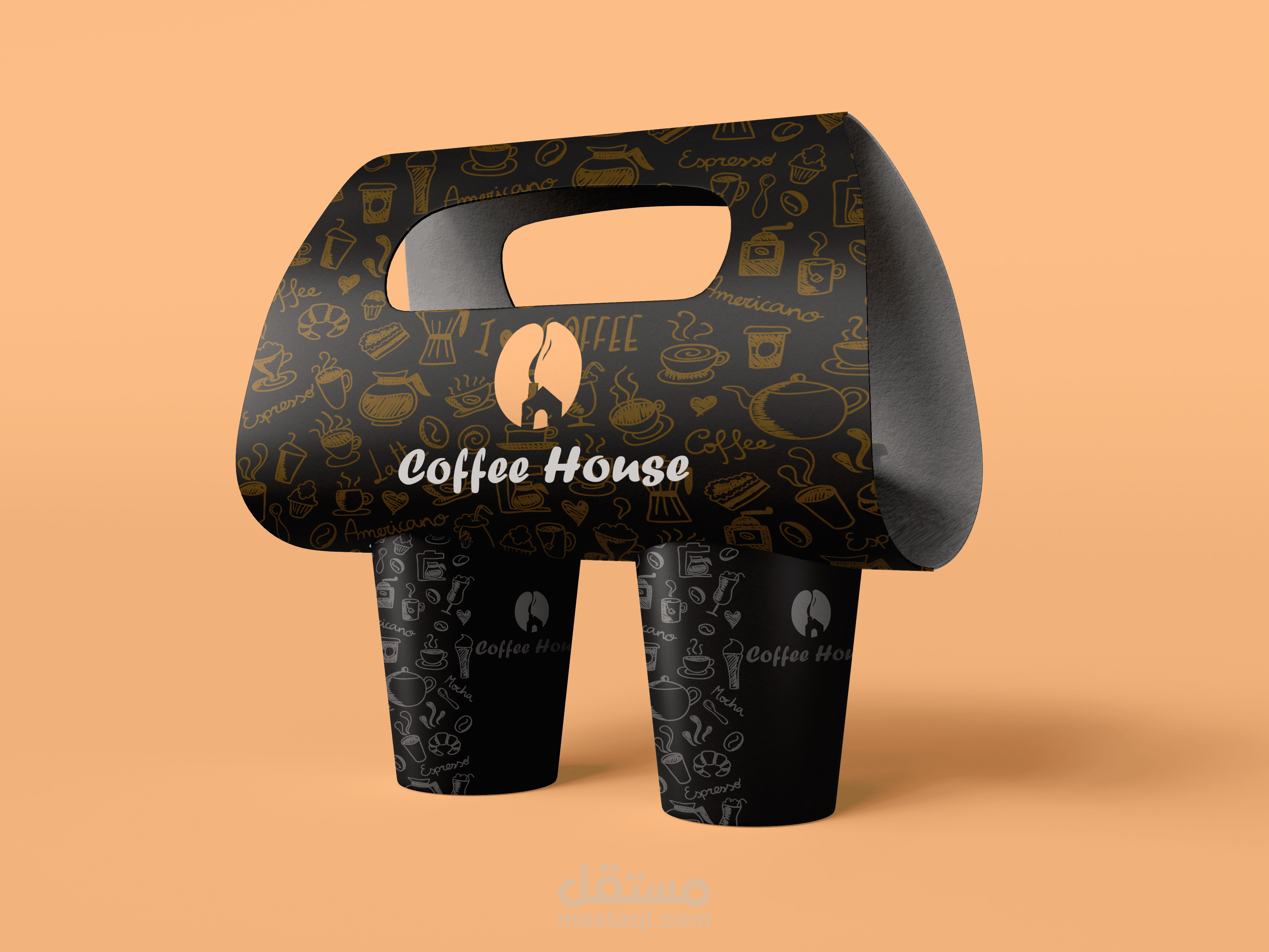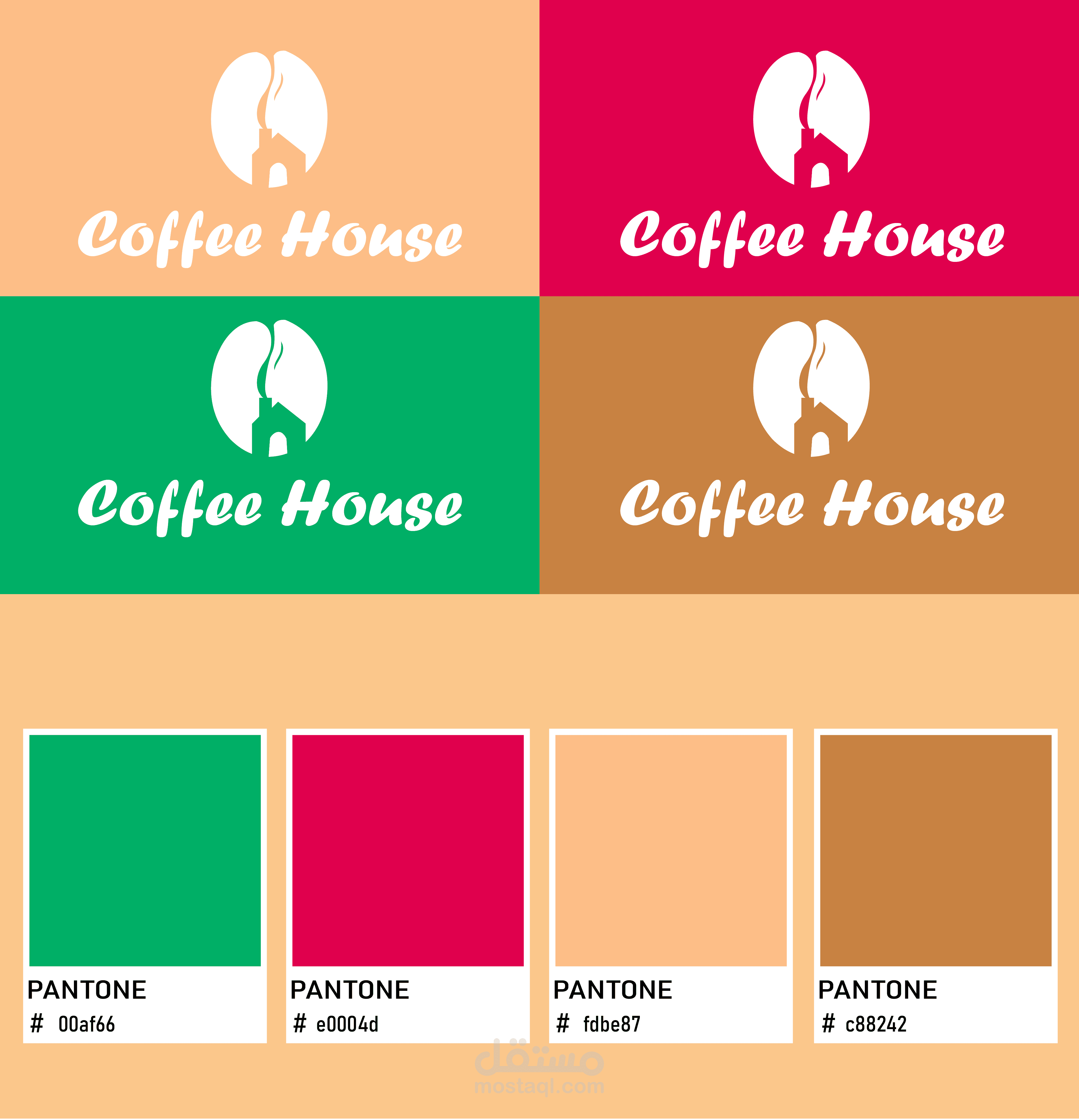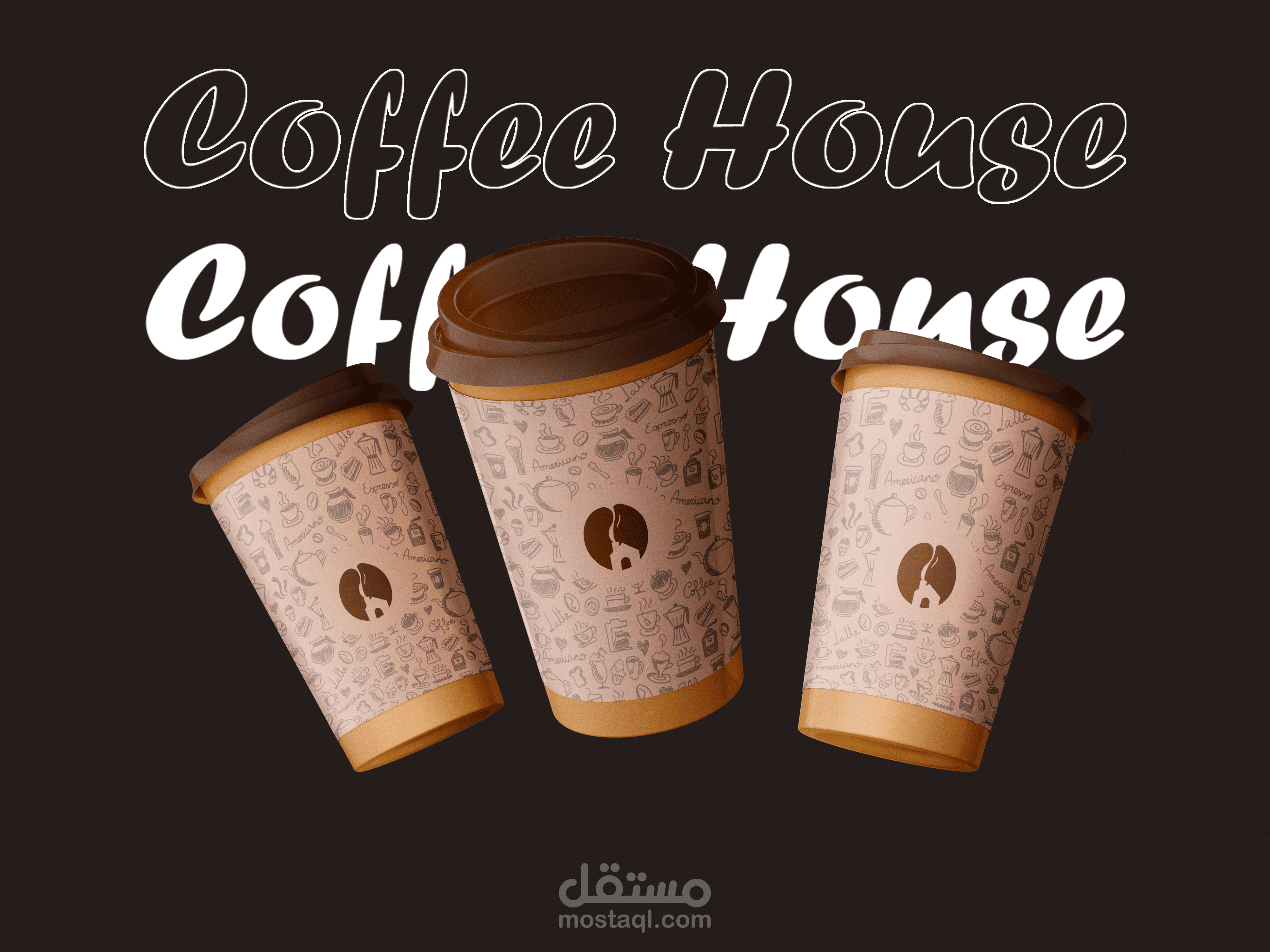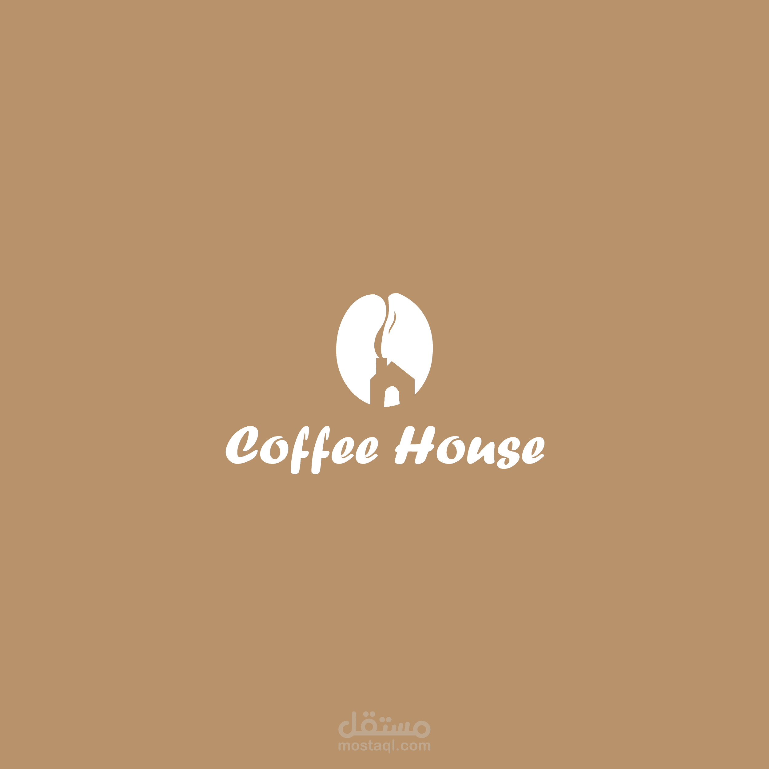 عبارة عن بيت وخارج منه دخان يشكل حبة القهوة