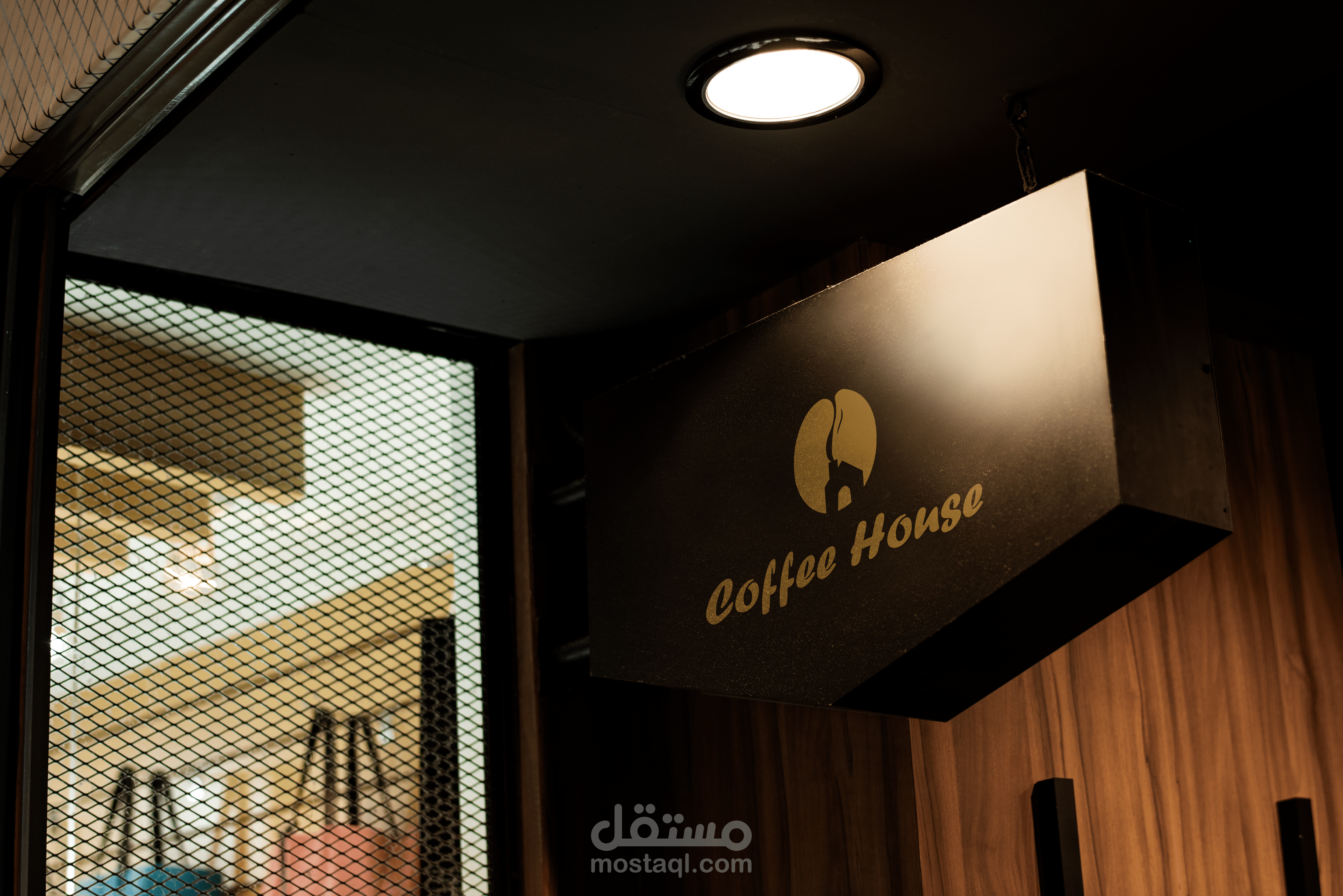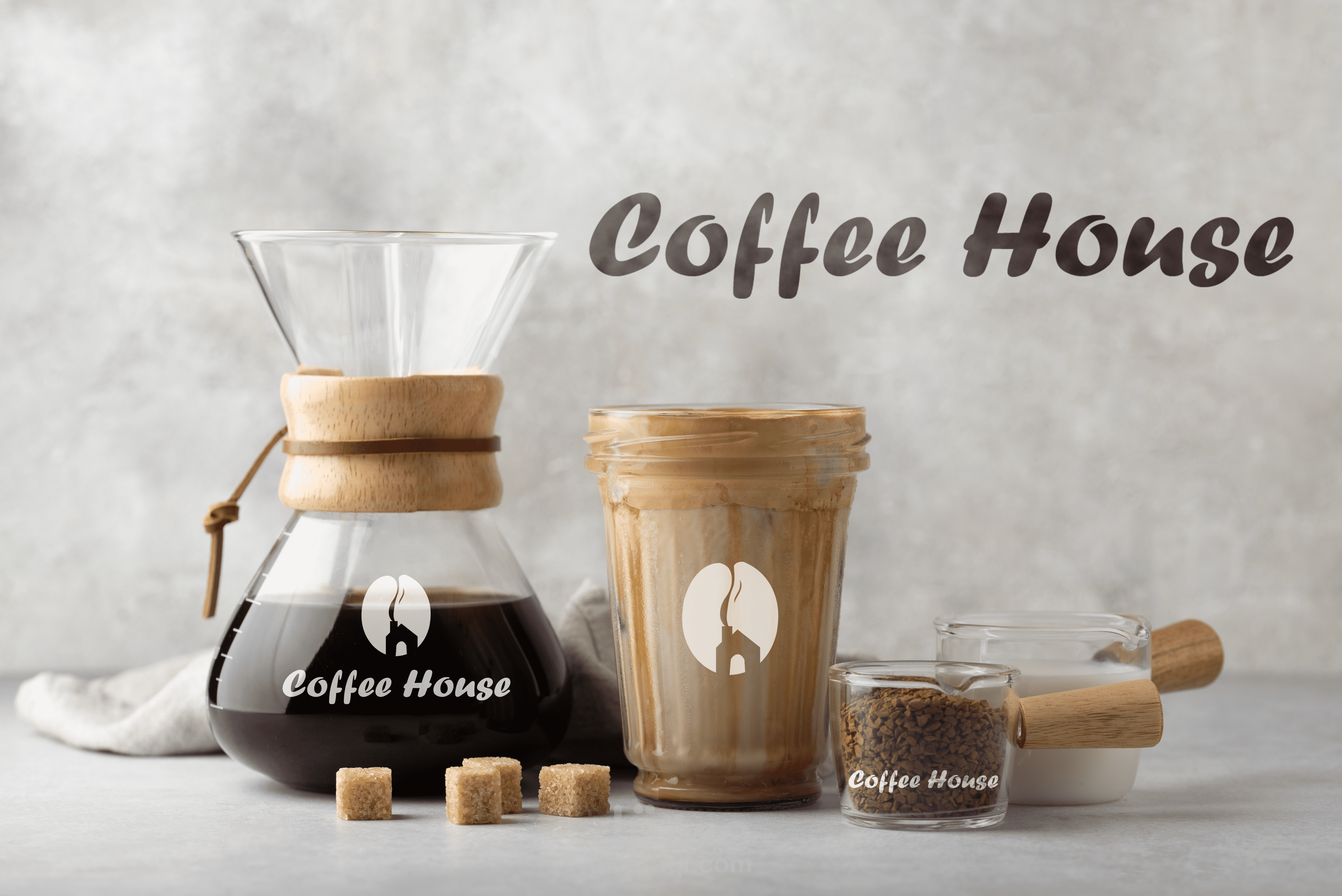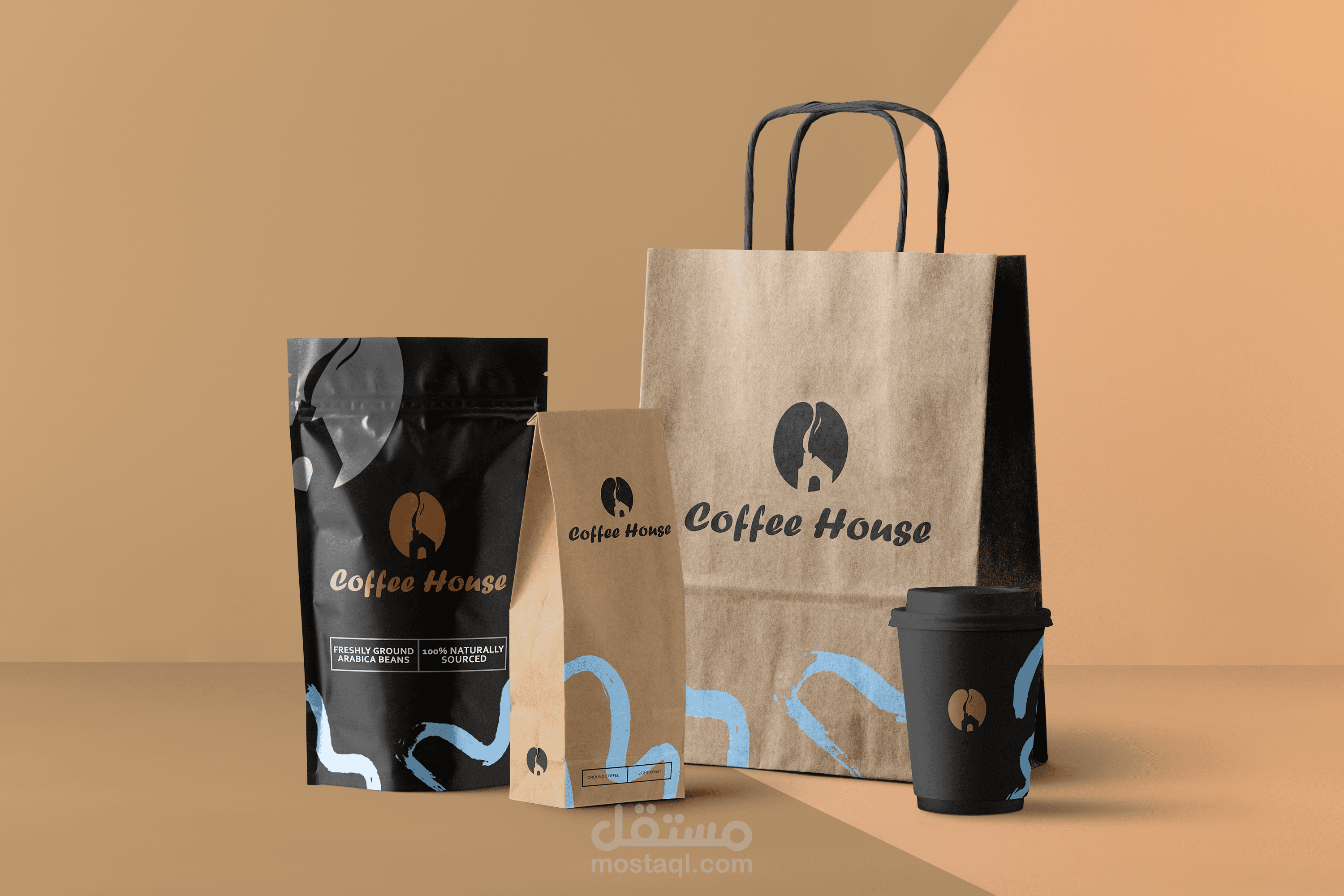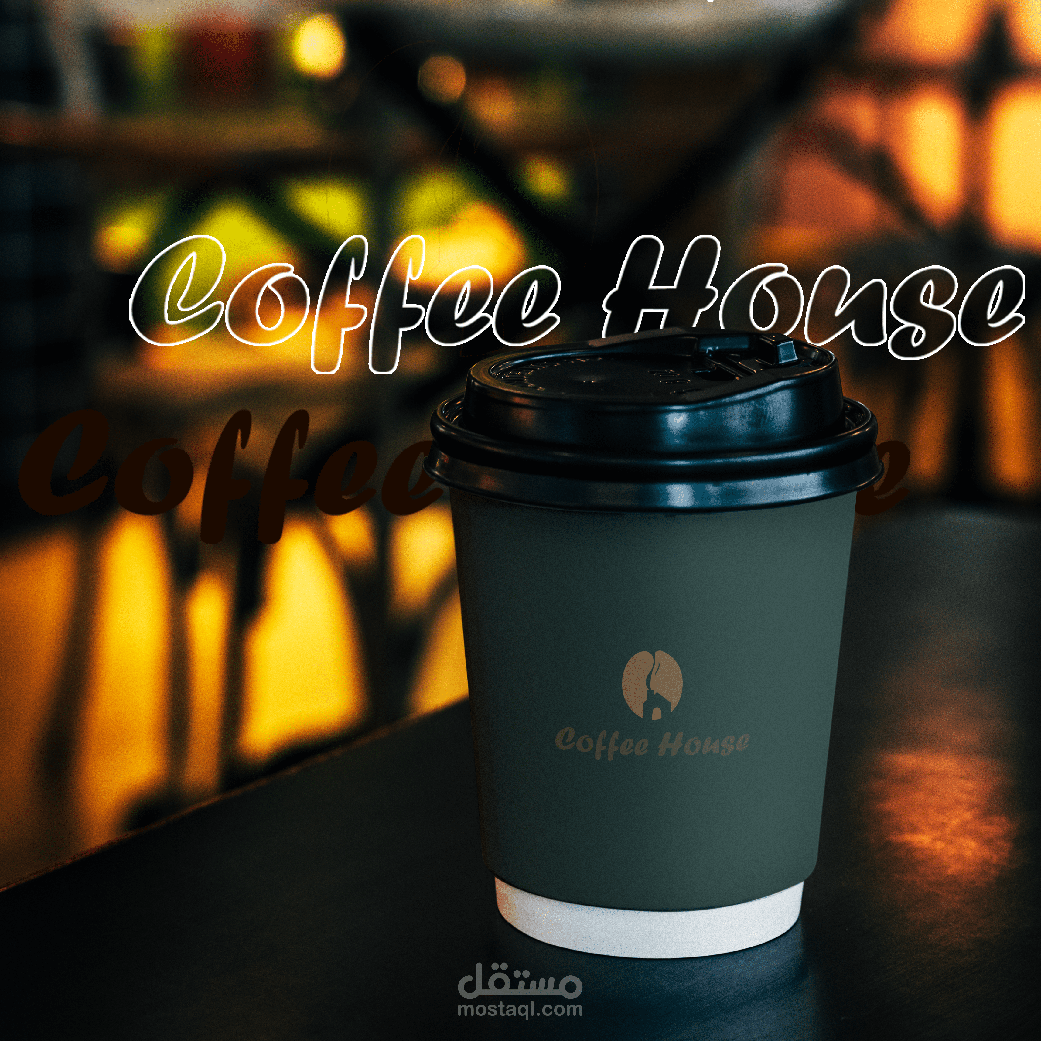 عبارة عن بيت وخارج منه دخان يشكل حبة القهوة