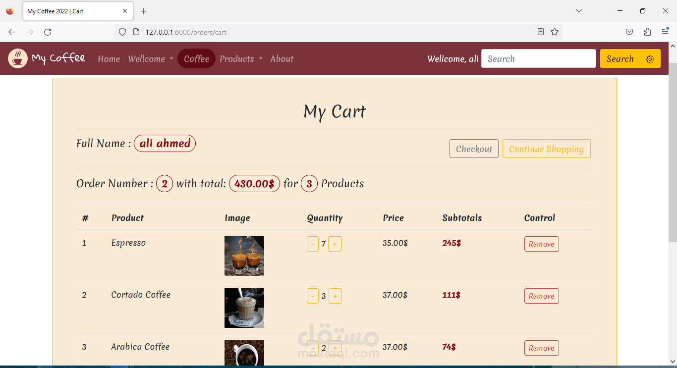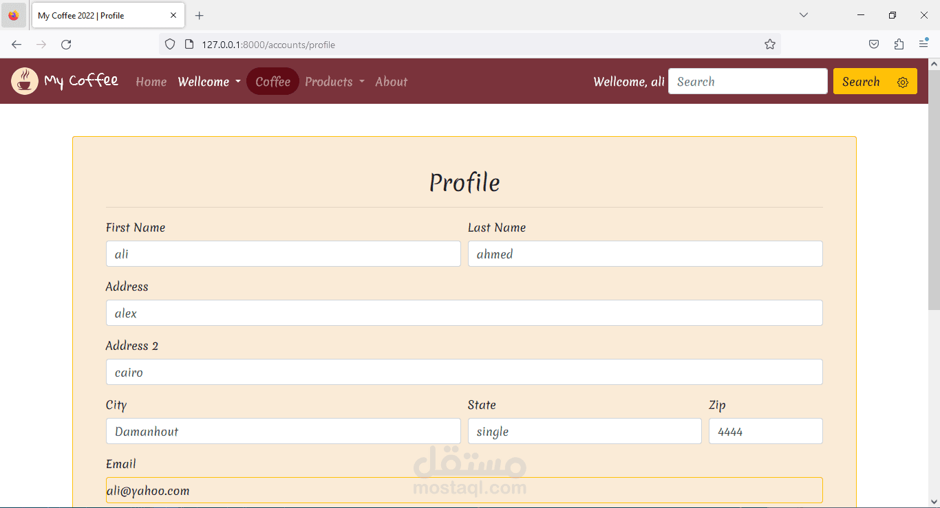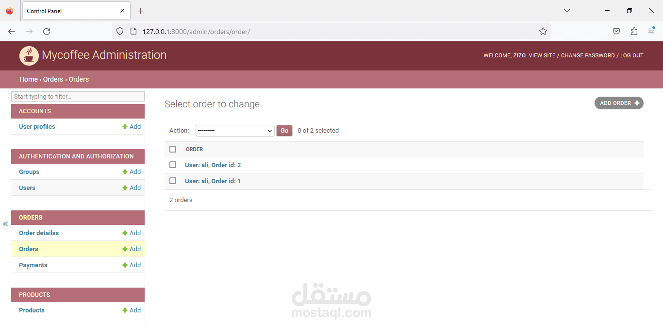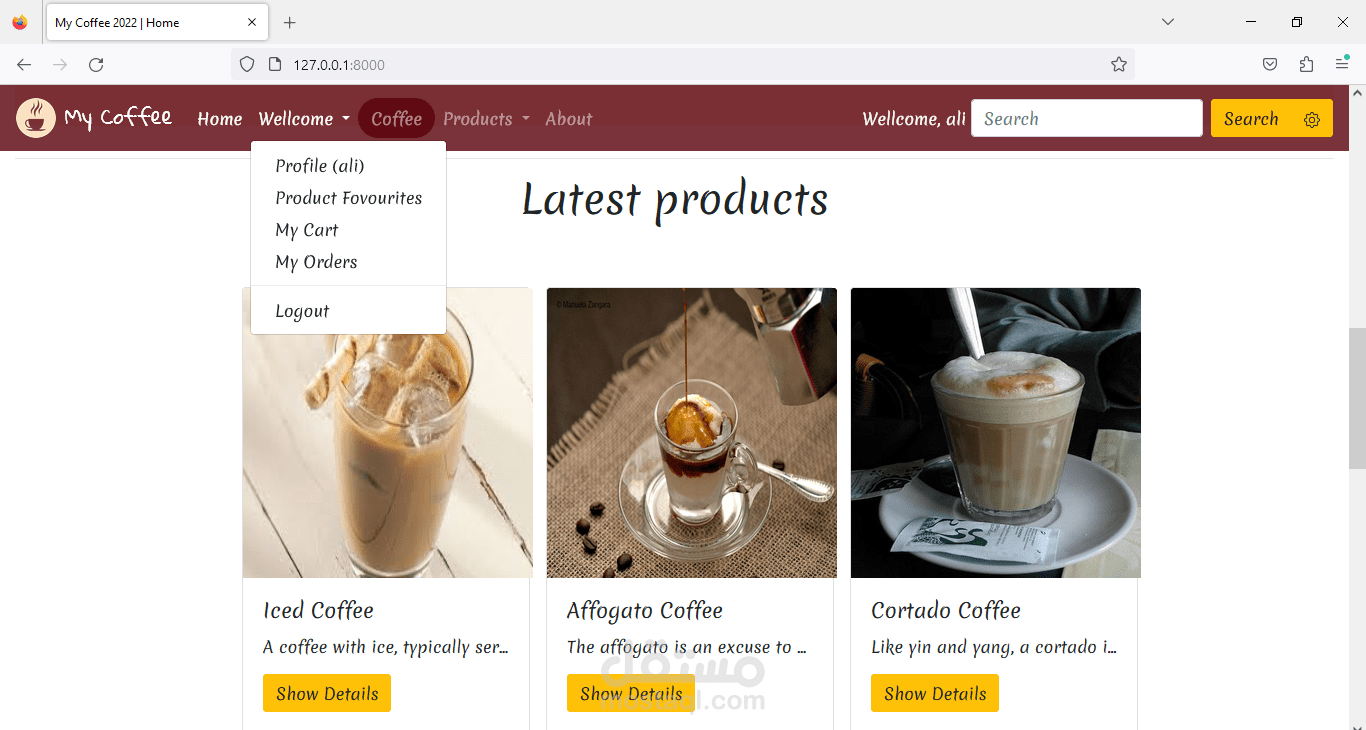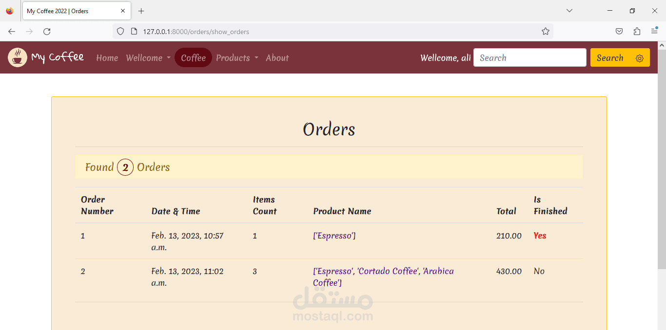 نظام ادارة لكافية باستخدام اطار الجانجو من البايثون