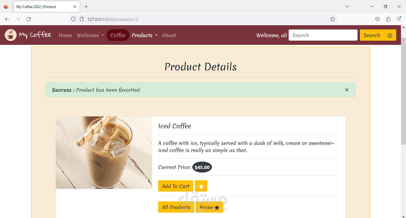 ** المستخدم له الحق من اضافة المنتجات المفضلة ليه بغرض استخدمها لاحقا