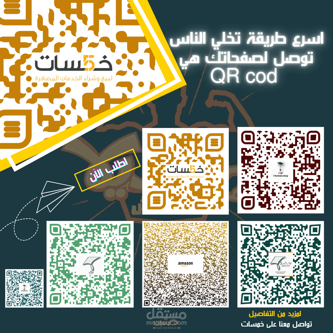 تصميمات احترافية ومتنوعة لكل مواقع التواصل الإجتماعي التي تخصك او حتي الملفات التي تريد تسهيل الوصول اليها عن طريق مسح ال QR cod .
