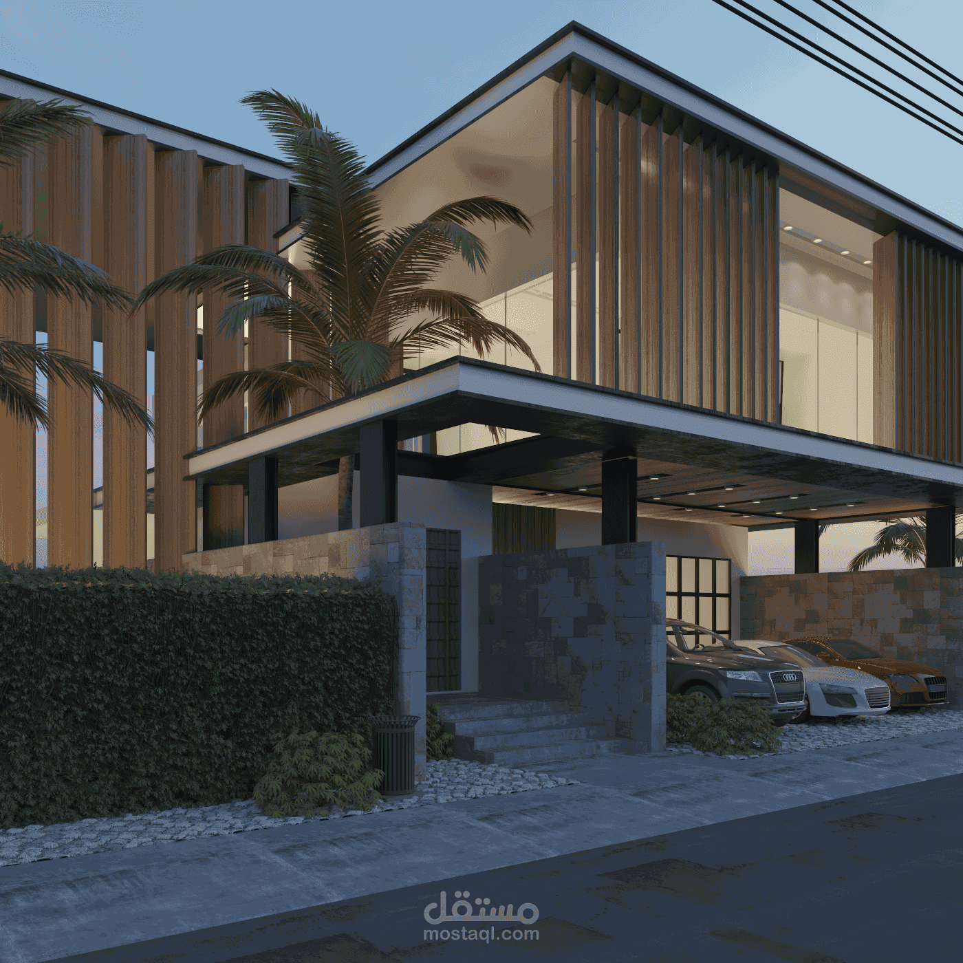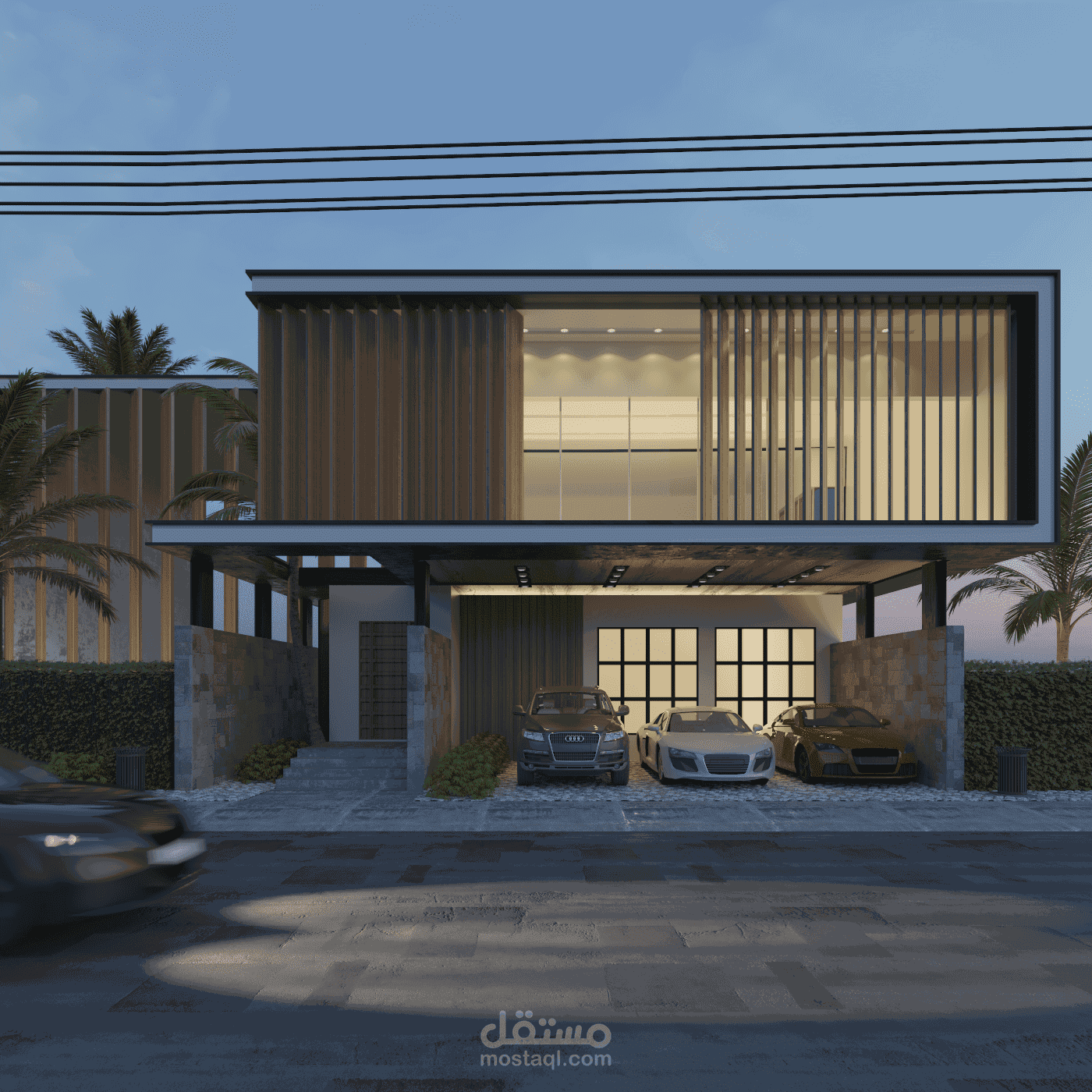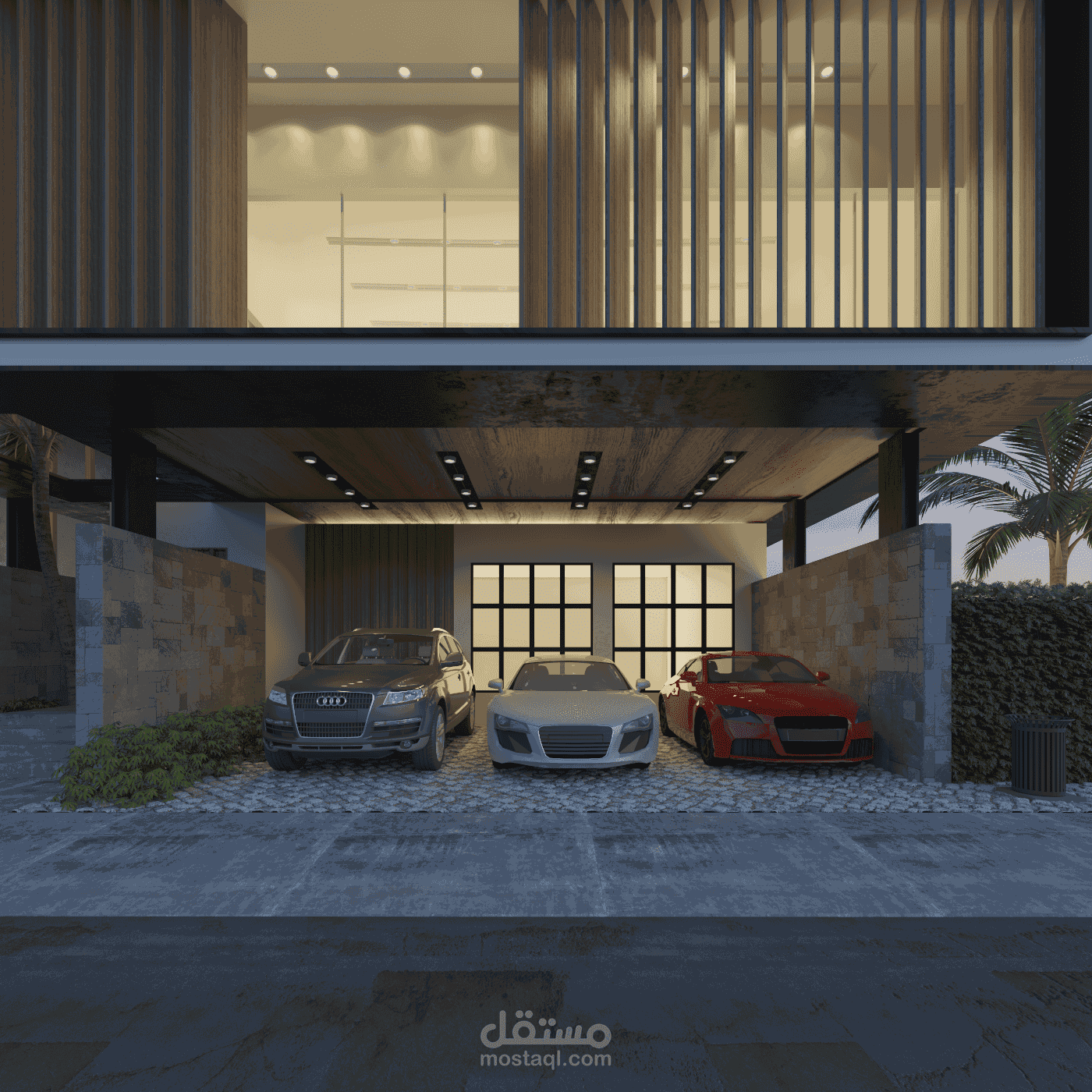 تصميم فيلا مودرن مع باركينغ يستع 3 سيارات مؤلفة من طابقين