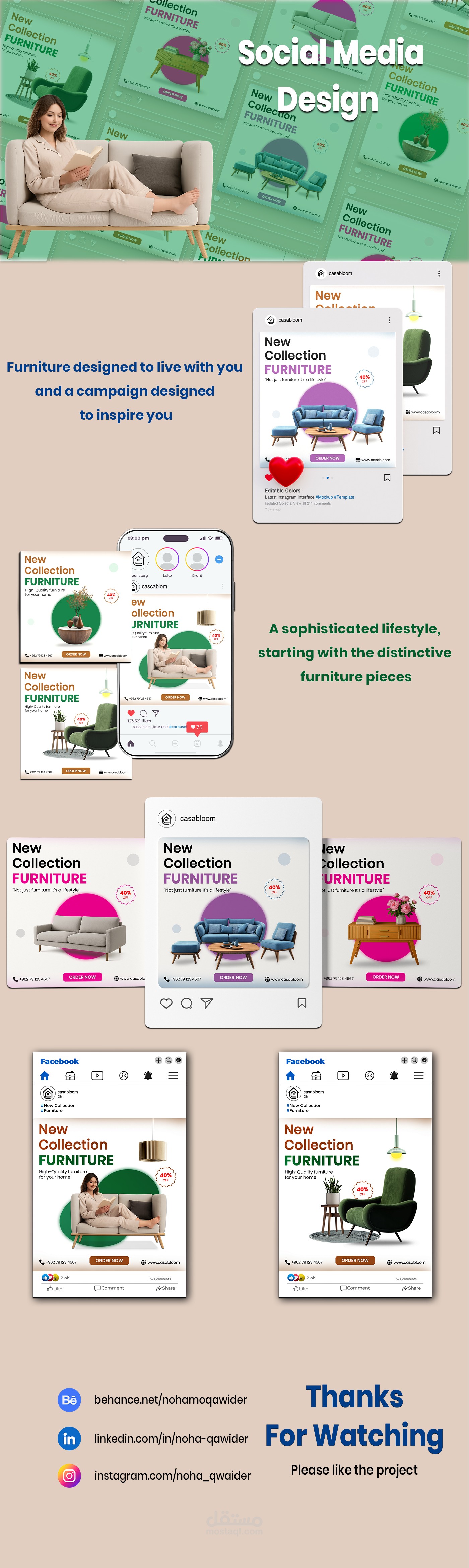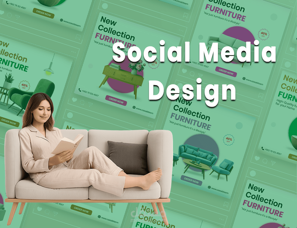 تصميم بصري أنيق يعكس جودة وأناقة الأثاث الاحترافي، مع استخدام ألوان هادئة وتنسيق متناسق يبرز التفاصيل والذوق الرفيع، مما يجذب الانتباه ويزيد التفاعل على منصات التواصل الاجتماعي.