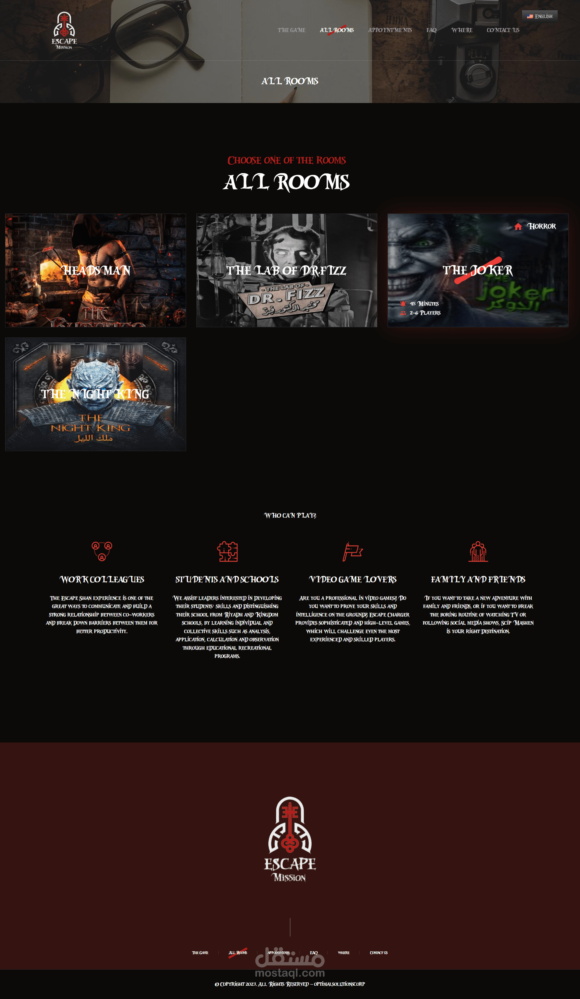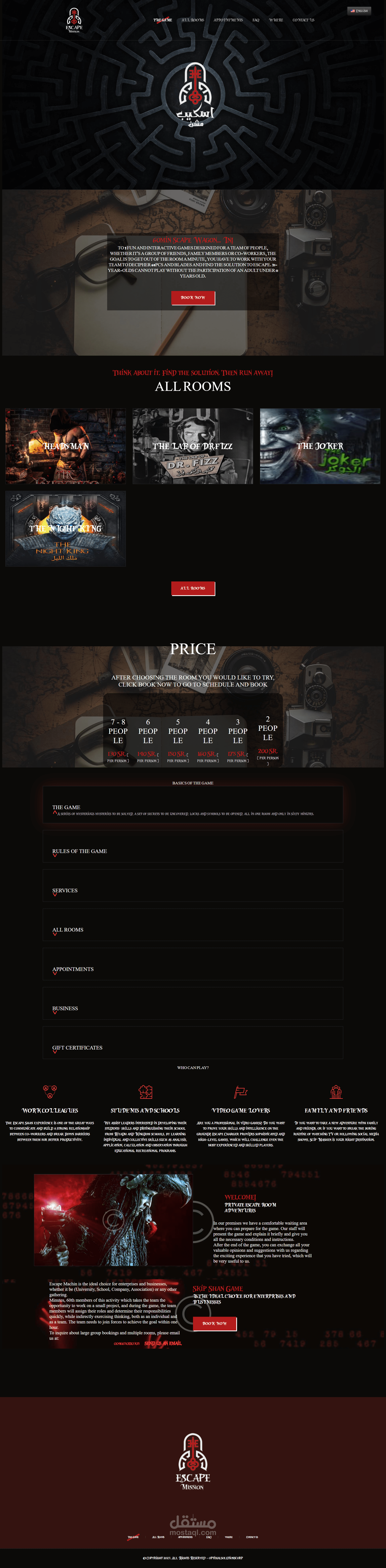 لعبة ممتعة وتفاعلية مصمّمة لفريق مكون من 2 إلى 8 أشخاص، سواء كانت مجموعة من الأصدقاء, أفراد العائلة أو زملاء العمل, الهدف هو الخروج من الغرفة خلال 60 دقيقة، عليك العمل مع فريقك لفك الرموز والشفرات وإيجاد الحل للهروب.