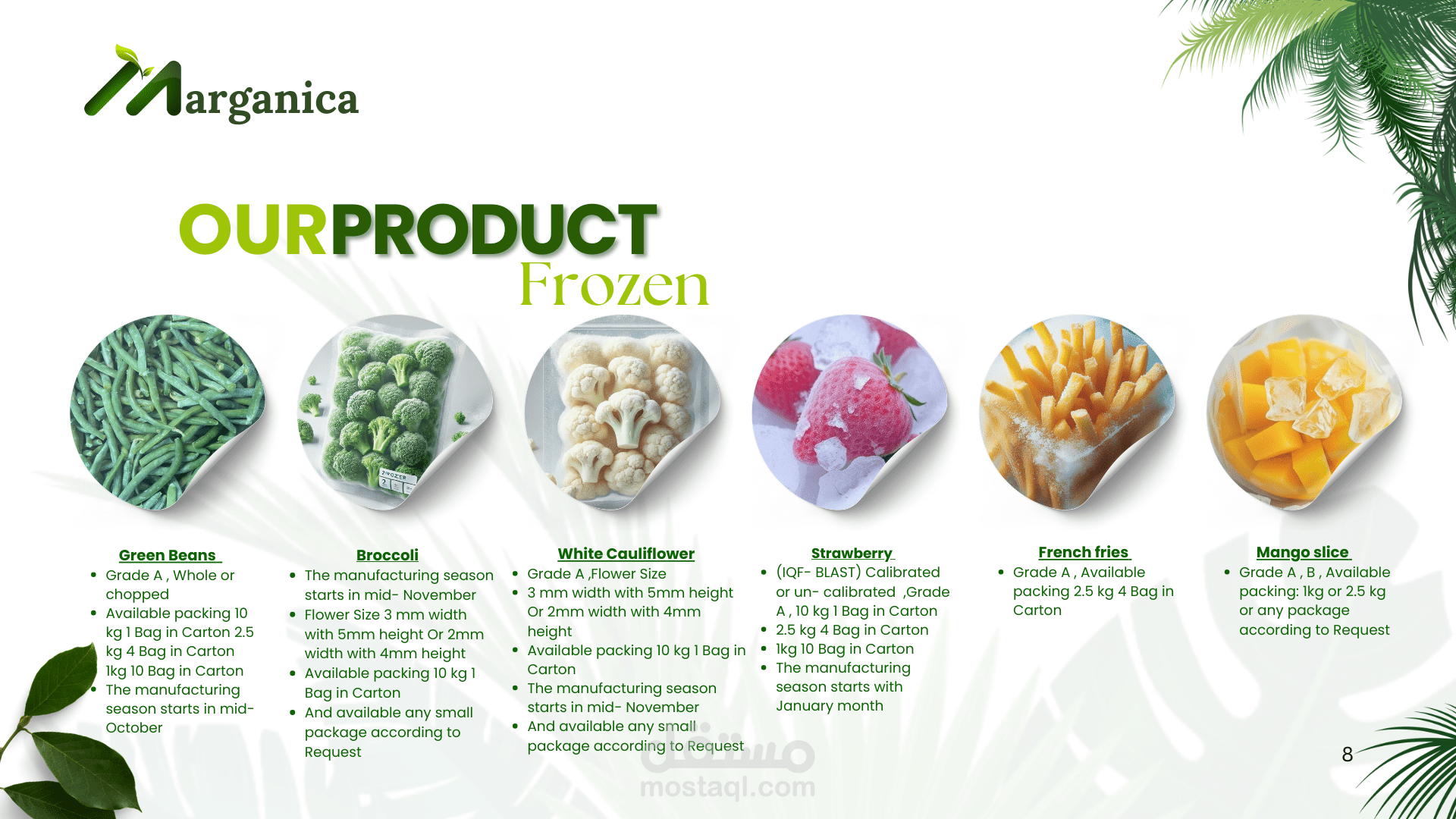 تم اختياري لعمل Profile company لشركه تصدير حيث تطلب مني ادخال المنتجات بشكل بيرز شكل الثمار والبذزور بشكلها الطبيعي مما تطلب في بعض المنتجات صور حيه تبرز الثقه في الاختيار