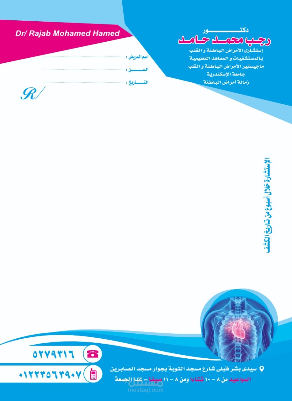 _ عمل كشف روشتات لعياده طبيب امراض الباطنه والقلب د/رجب حامد