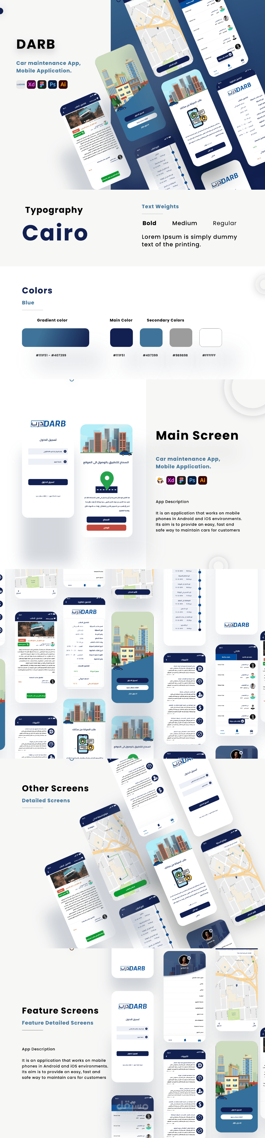 تطبيق Darp: هو تطبيق جوال في كل من بيئات Android و iOS ، ويهدف إلى توفير طريقة سهلة وسريعة وآمنة لصيانة جهاز Cars للعملاء دون الحاجة إلى الذهاب إلى ورش السيارات حتى يتمكن العميل من ذلك. يقوم بإنشاء طلب لصيانة سيارته ويدخل المعلومات المطلوبة ، ومن ثم تصل سيارة نقل لنقل سيارته إلى الورشة ، وبعد ذلك يتم العمل على صيانة السيارة ، ثم نقل السيارة من مكان الورشة إلى توصيل السيارة موقع للعميل ، ومن ثم الدفع الالكتروني من داخل التطبيق بطريقة سهلة وشاشات واضحة وتصاميم جميلة