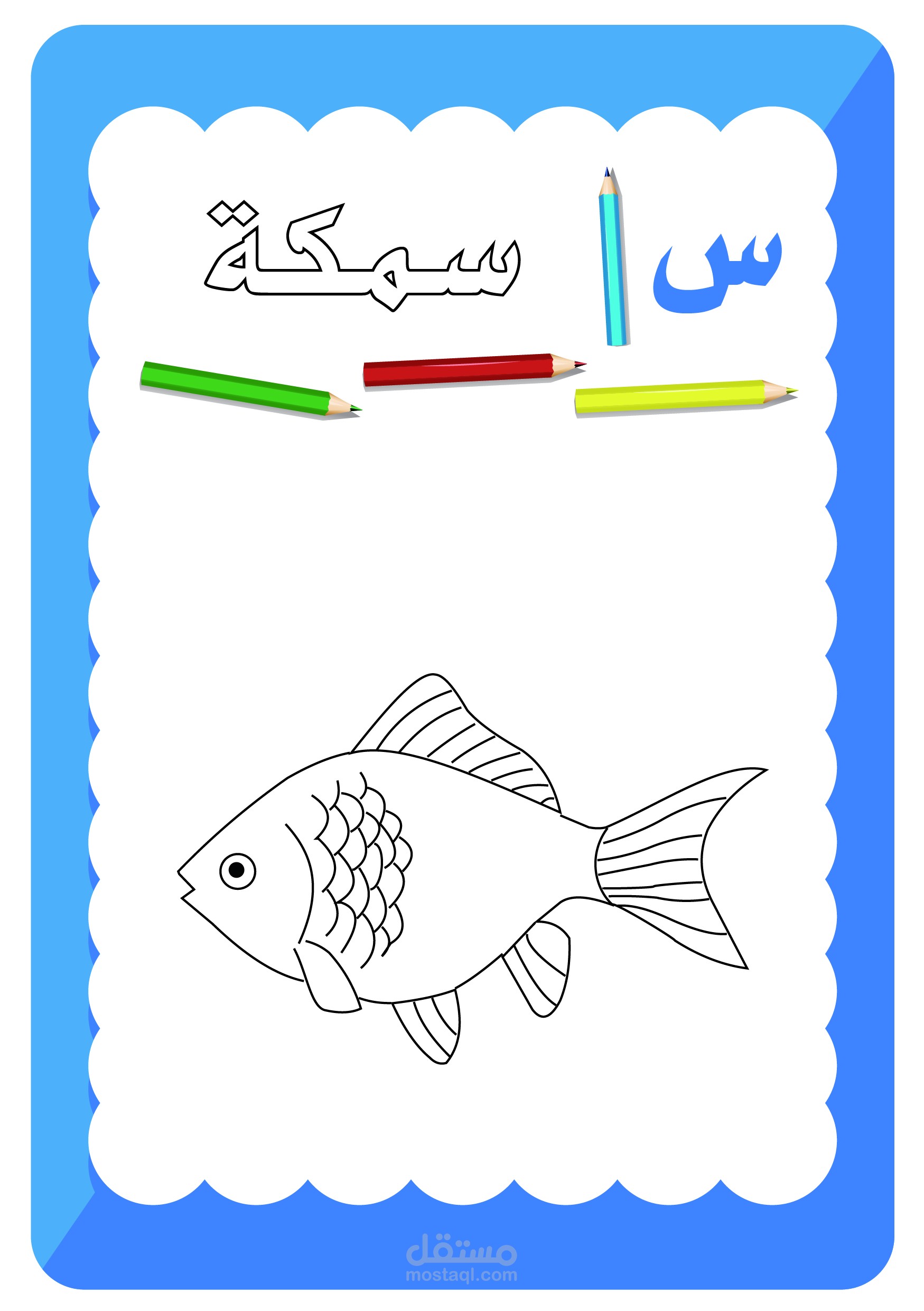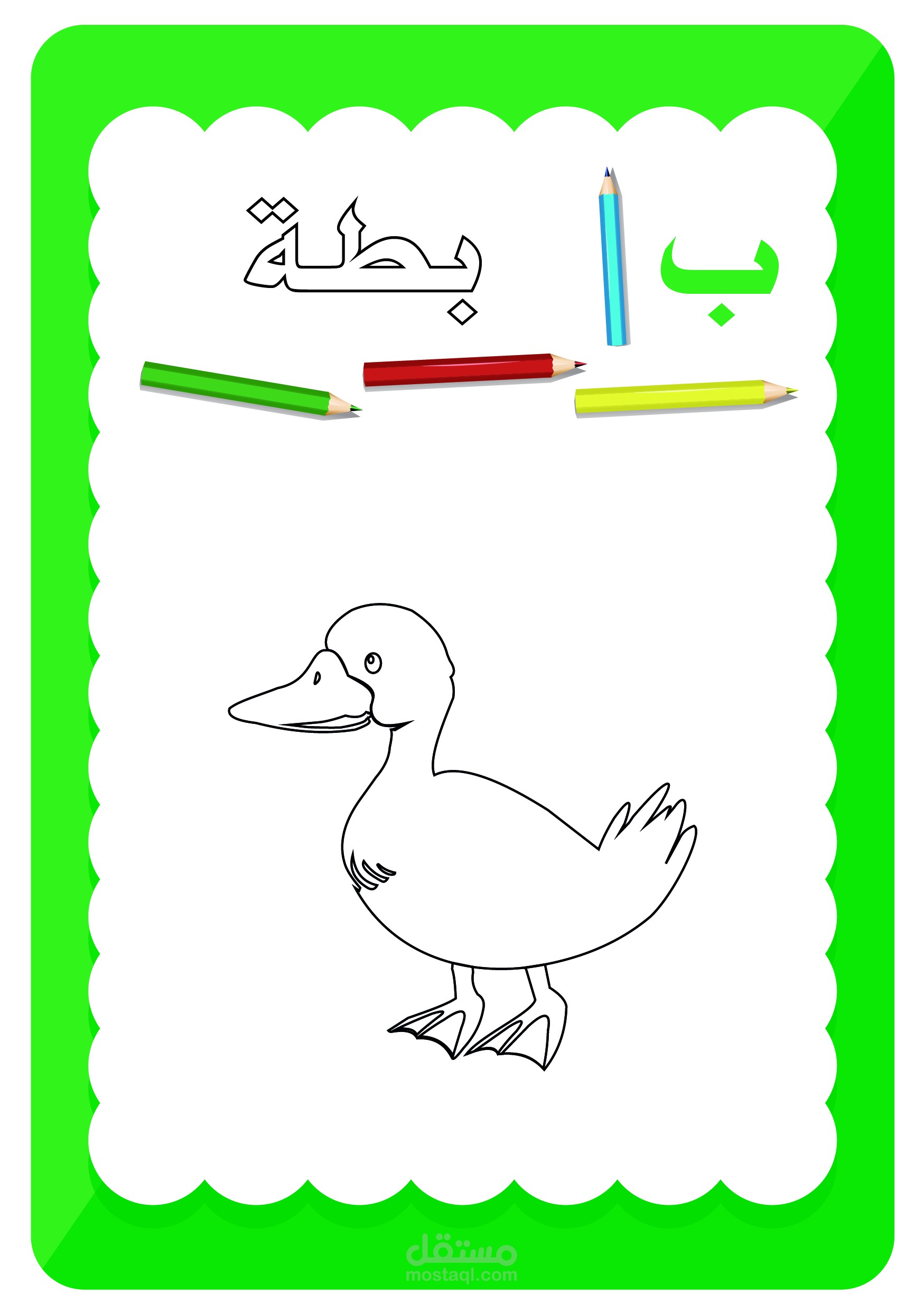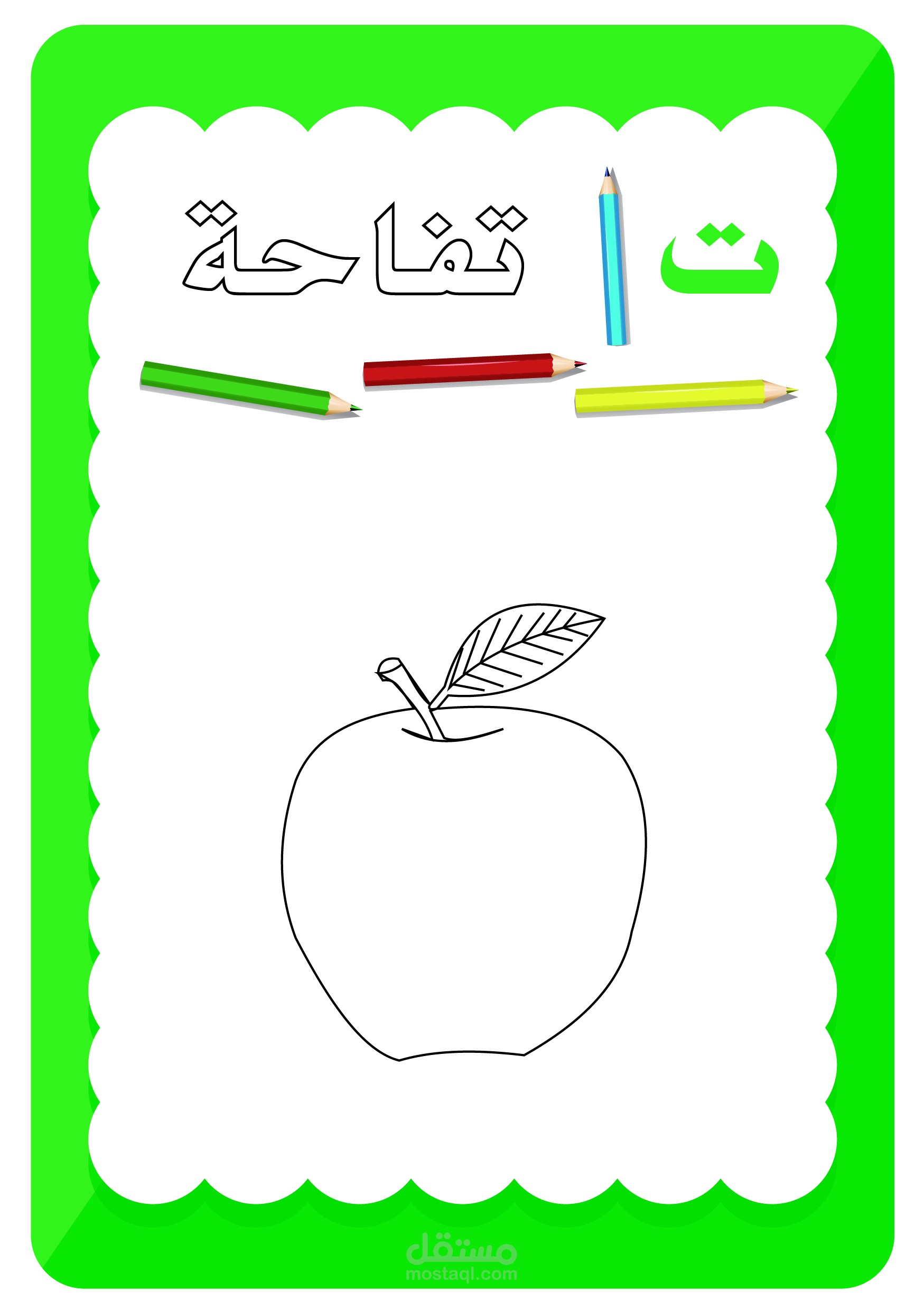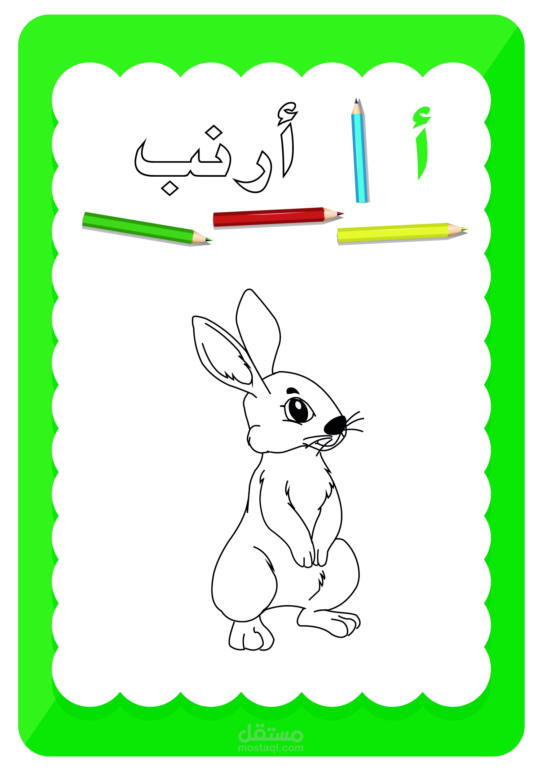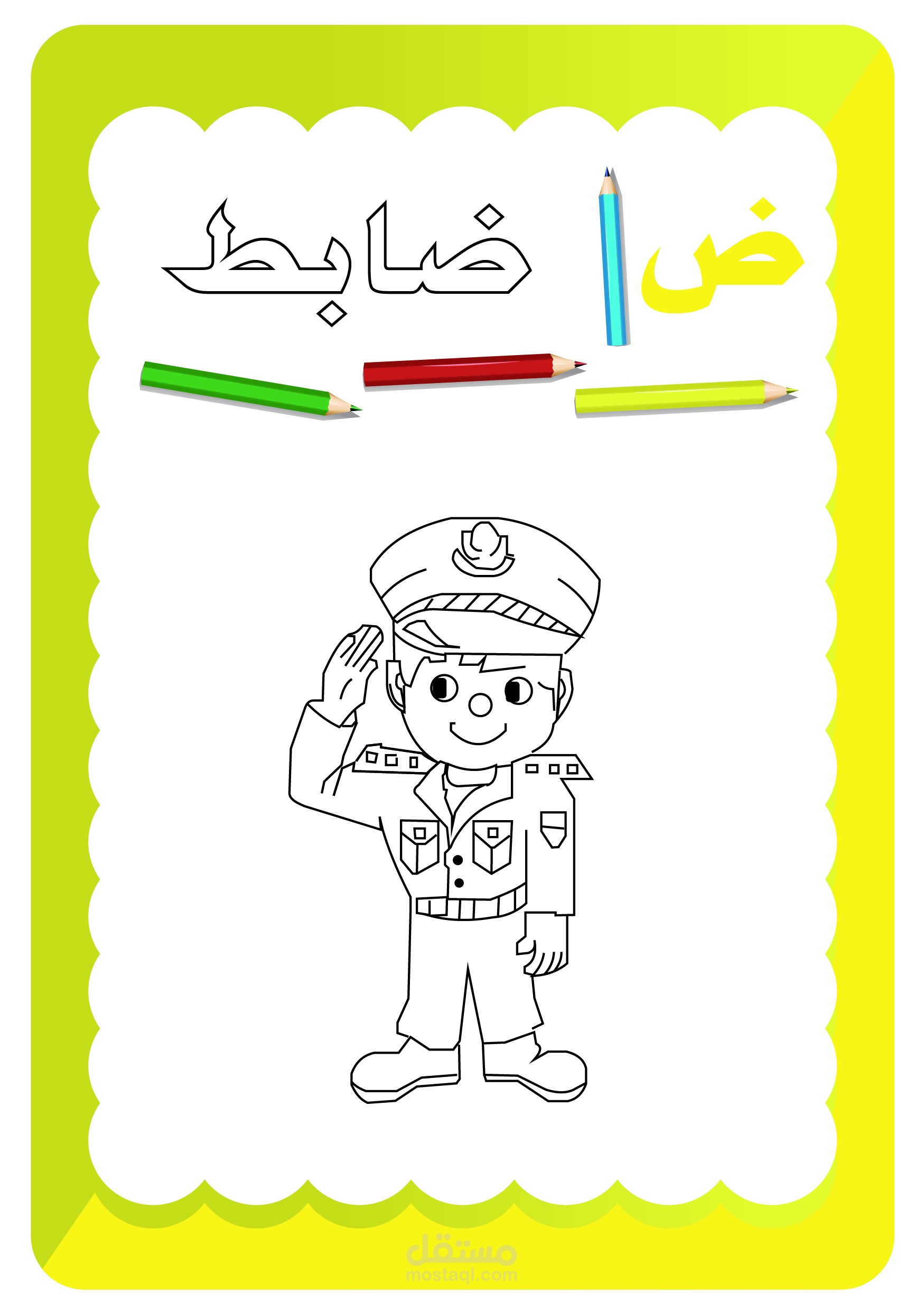 تصميم كتاب A5 تلوين للأطفال يحتوي على جميع الحروف الأبجدية باللغة العربية