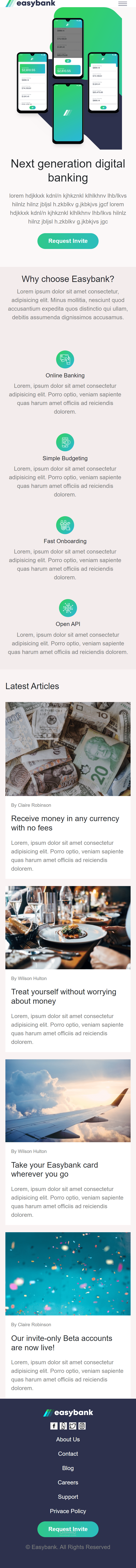 موقع يعرض خدمات بنك easybank الالكترونية والمميزات لاختيار البنك ومقالات للتعريف عن خدمات البنك وطرق التواصل، وهو تصميم متجاوب مع قياسات الحاسب والهاتف