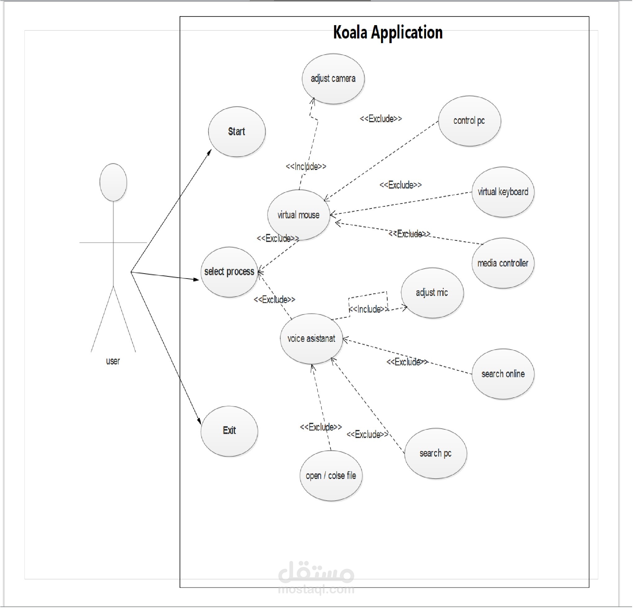 تصميم use case diagram للنظام مساعد ذكي يساعد المستخدم علي اللتحكم في جهاز الكمبيوتر خاصته من عن بعد من خلال طلب الاوامر صوتيا او من خلال الاشارات والإيماءات