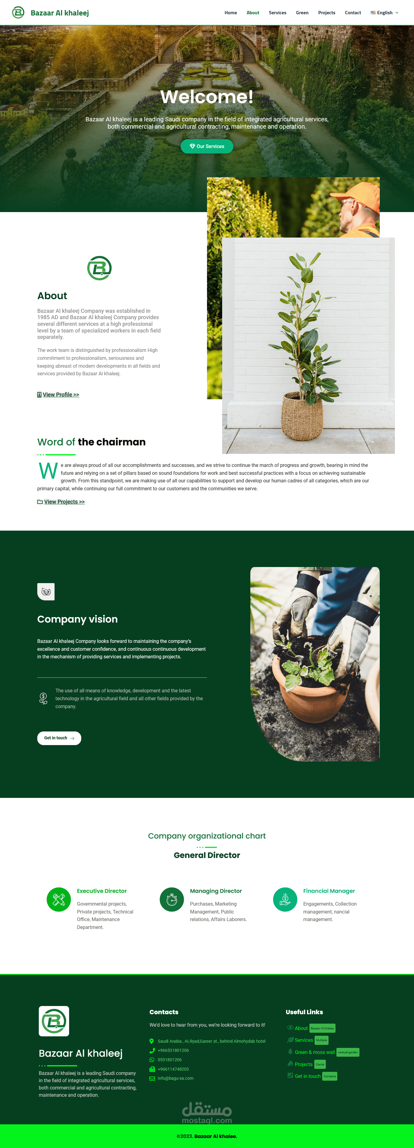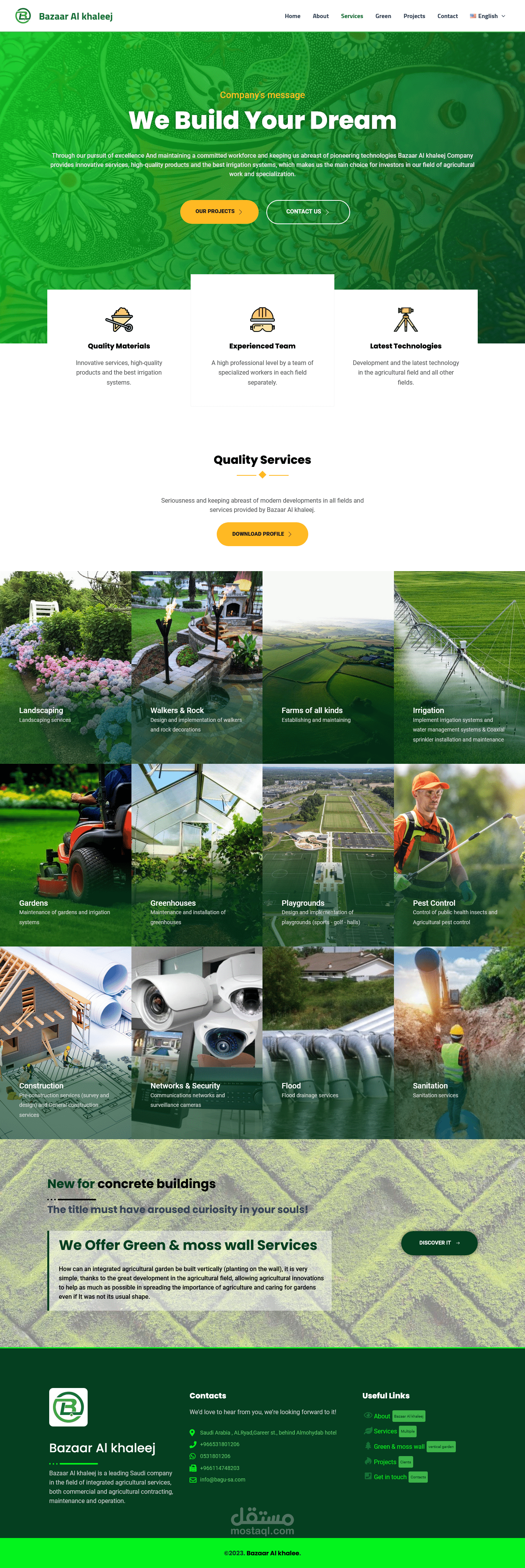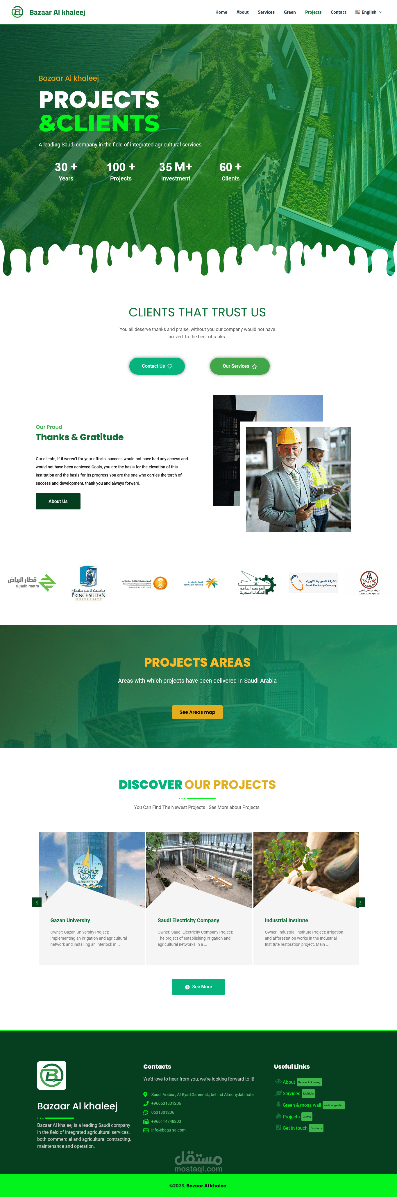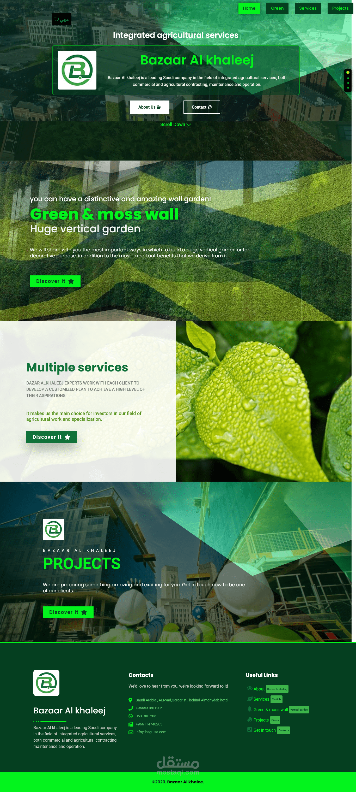 تم تصميمة بالوردبريس اضافة الاليمنتور ..موقع قابل للتعديل و اضافة المشروعات و يرسل الرسائل من خلال الموقع