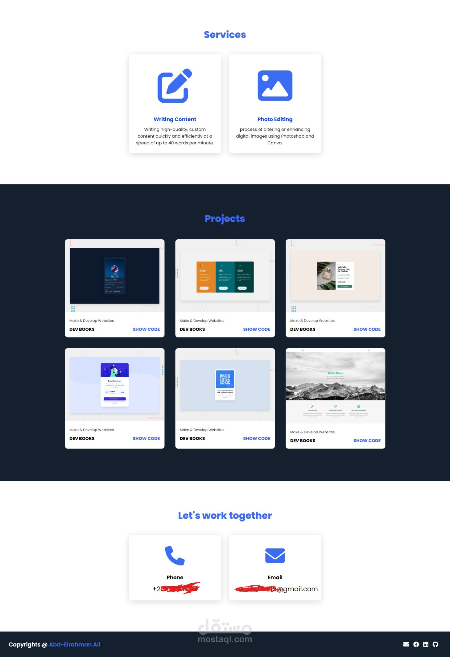 هذا هو الPortfolio الخاص بي الذي تم إنشاءه من الصفر بنفسي وحقاً بذلت مجهود رائع به،