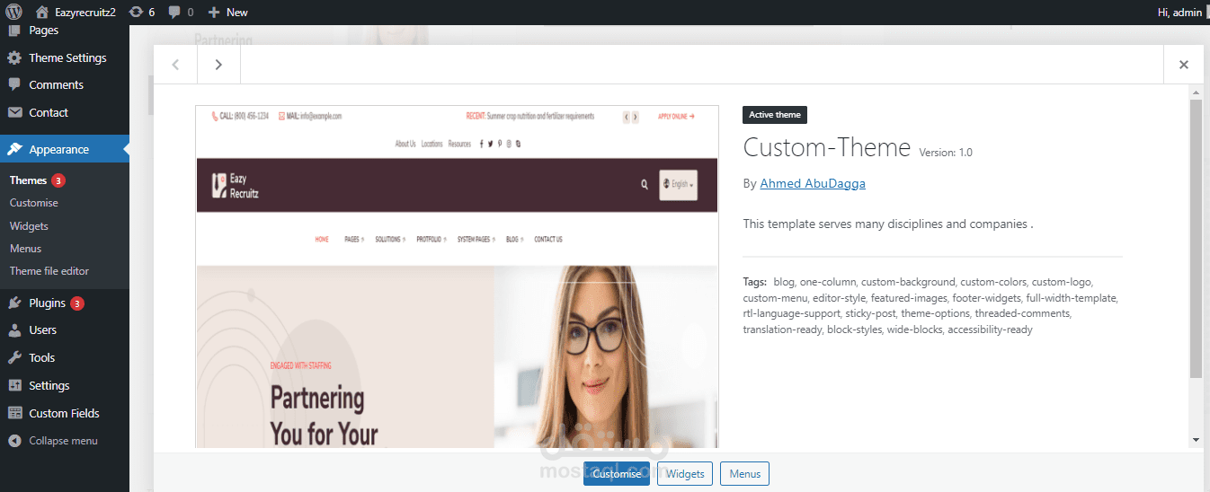 في هذا العمل تم تحويل قالب html ساكن الى قالب وورد برس ديناميكي
