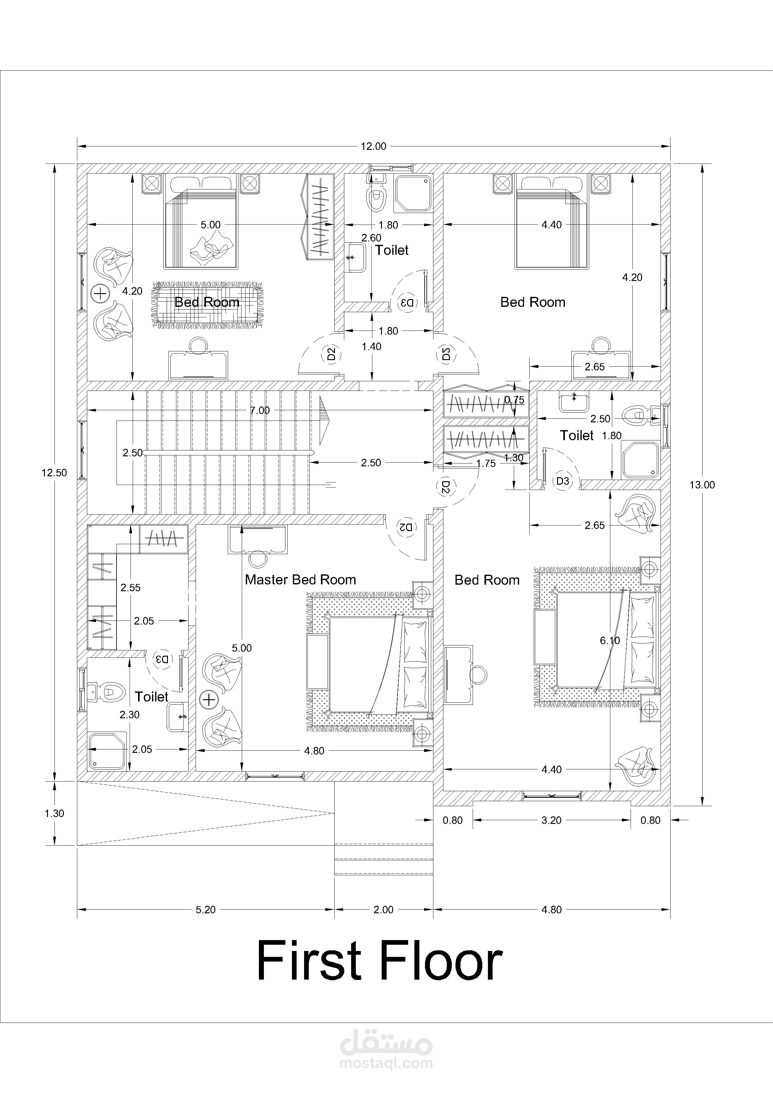 تصميم مخطط معماري لفيلا مكونة من دور ارضي و دور اول و ملحق