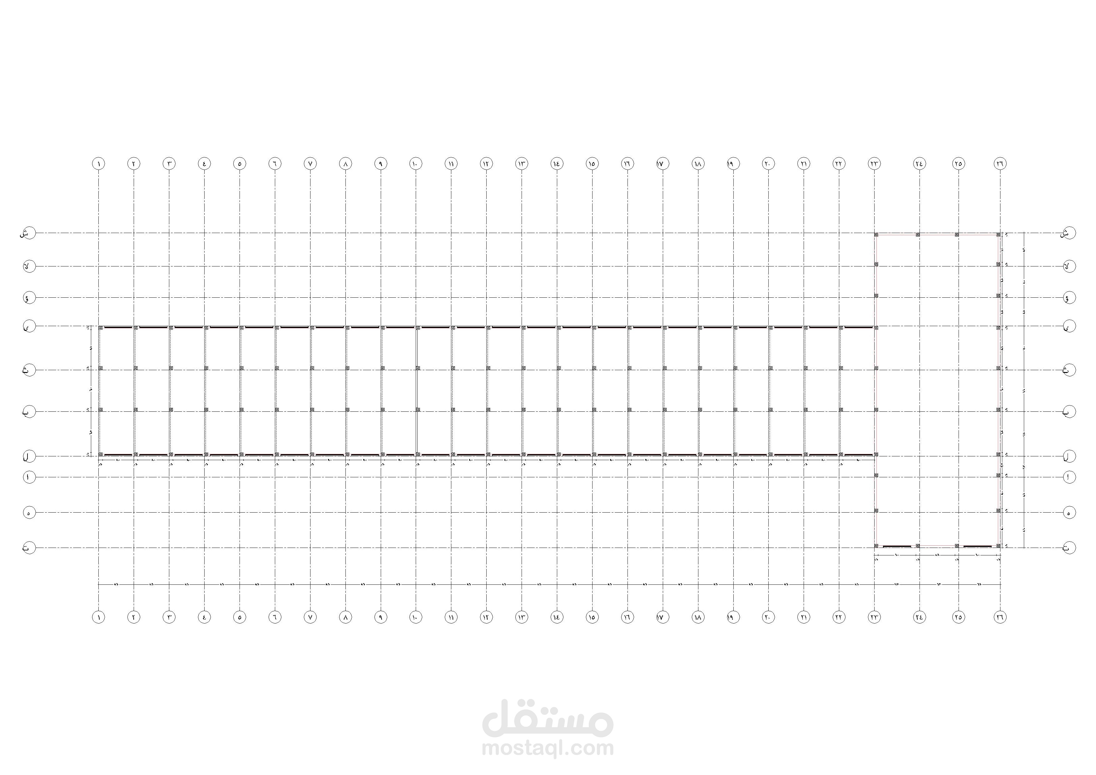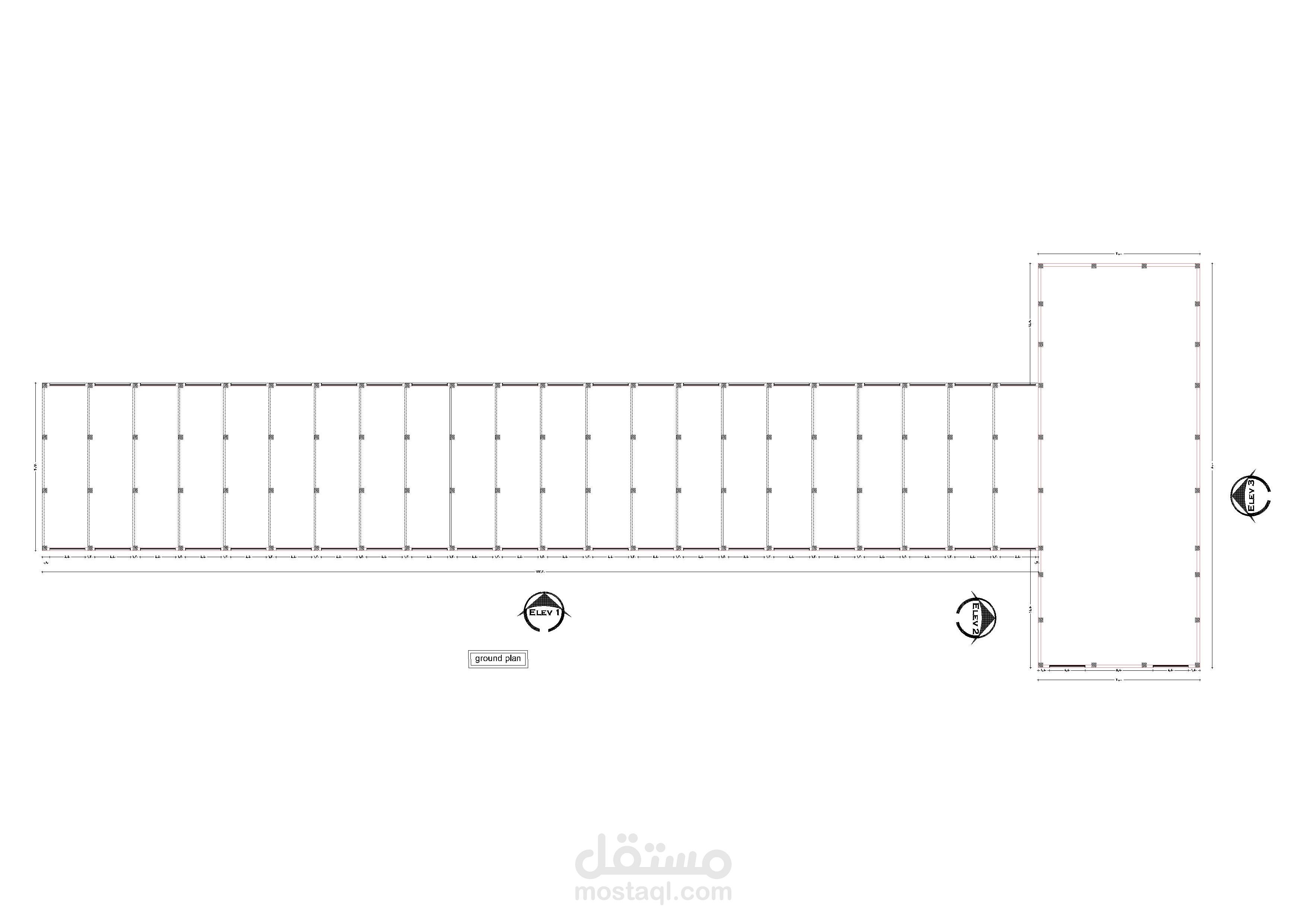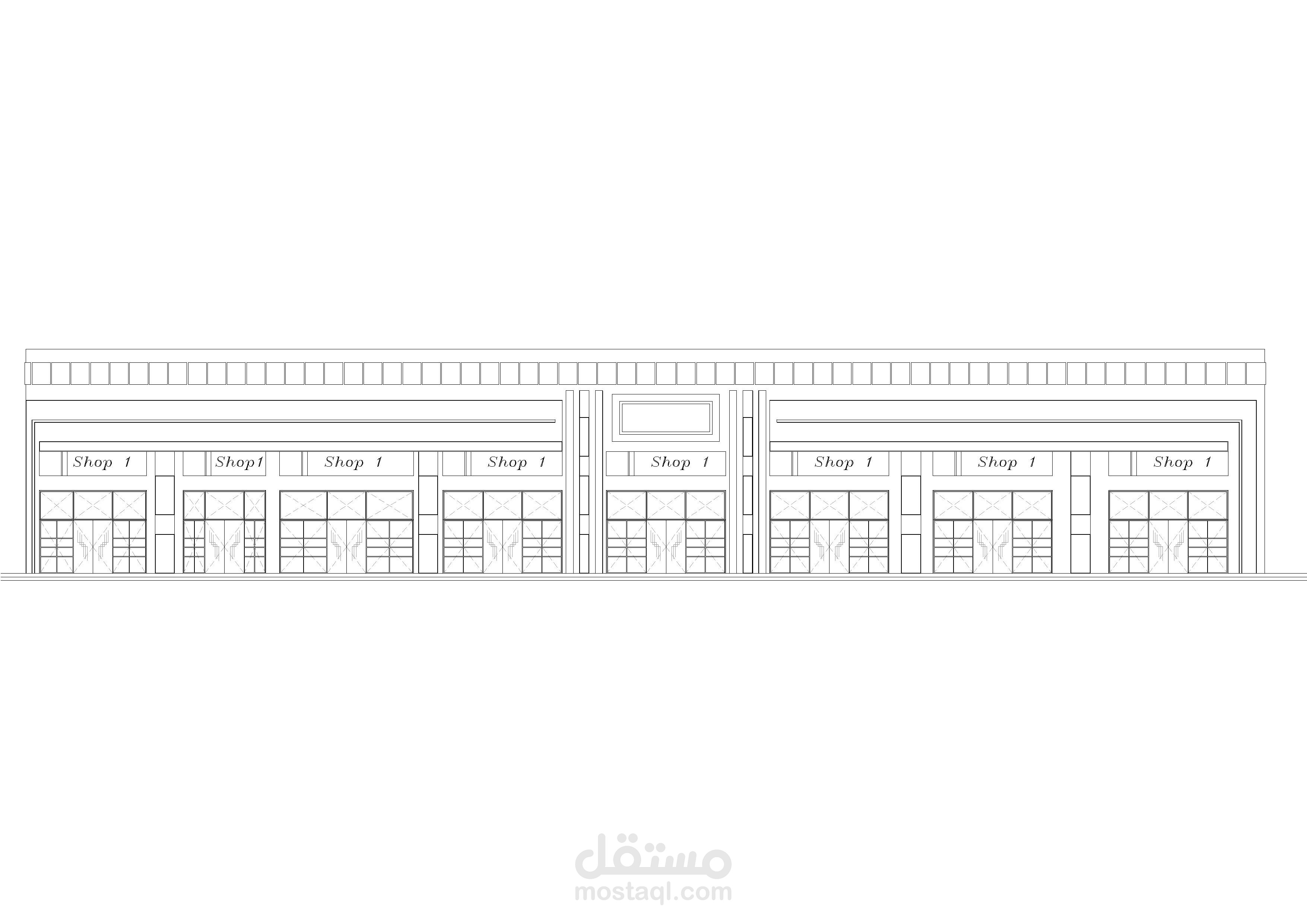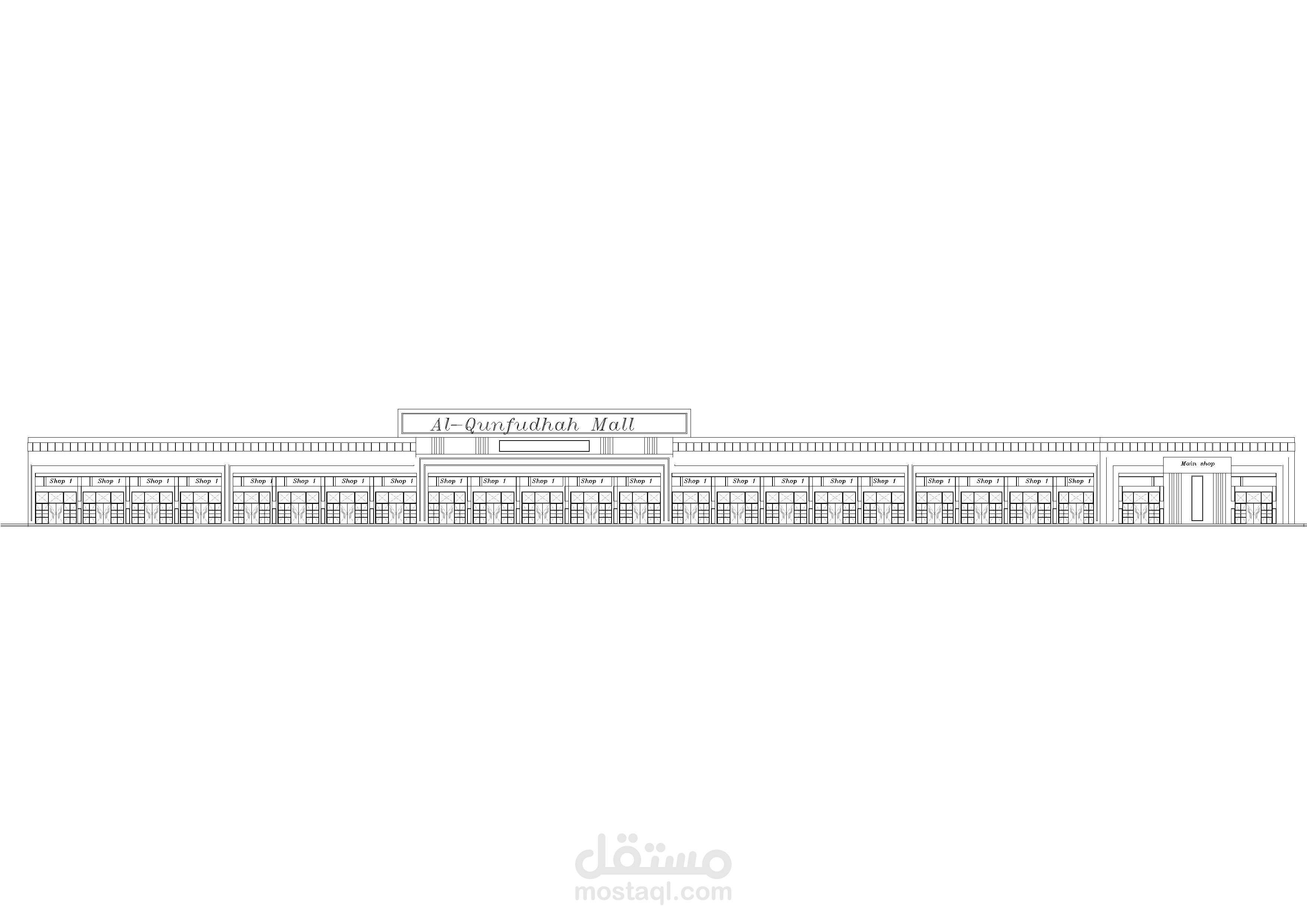 مخطط مول تجاري يتكوم من مساقط افقية و واجهات معمارية