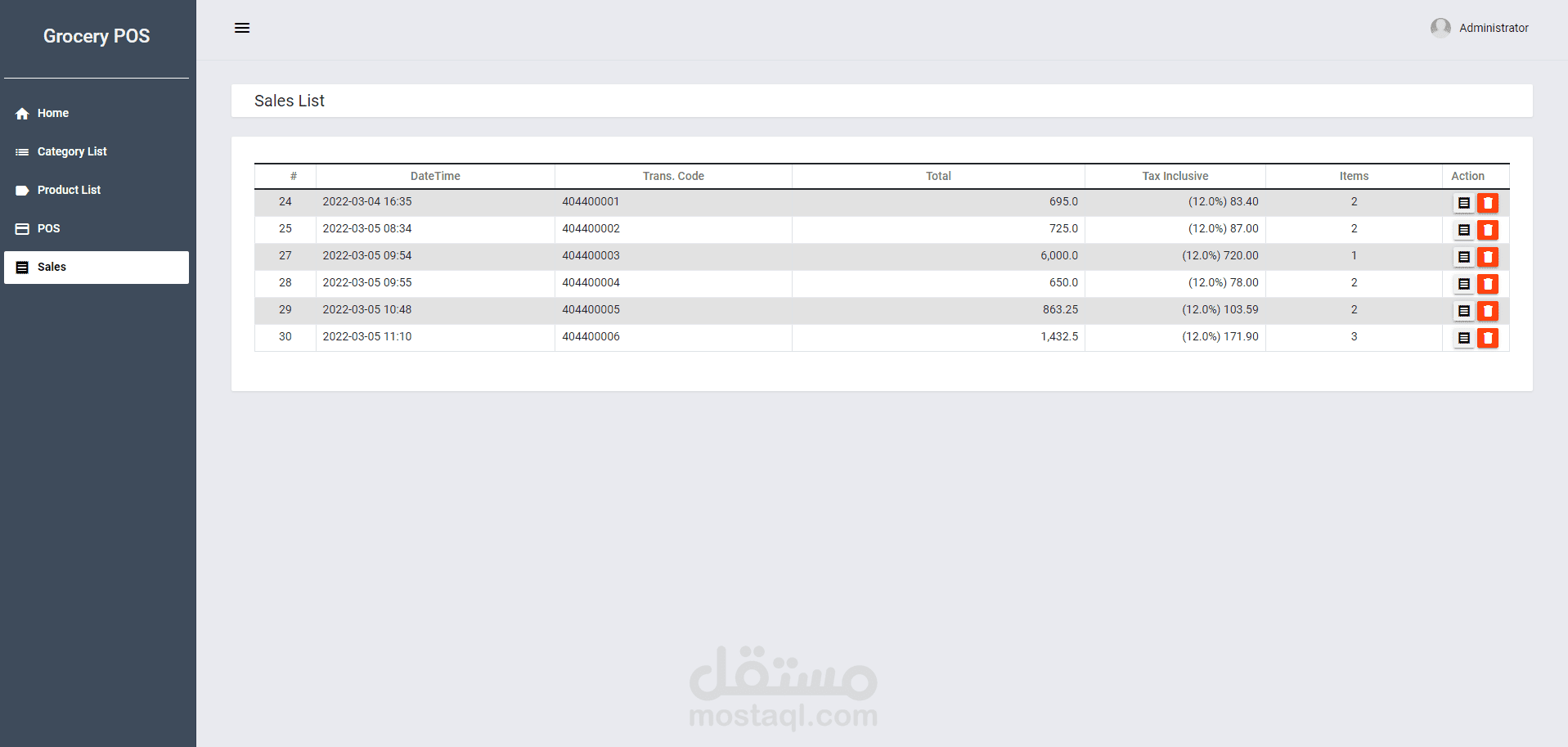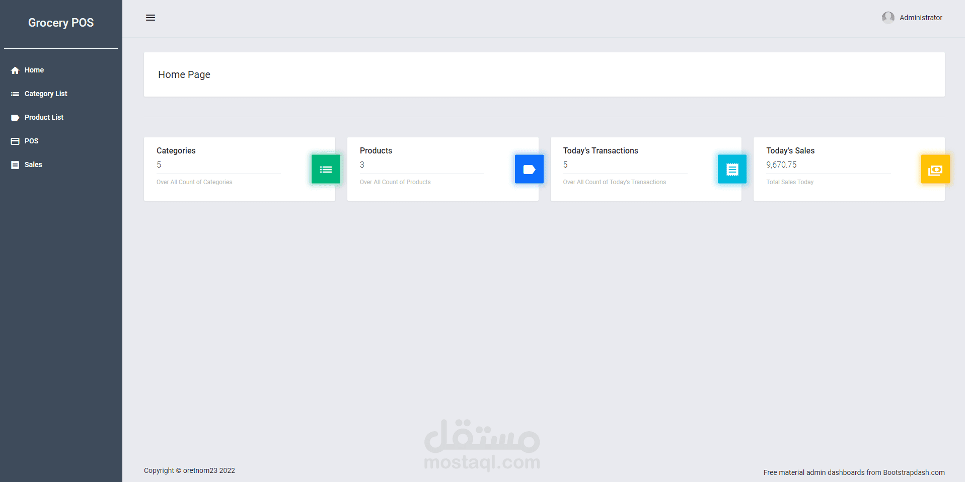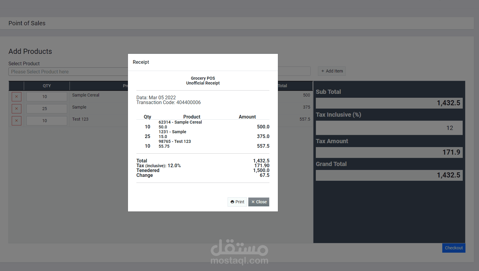 يتطلب مشروع نظام نقطة بيع البقالة هذا من مستخدمي النظام إدخال بيانات اعتماد مستخدم النظام المسجلة الخاصة بهم من أجل الوصول إلى ميزات ووظائف النظام. يمكن للمستخدمين إدارة قائمة فئات المنتجات والفئات ومعاملات المبيعات. تحتوي هذه الميزات على CRUD أو عمليات الإنشاء والقراءة والتحديث والحذف ويتم تنفيذ هذه الإجراءات باستخدام طلبات Ajax الخاصة بـ jQuery. يقوم التطبيق أيضًا بإنشاء إيصال جاهز للطباعة بتفاصيل المعاملة. سيظهر الإيصال بعد حفظ المستخدم للمعاملة ويمكنه أيضًا إعادة طباعة الإيصال في صفحة قائمة المبيعات. يقوم النظام بإنشاء رمز معاملة تلقائيًا عند حفظ السجل. يعرض النظام أيضًا الملخص أو إجمالي عدد البيانات في الصفحة الرئيسية / صفحة لوحة المعلومات. تحتوي الصفحة المذكورة أيضًا على إجمالي المعاملات في التاريخ الحالي وإجمالي المعاملات.