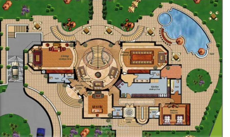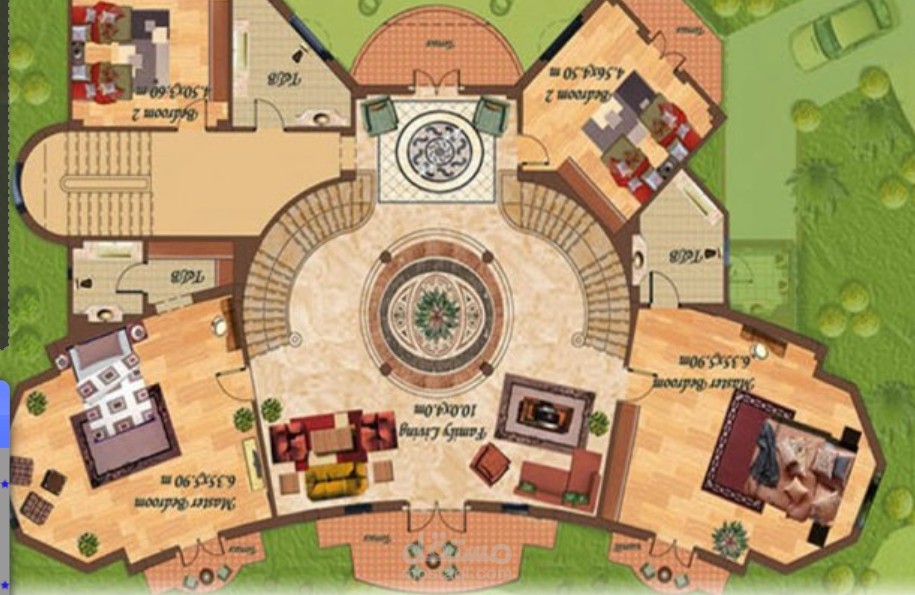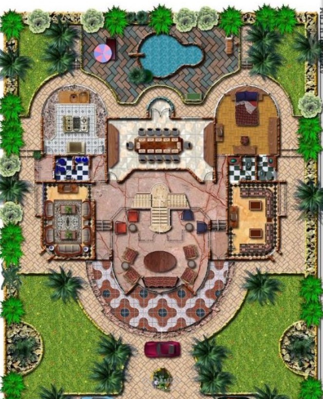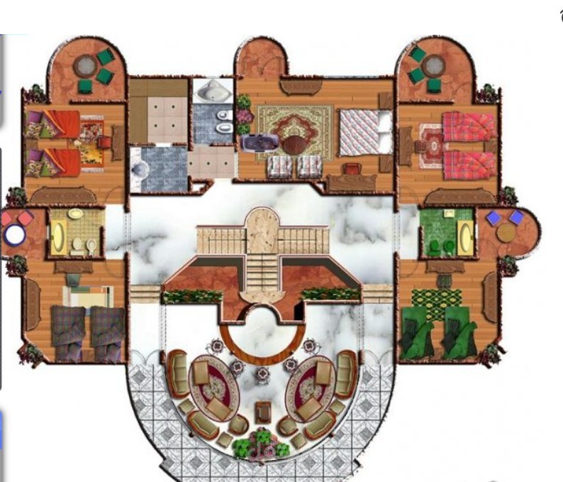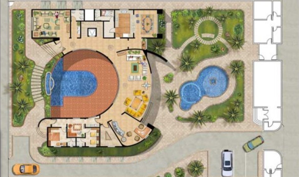 نماذج مختارة لتصميمات معمارية لفيلات ، بافكار متنوعة . مساقط أفقية بالفرش المقترح ملون فوتوشوب .