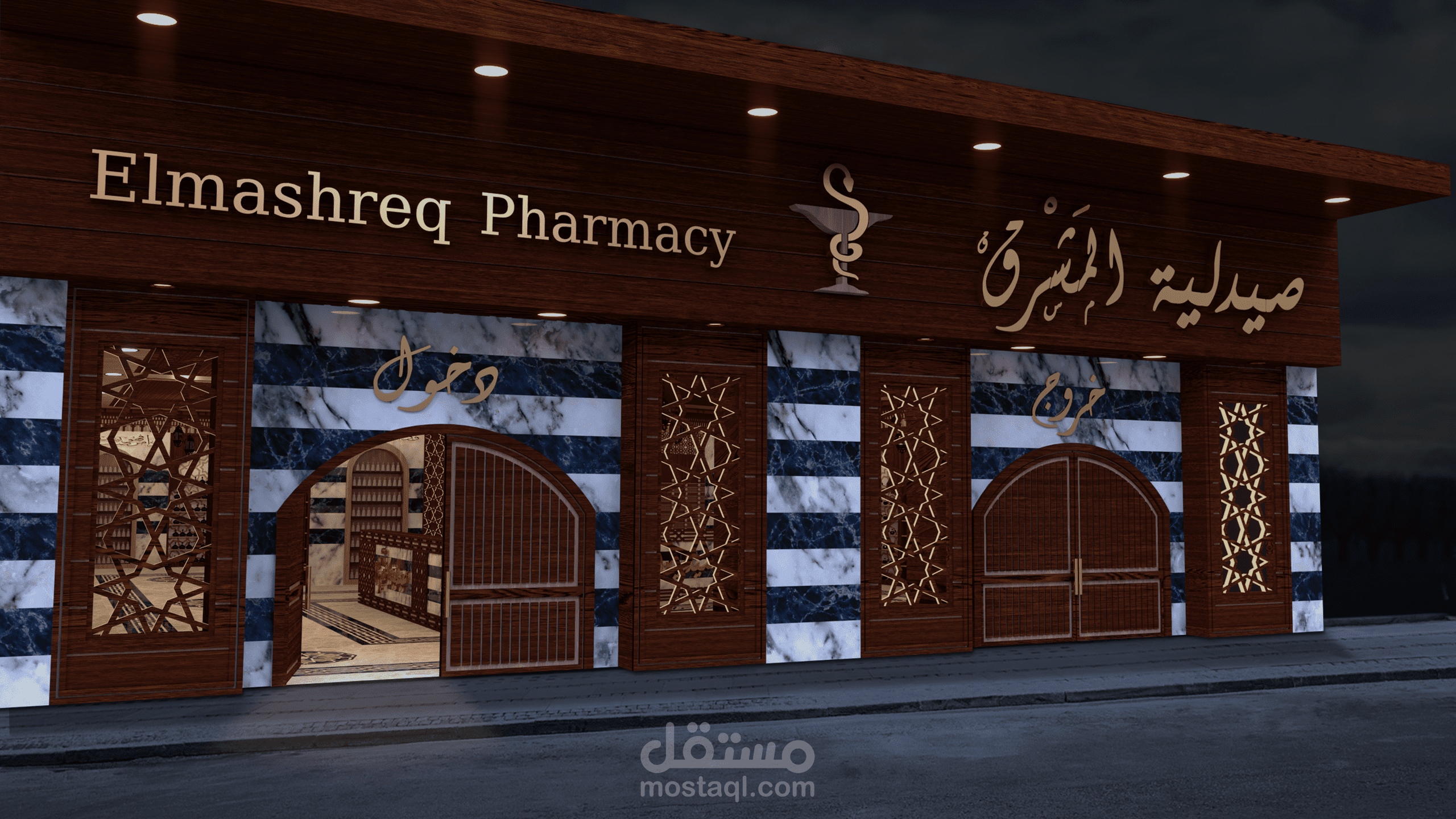 تصميم لواجهة صيدلية علي الطراز الاسلامي الشامي