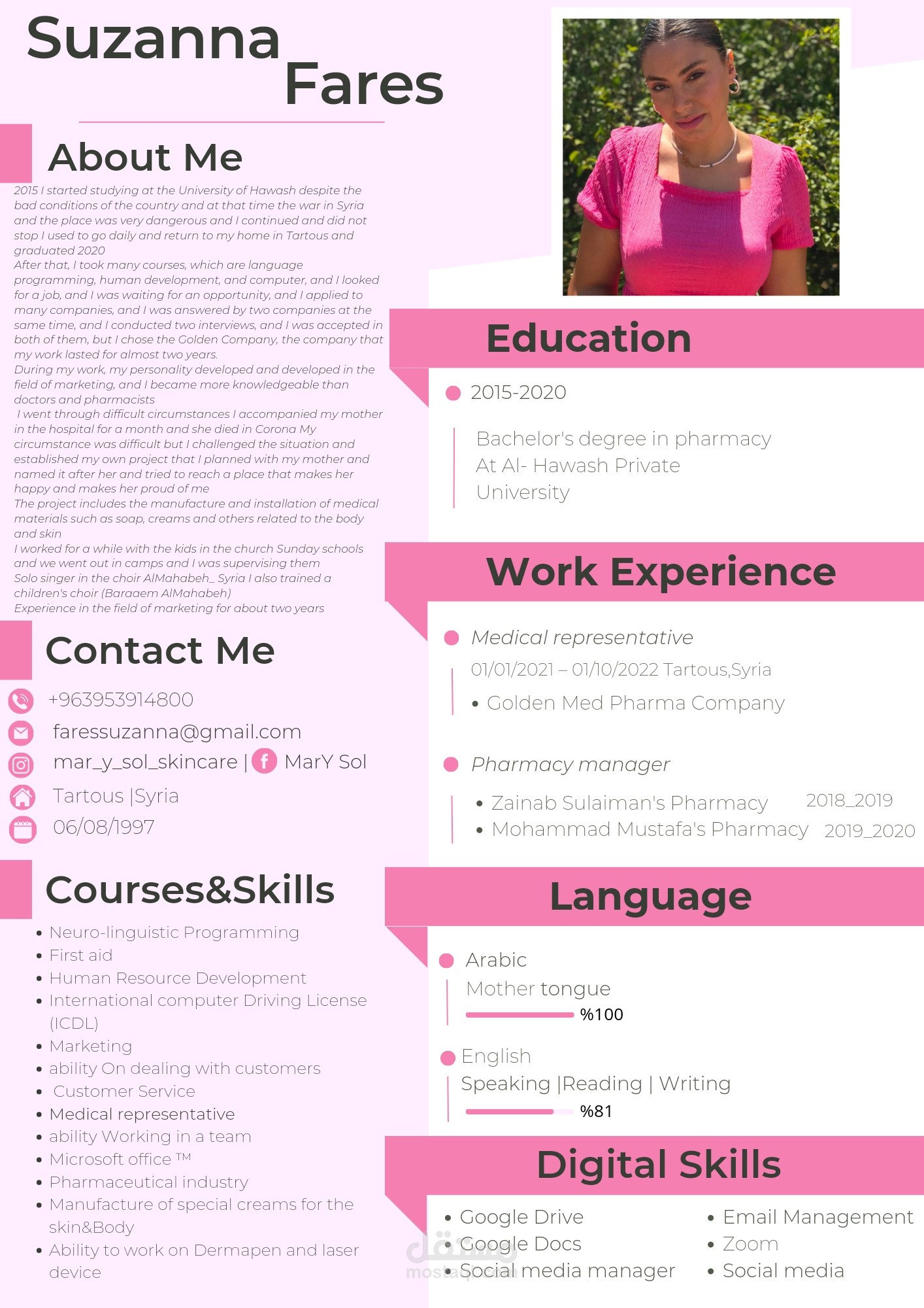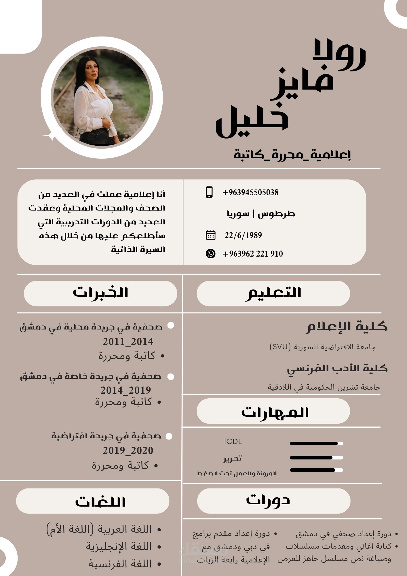 السيرة الذاتية هي صورتك أمام الشركات أو جهة عمل تريد التقدم إليهاو التي تتمنى أن توظف فيها لذلك أقدم لك تصميمات احترافية للسيرة الذاتية تتيح لك الموافقة على الوظيفة التي تحلم بها باللغات التالية: