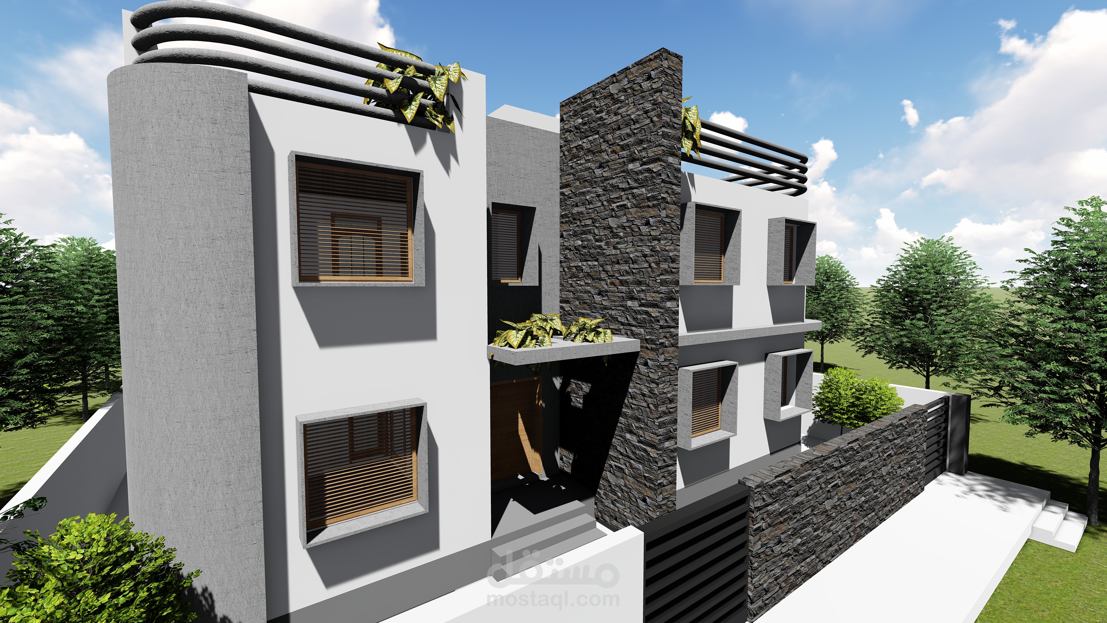 تصميم مباني سكنيه وتصميم الواجهات واختيار المواد وإظهارها وتنسيق الرسومات المعماريه والرموز التوضيحيه