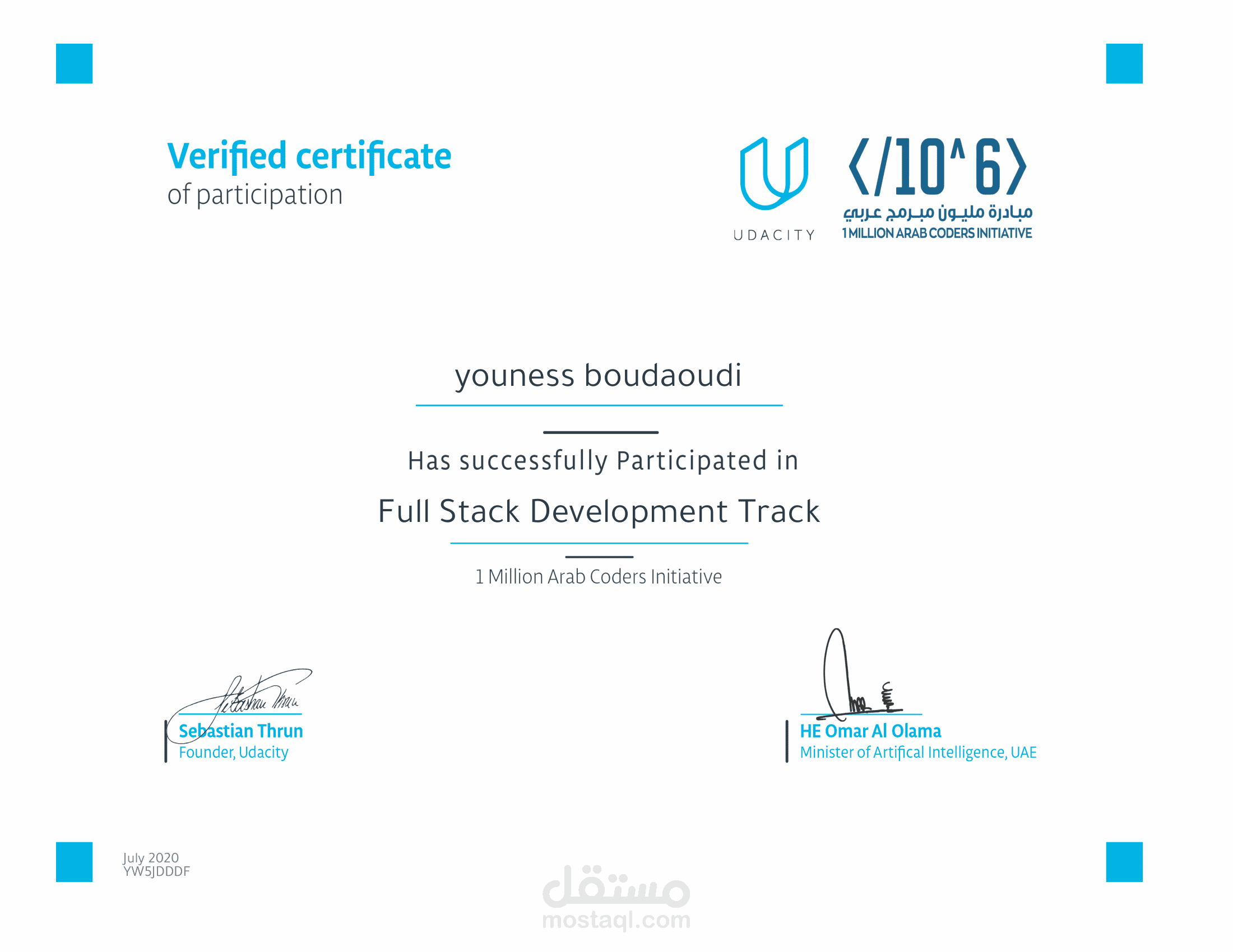 شهادة مقدمة من One Million Arab Coders & udacity