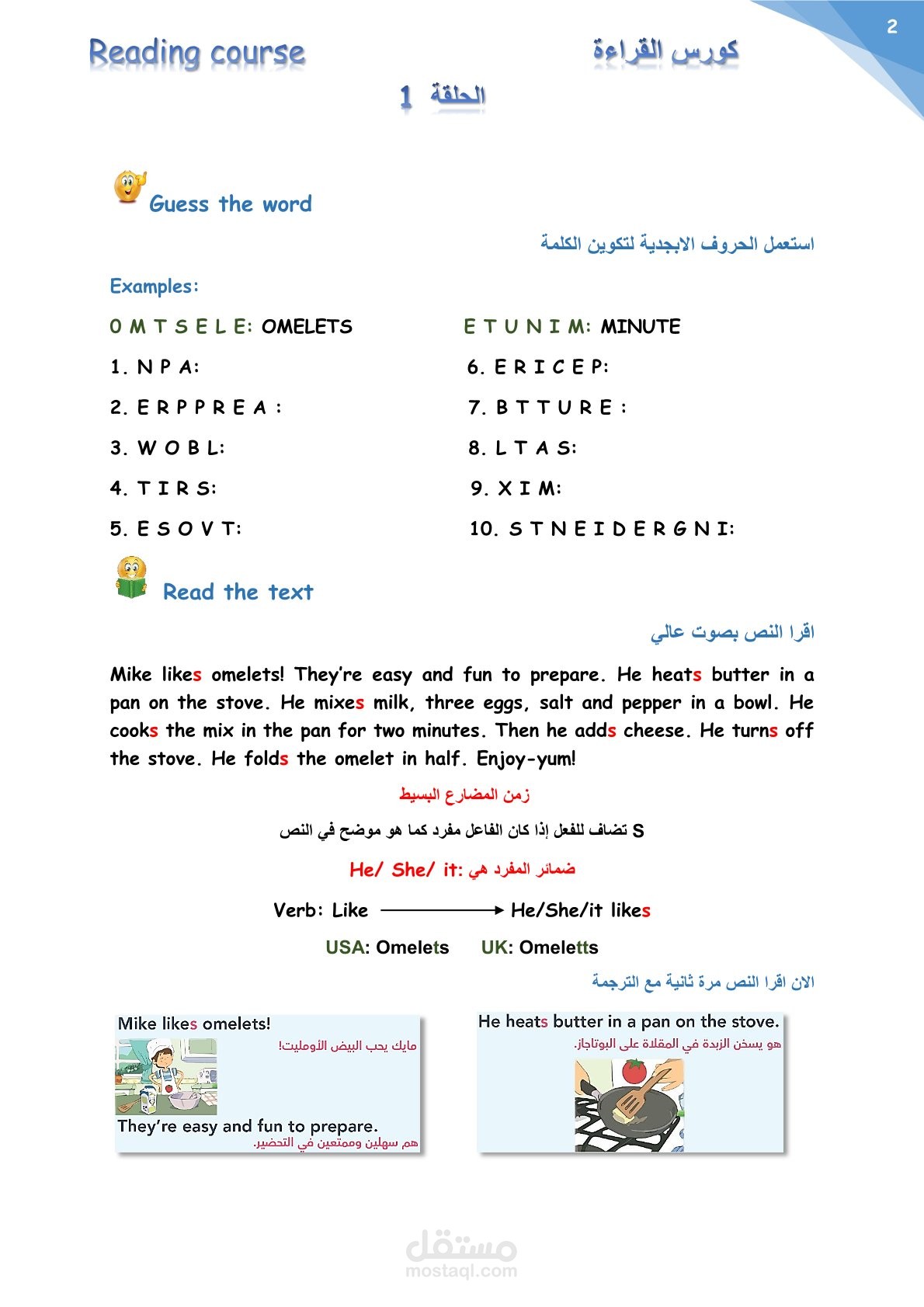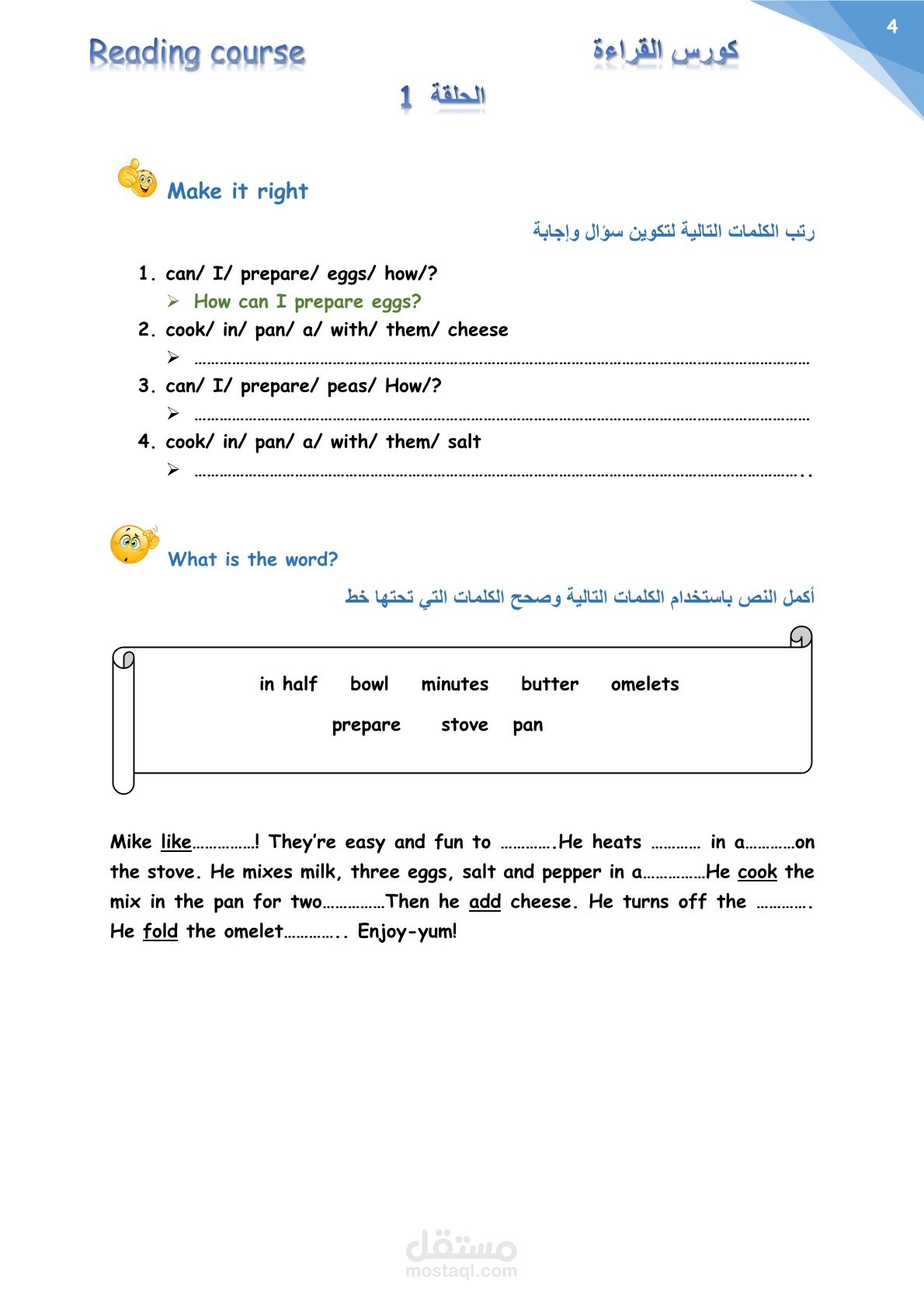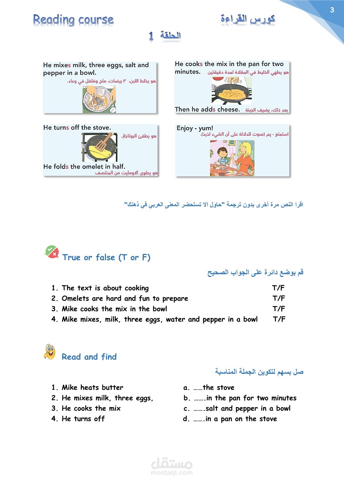 كتابة و تنسيق ملخصات كورس القراءة المستوى الأول