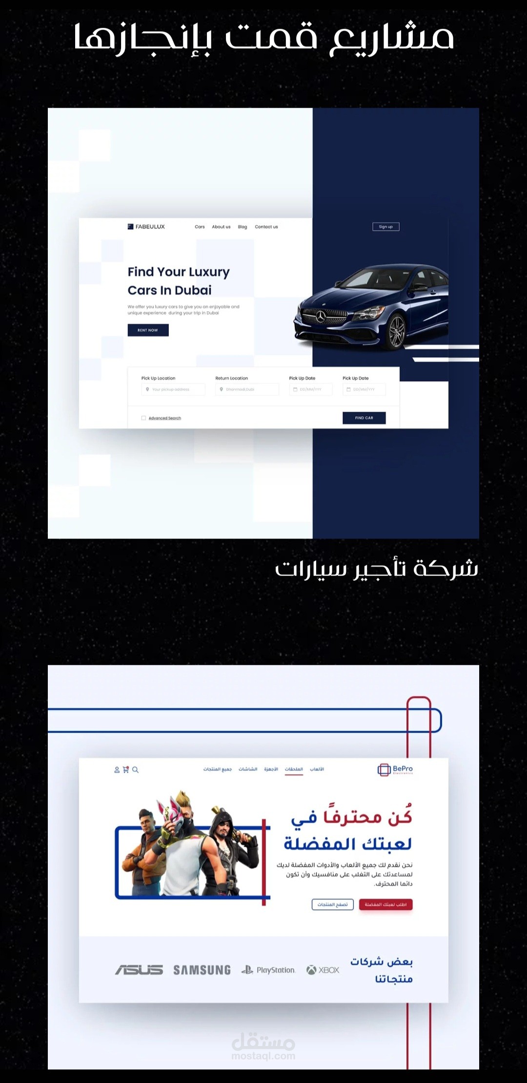 تم تصميم الموقع على منصة ووردبريس بإستخدام إضافة Elementor بنظام CMS لعرض المشاريع بشكل ديناميكي