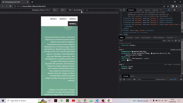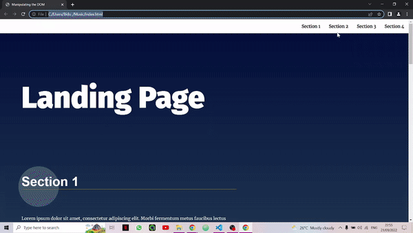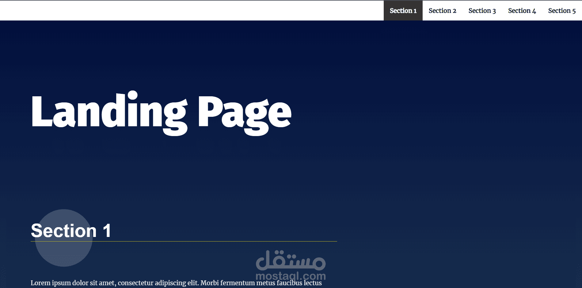 landing page باستخدام html css javaScript و بأستخدام DOM manipulation لعمل navigation bar و auto scrolling لل section
