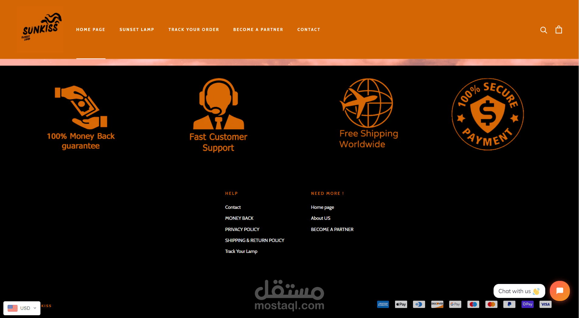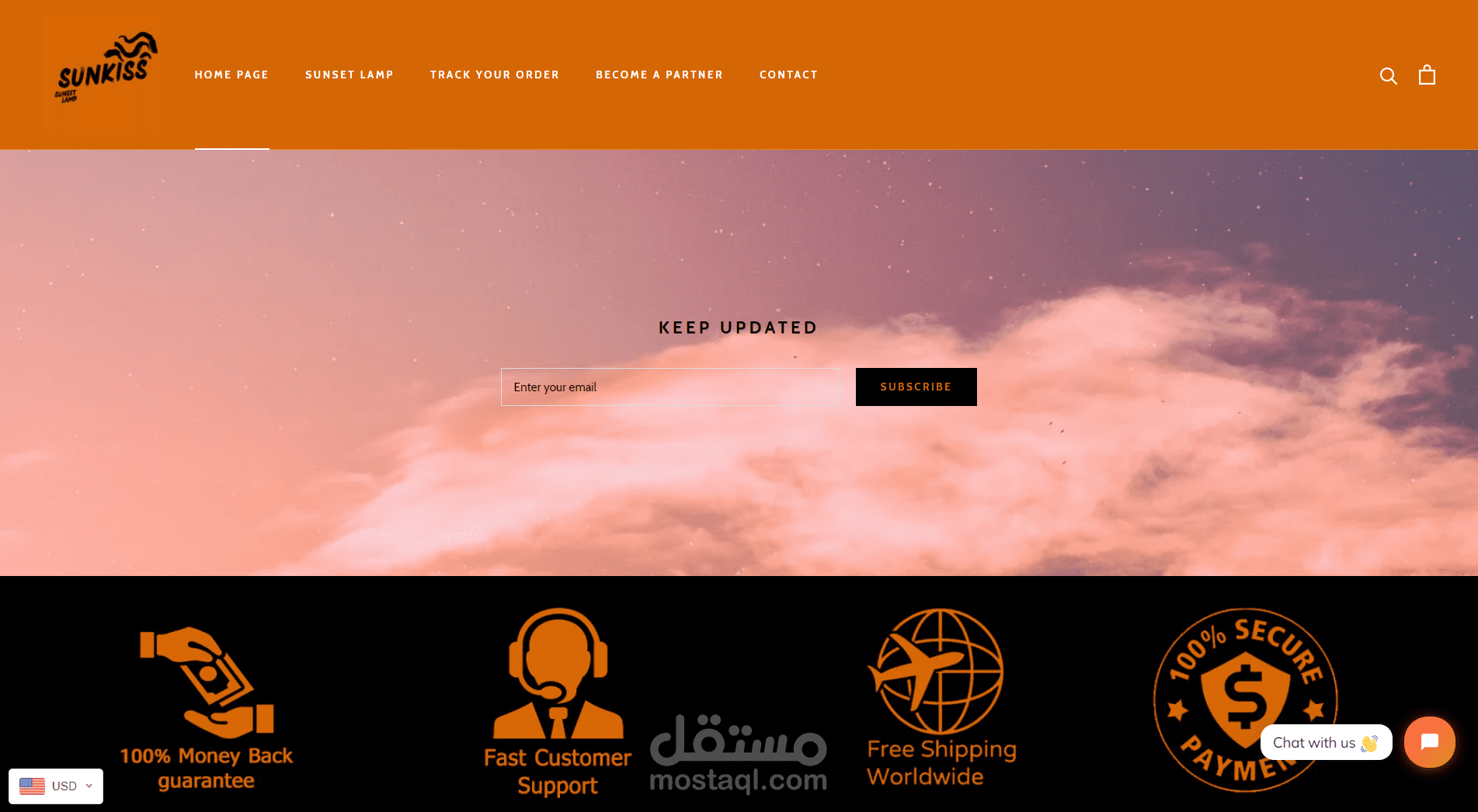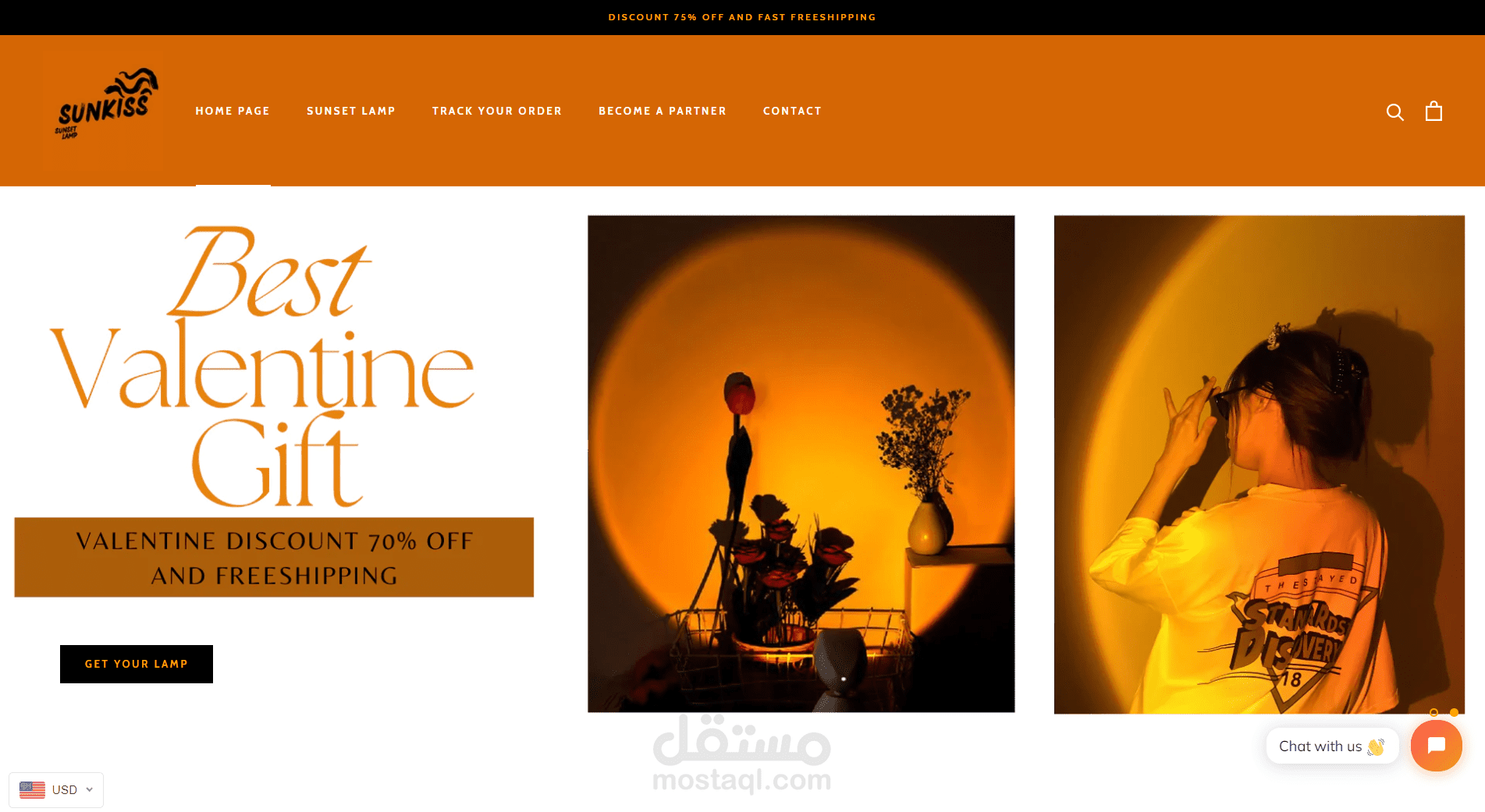 براند SunKiss بيبيع منتج ديكور للبيوت اسمه " sunset lamp " اتواصل معايا صاحبه عن طريق موقع فريلانس تاني و طلب مني اعمله متجر علي Shopify و كان طالب مني اعمله عن طريق Theme مجاني لكن انا اقترحت عليه نستخدم واحد موفوع و انه معايا و ان دا مش هيزيد من تكلفه المشروع نهائي و فعلا بدانا شغل و خلصت الستور فخلال يومين بكل تفاصيله و صاحب الستور كان مبسوط منه جدا و فخلال اسبوعين من الدعايا بدا في تحقيق الارباح عن طريق المتجر و بعتلي صوره الارباح بتاعته فتاني اسبوع فلو حابب تعيش نفس التجربه معاايا تقدر تتواصل معايا و نتفق علي كل التفاصيل و اتاكد انك هتكون مبسوط جدا من التعامل معايا