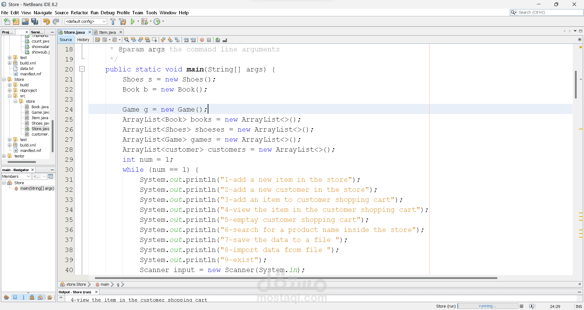 هذا المشروع عبارة عن قاعدة بيانات لجميع المتجات الموجودة داخل المتجر حيث يتم تخزين المنتجات حسب انواعها في البرنامج وهناك عدة عمليات مبرمجة يتم تطبيقها على المتجات من بحث و عرض وحفظ في ملف معين خارجي