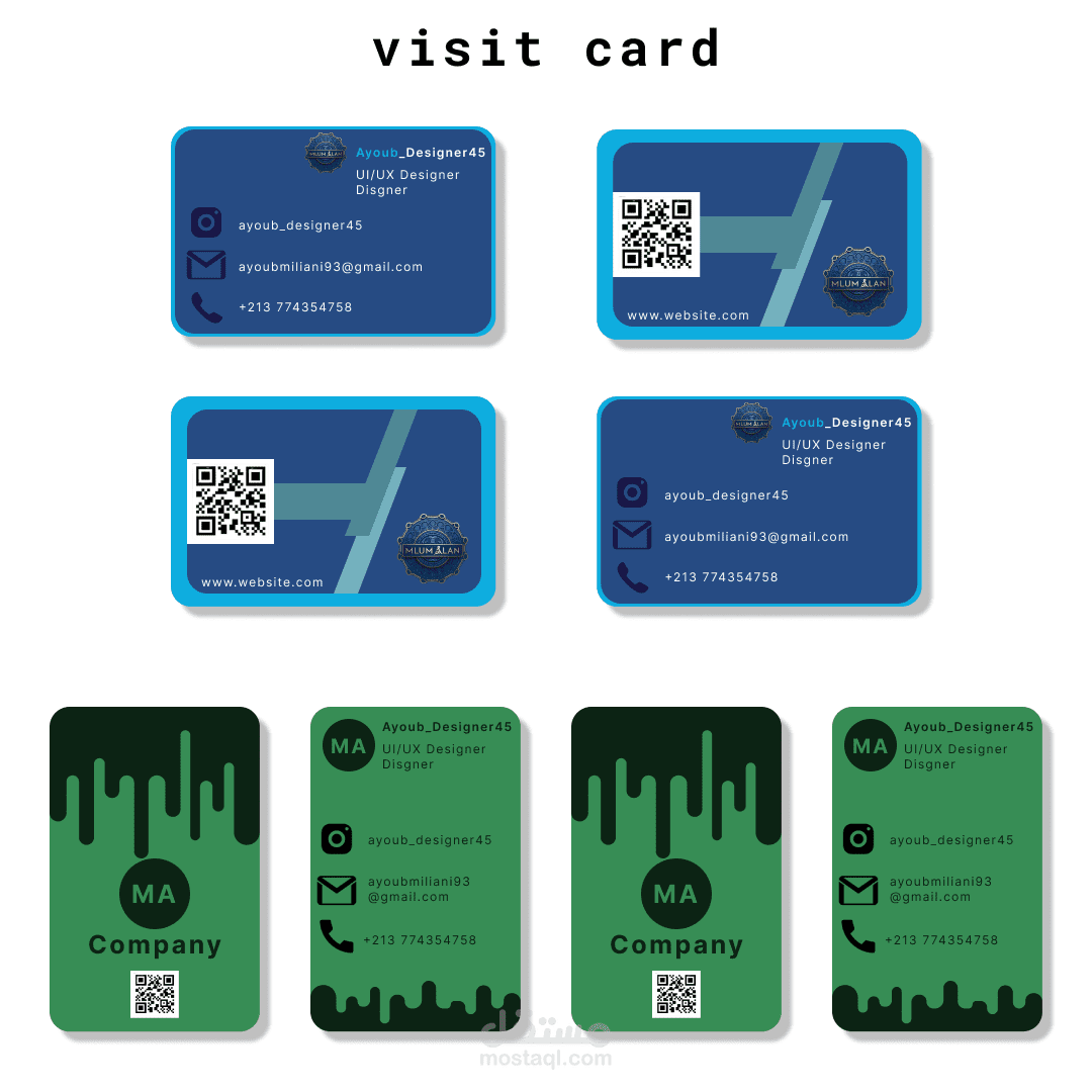 العمل عبارة عن نوعين من بطاقة الزيارة.