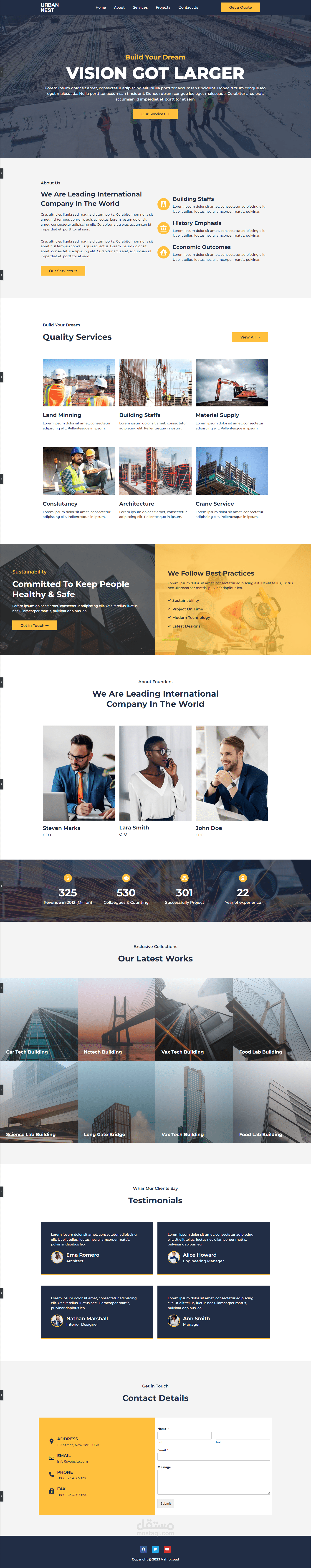 تم إنشاء موقع لشركة بناء باستخدام ووردبريس وباني الصفحات Elementor .