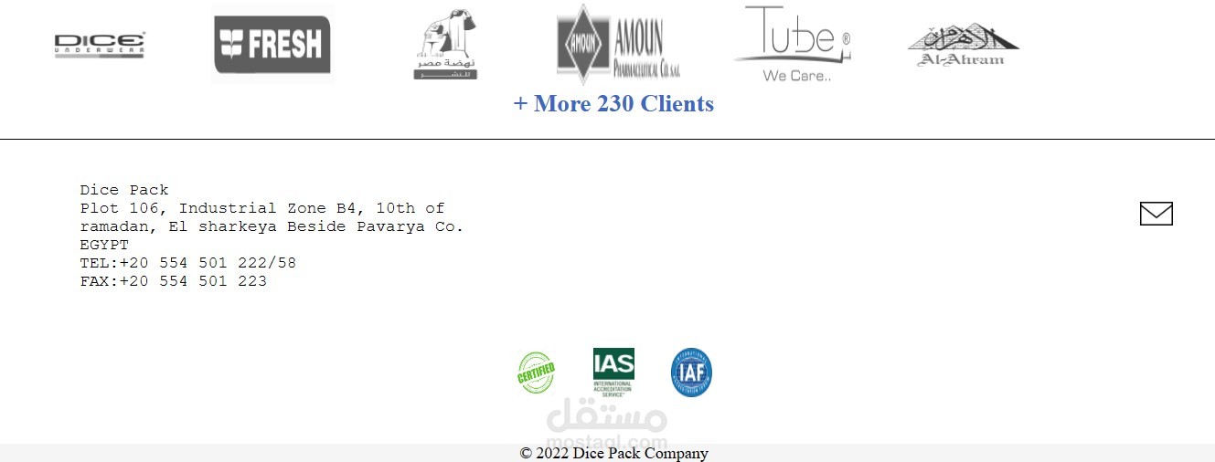 موقع لشركة تغليف باللغتين العربية والانجليزية .