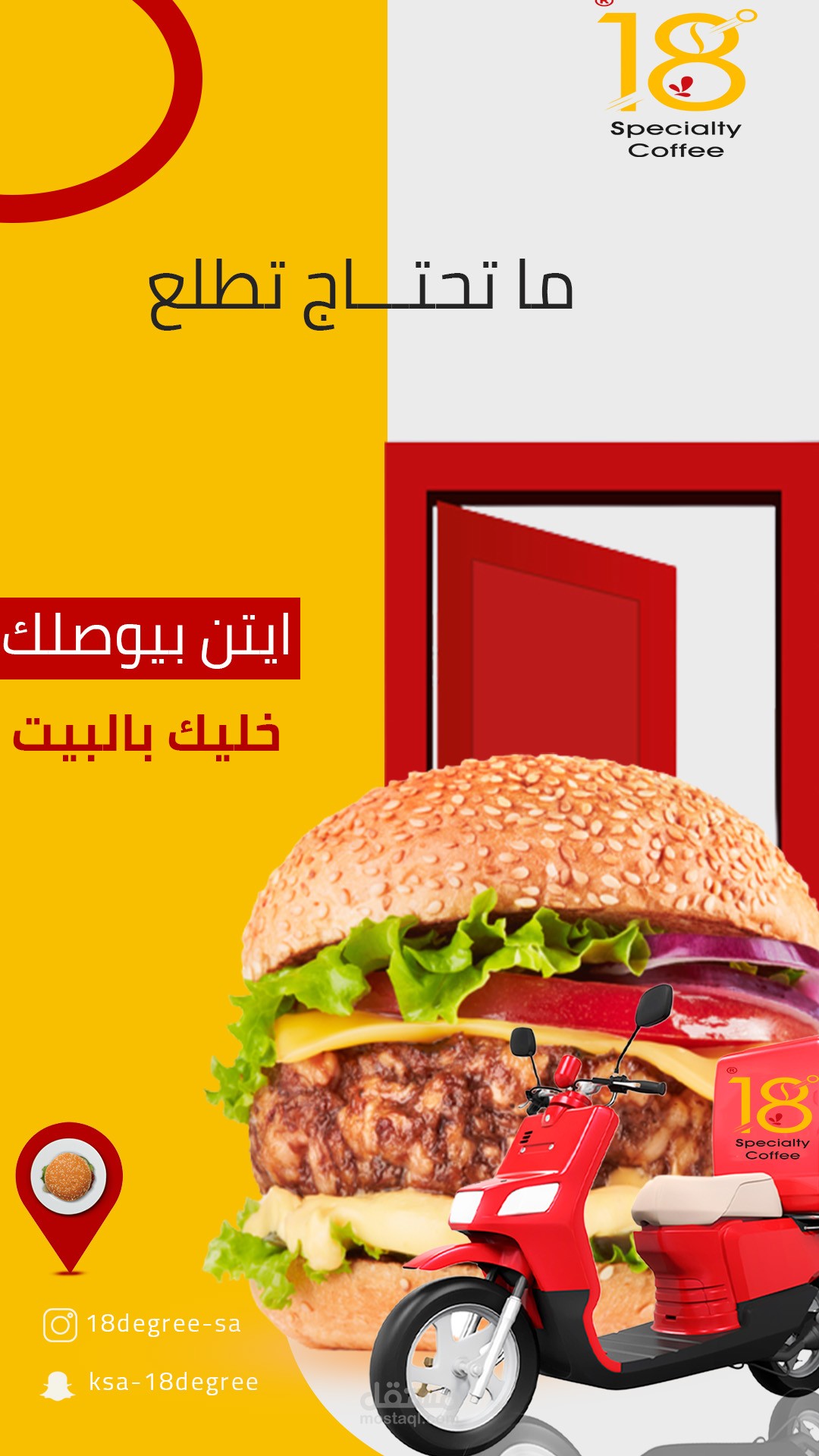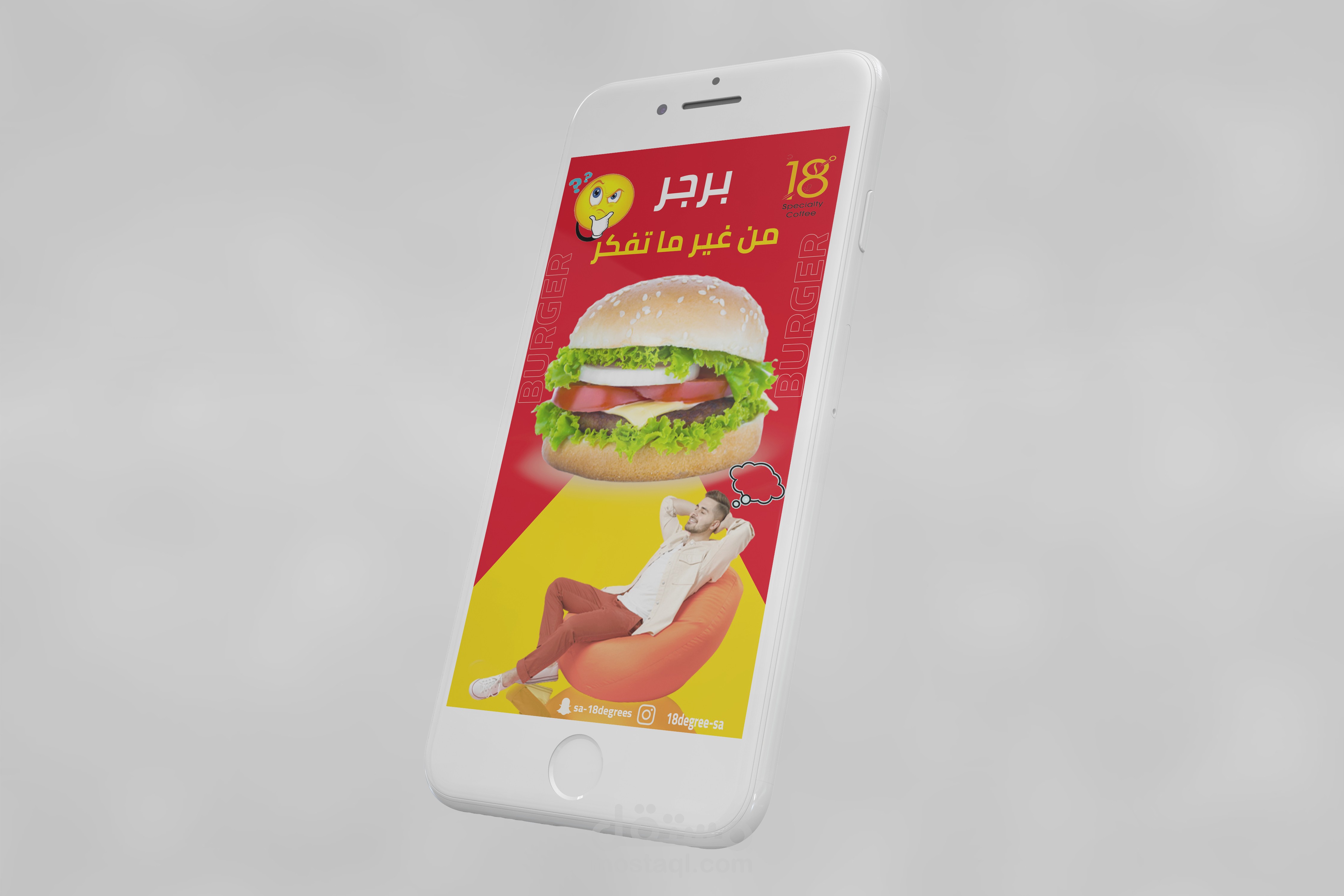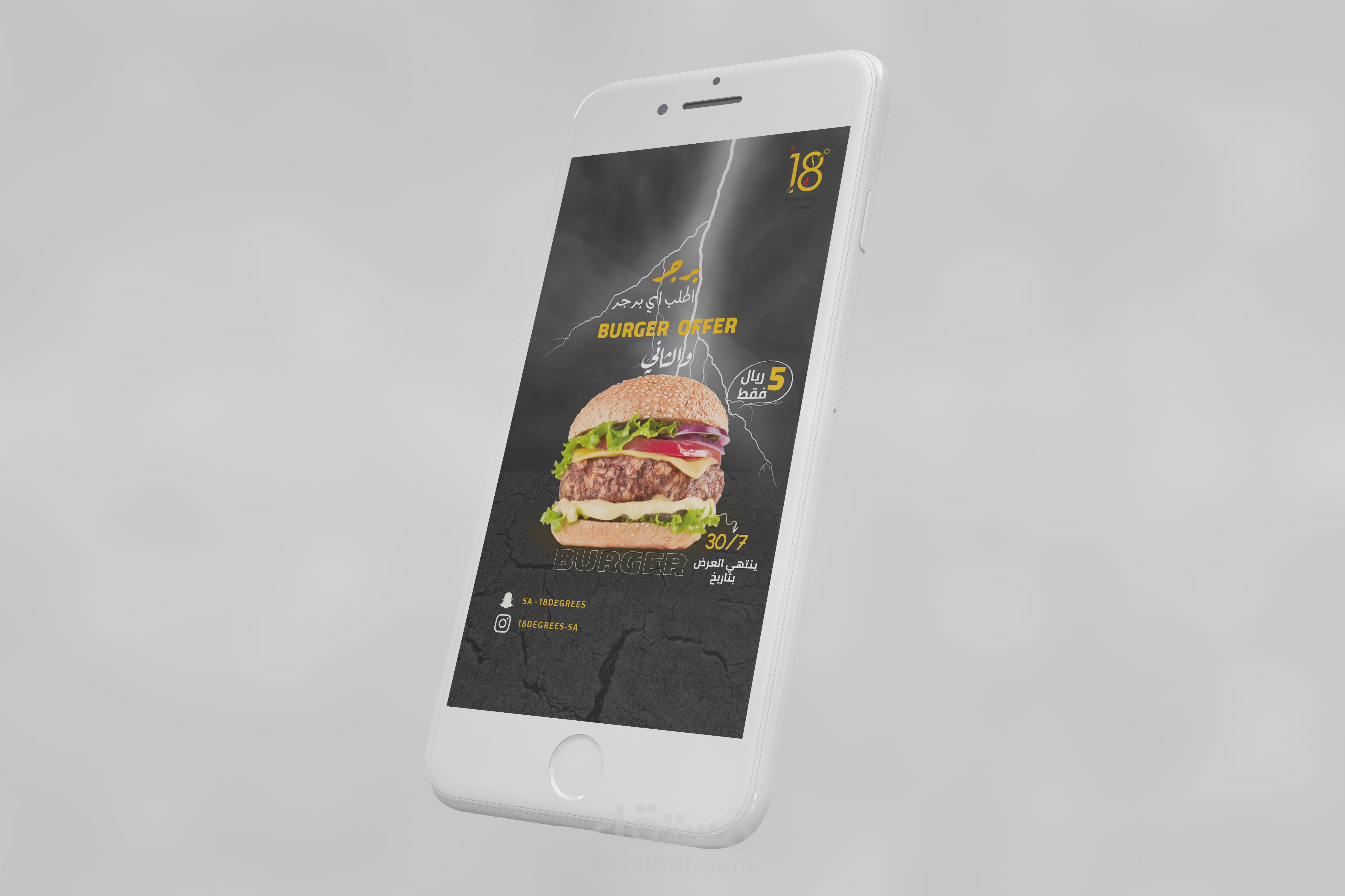 تصميم جرافيك باستخدام الفوتوشوب للاستخدام سوشيال ميديا (فيس بوك انستغرام ) لصالح مطعم ايتين كافي 18لاستخدامة في عملية التسويق بالمحتوى على المنصات حيث تم استخدام الألوان الأصفر والأحمر وألوان فاتحة للشهية بما يخدم طبيعة التصميم واستخدام أسلوب الدمج والاضاءة وتناسق الألوان والخطوط والصور المناسبة للموضوع واستخدام الموك اب للإخراج الفني المميز واستخدام أفكار إبداعية خارج الصندوق
