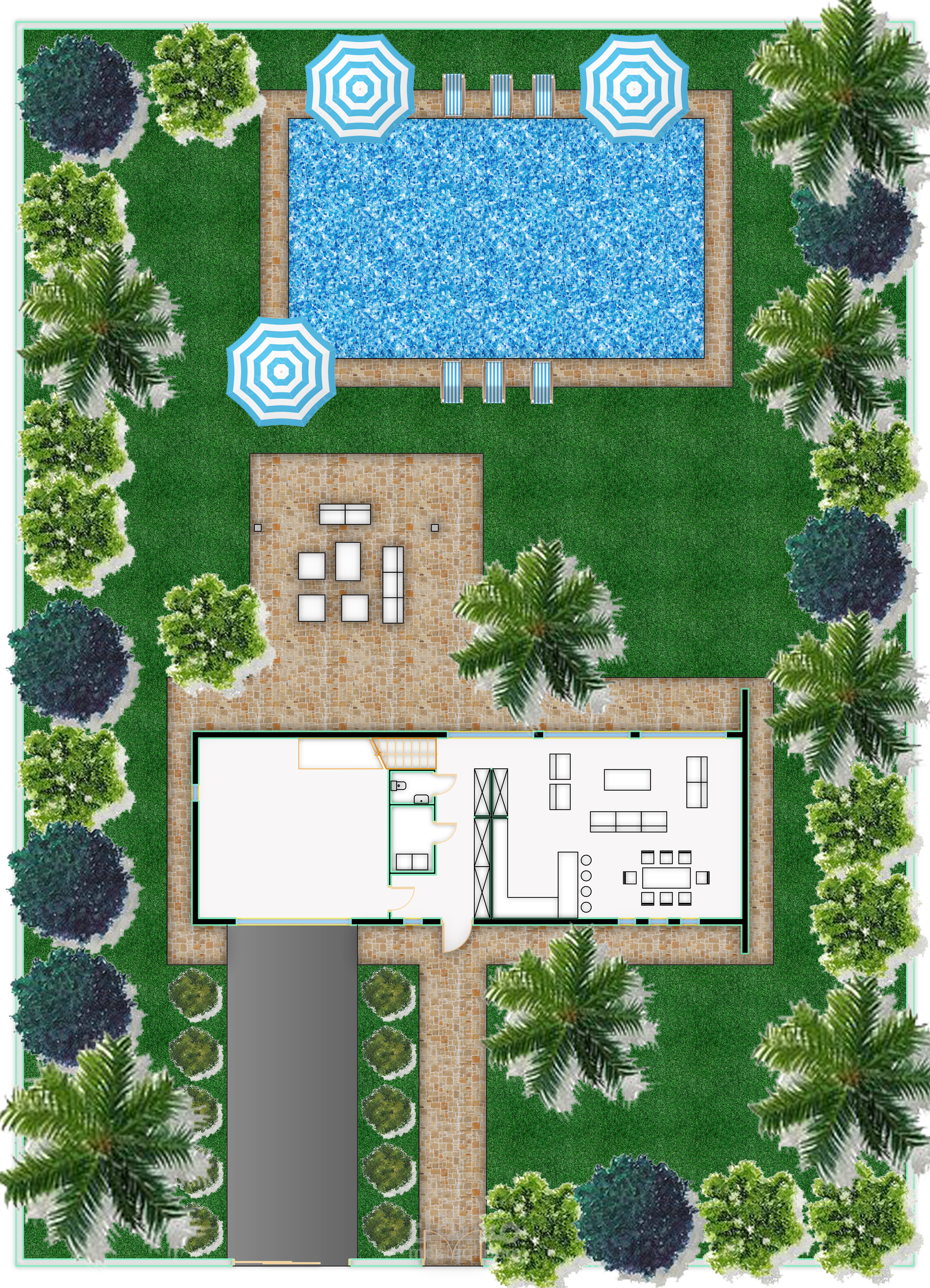 Modern villa with a video presentation and detailed site plan. The animation is mainly focused on showing structure and enhancing the presentation
