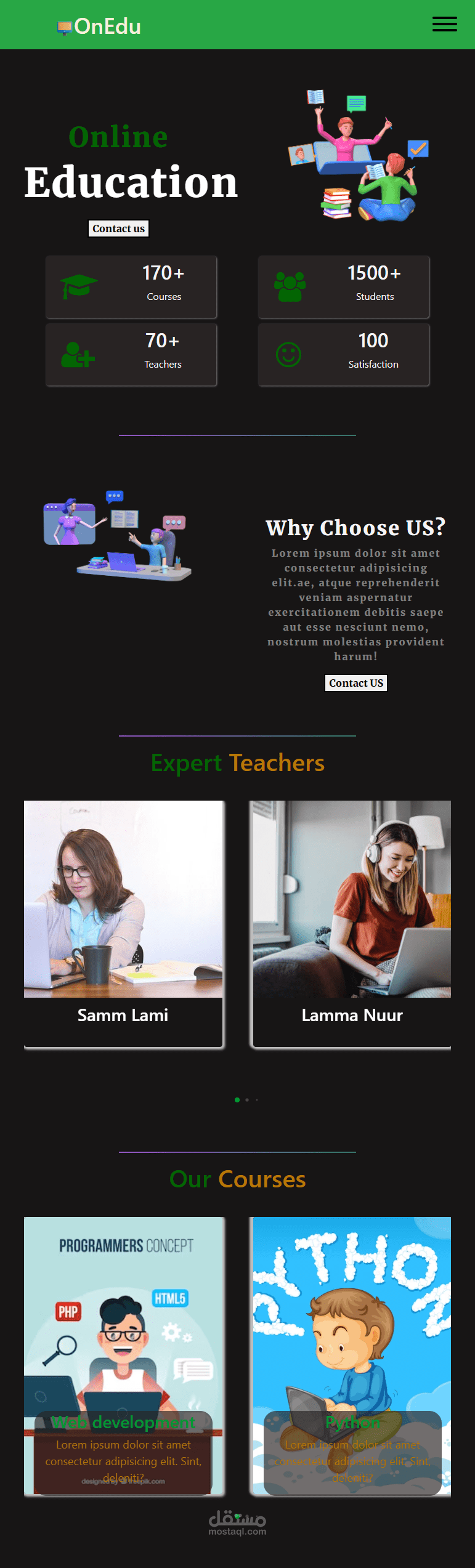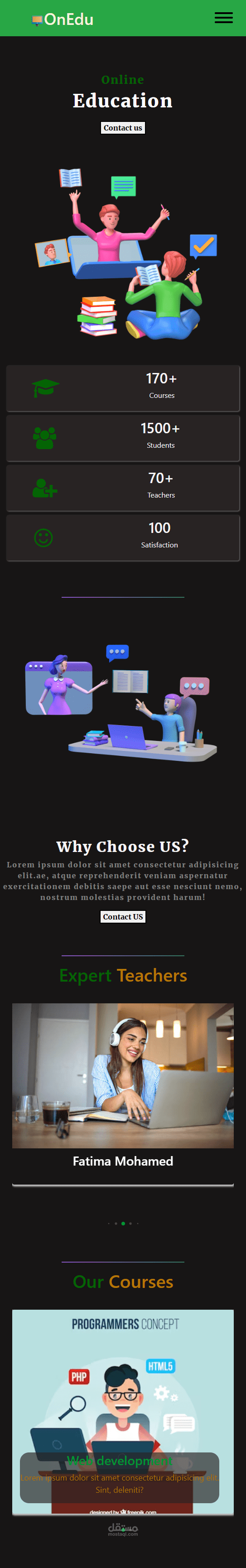 منصة تعليمية الكترونية متجاوبة علي جميع الشاشات قابلة للتعديل واضافة خدمات اكثر