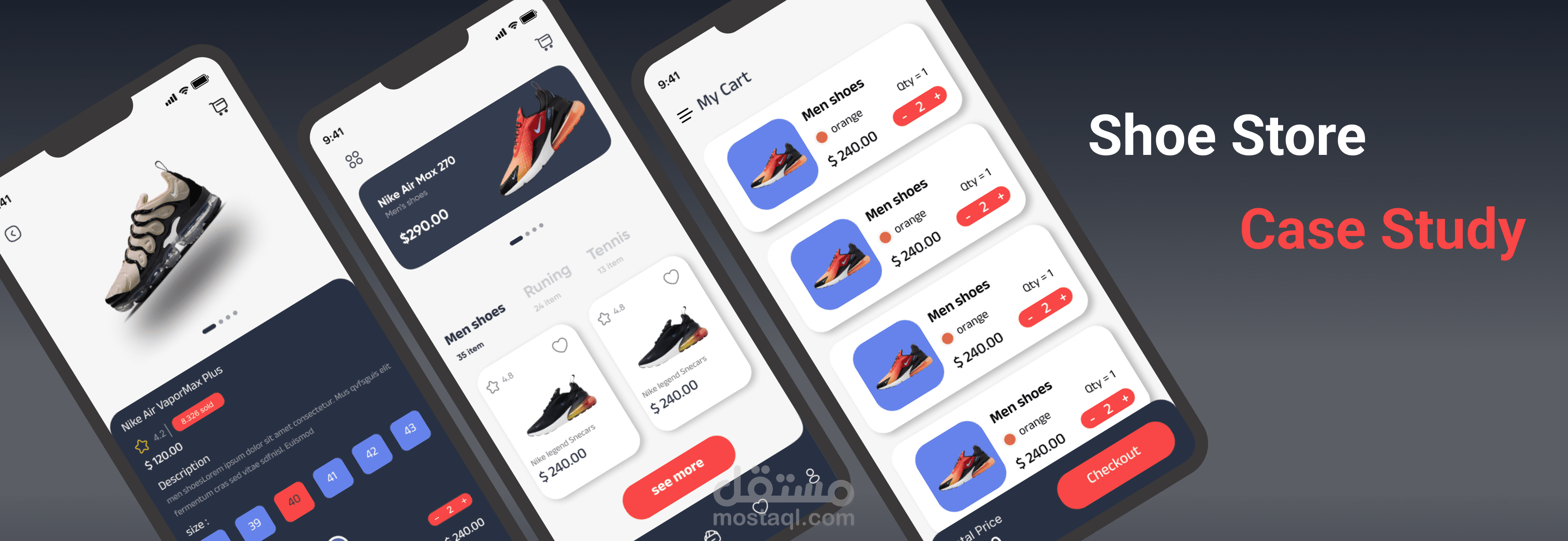 في هذا المشروع لقد قمت بتصميم واجهات مستخدم لمتجر بيع أحذية